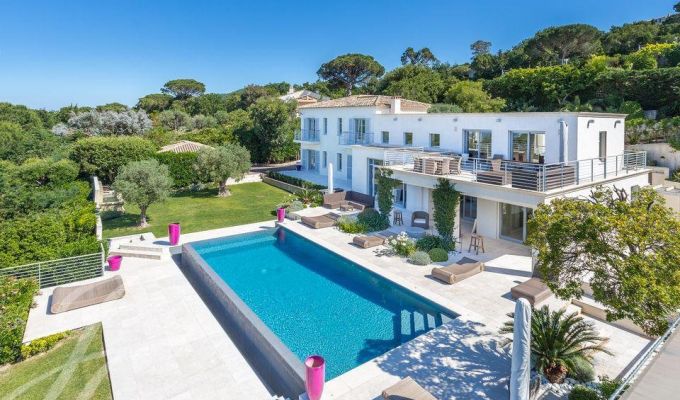 Die Villa ist ideal zwischen dem Dorf Saint-Tropez und den Stränden von Pampelonne ...