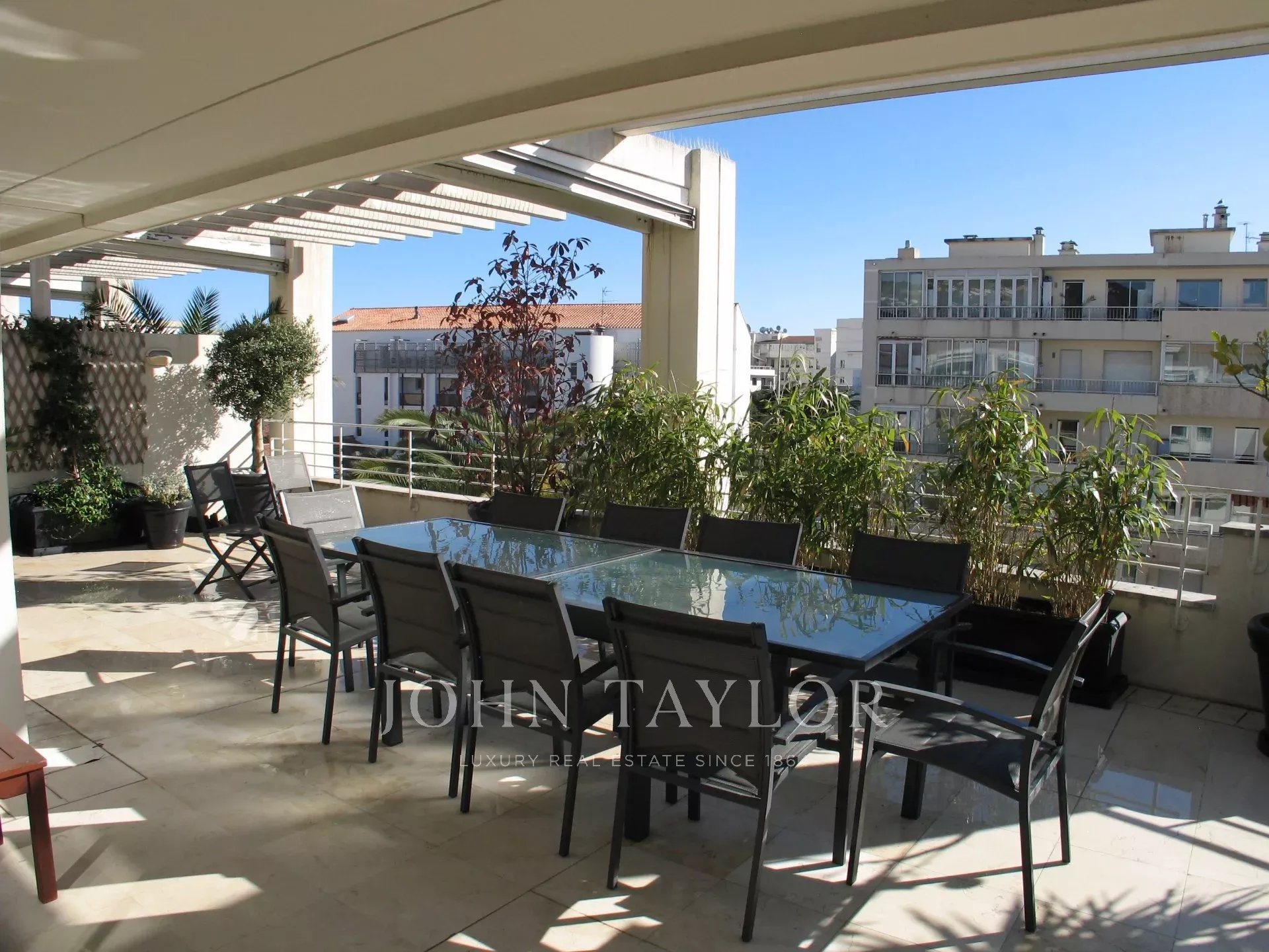 Schöne voll klimatisierte Maisonette-Wohnung im 6. und letzten Stock einer Residenz im Zentrum von Cannes, in unmittelbarer Nähe von La Croisette und seinen Stränden, in der Nähe des Palais des Festivals.