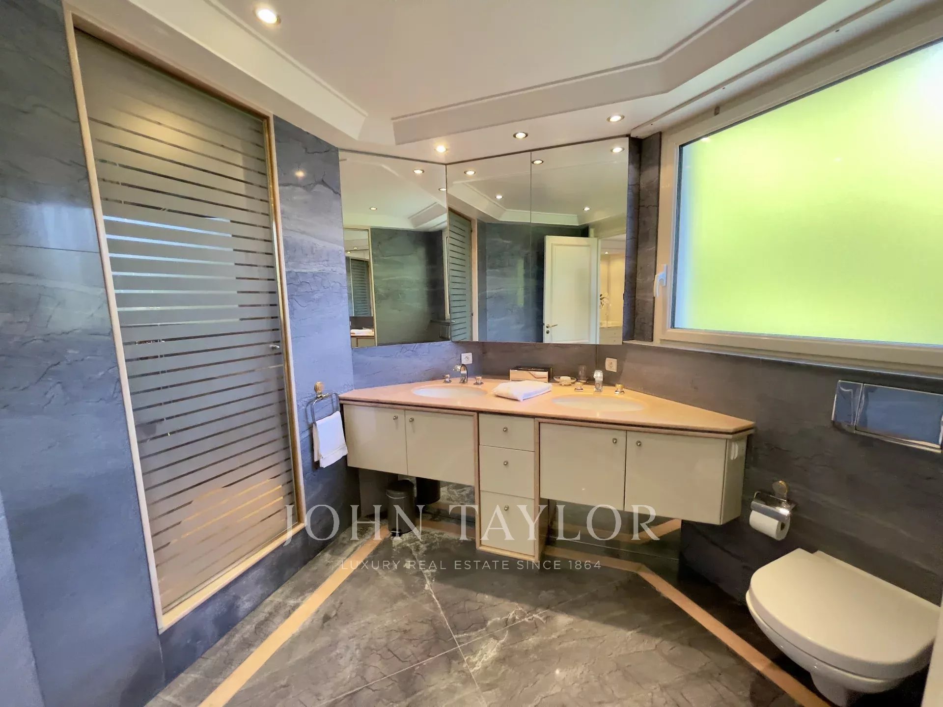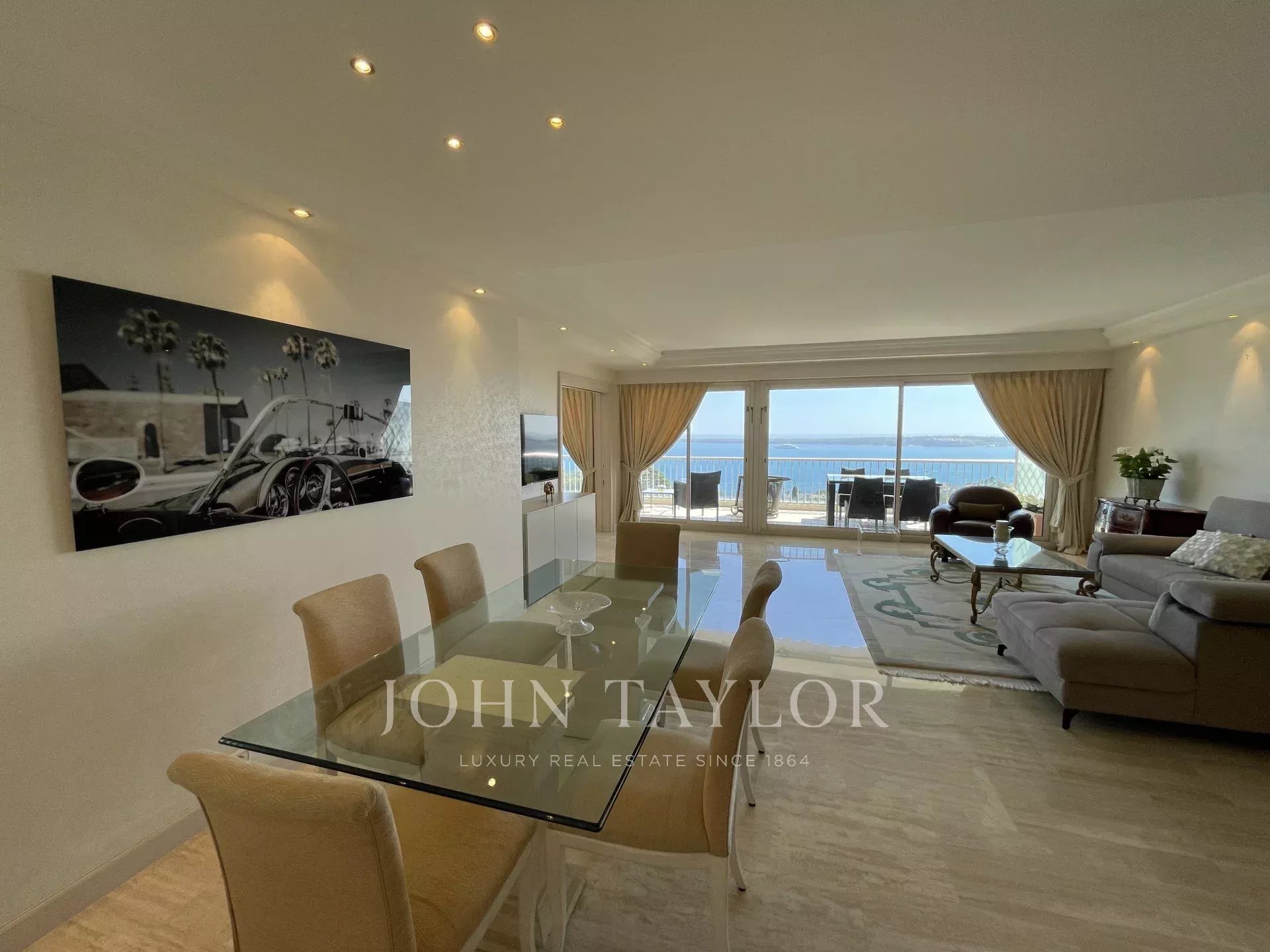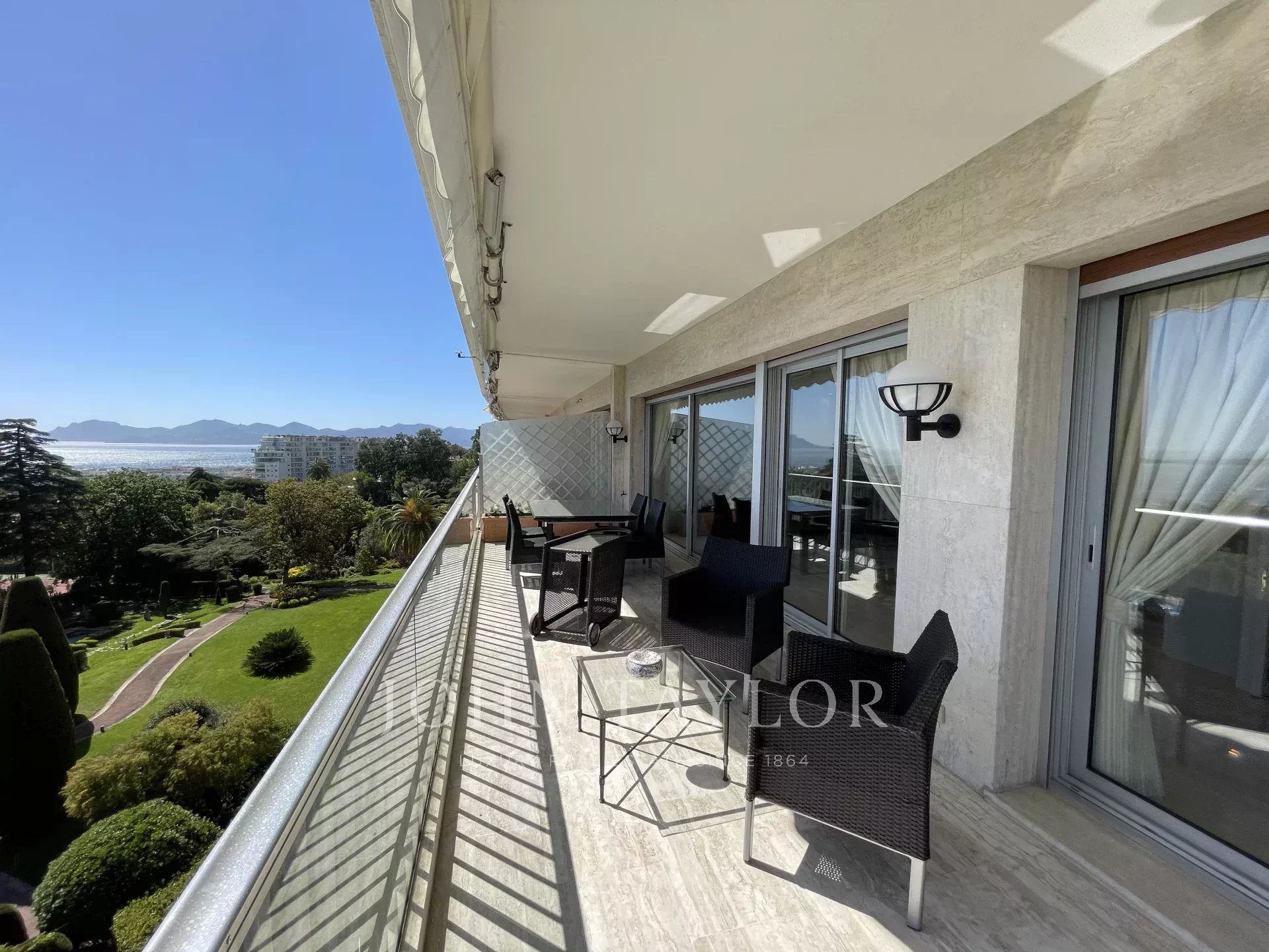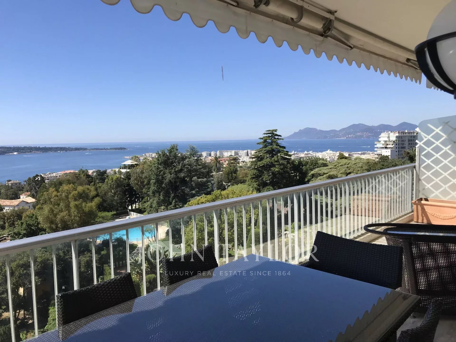 Viertel Kalifornien, in einer Luxusresidenz mit Pool, Tennisplatz und klassifiziertem Park, schöne klimatisierte Wohnung mit einer Wohnfläche von ca. 151 m2, Südlage und Panoramablick auf das Meer von der 25 m2 großen Terrasse aus.