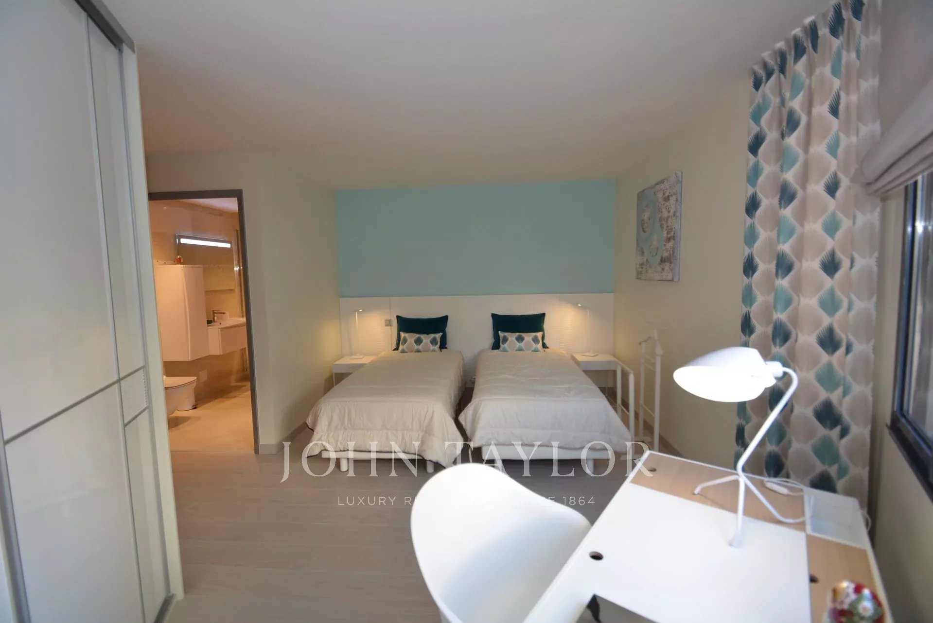 Mastersuite, die sich zur Terrasse hin öffnet, mit Ankleidezimmer, Wohnzimmer und Duschbad ensuite