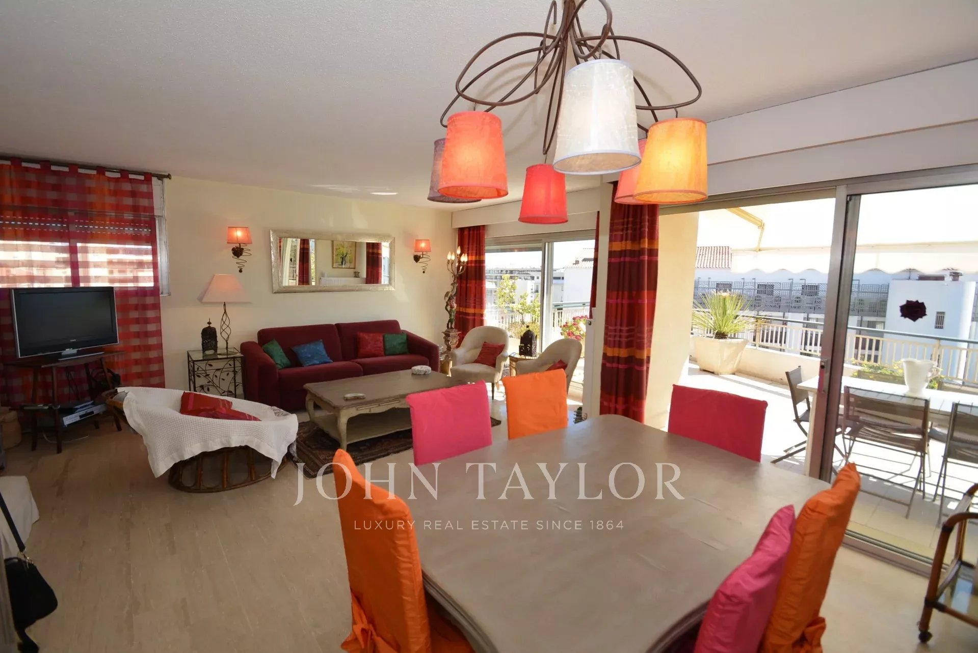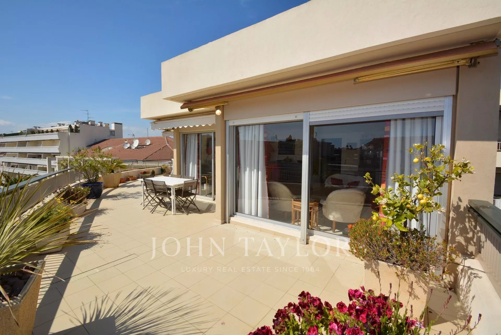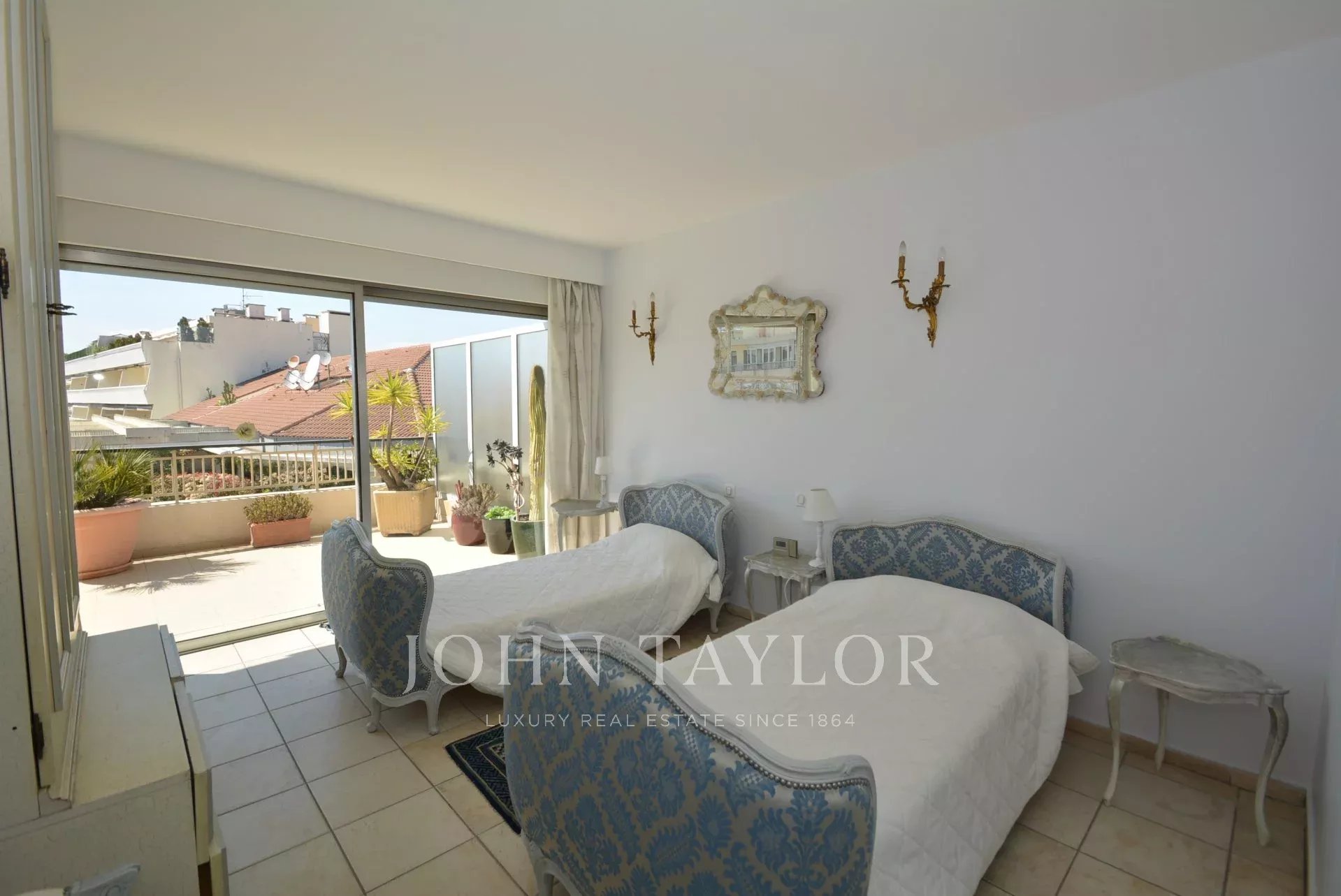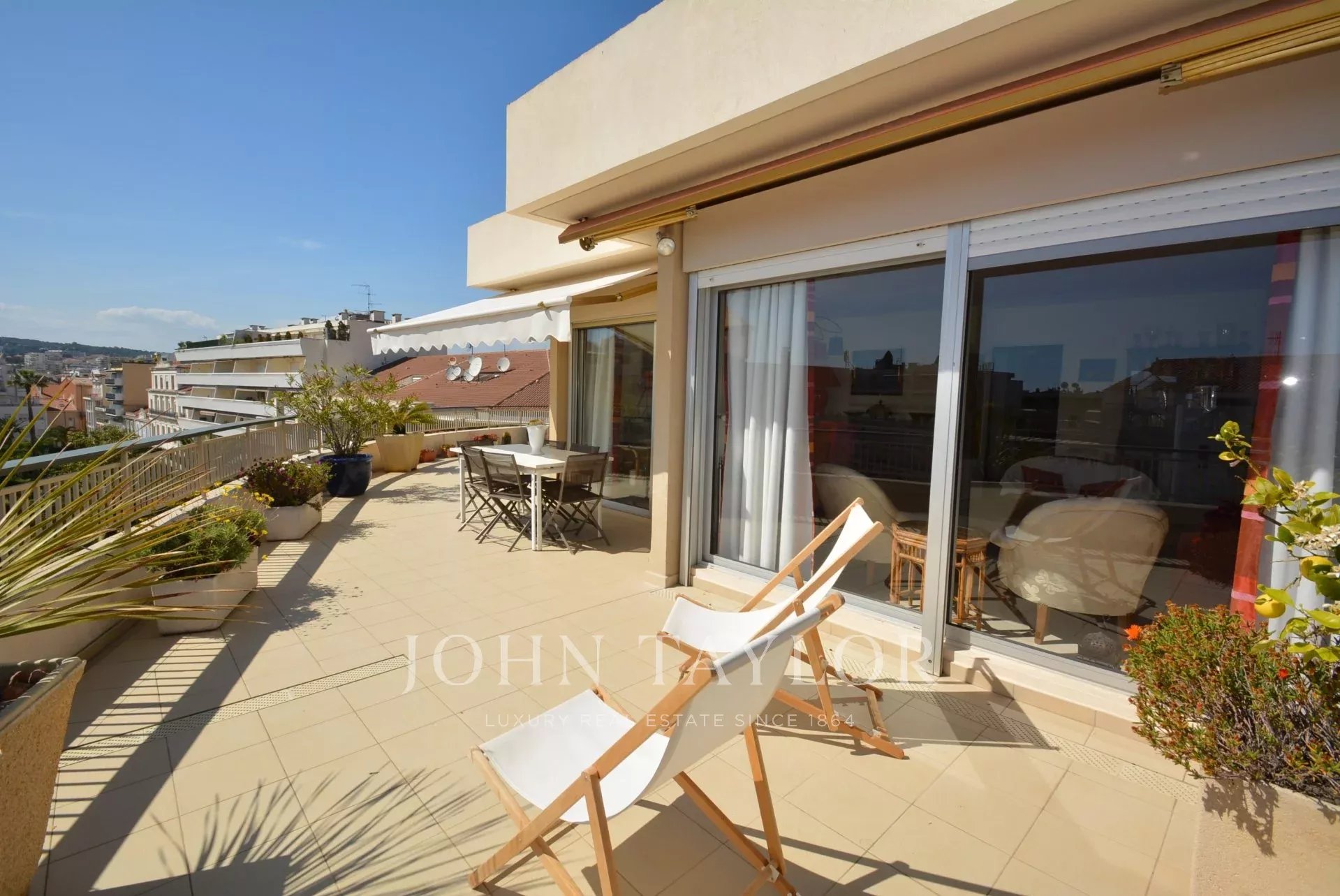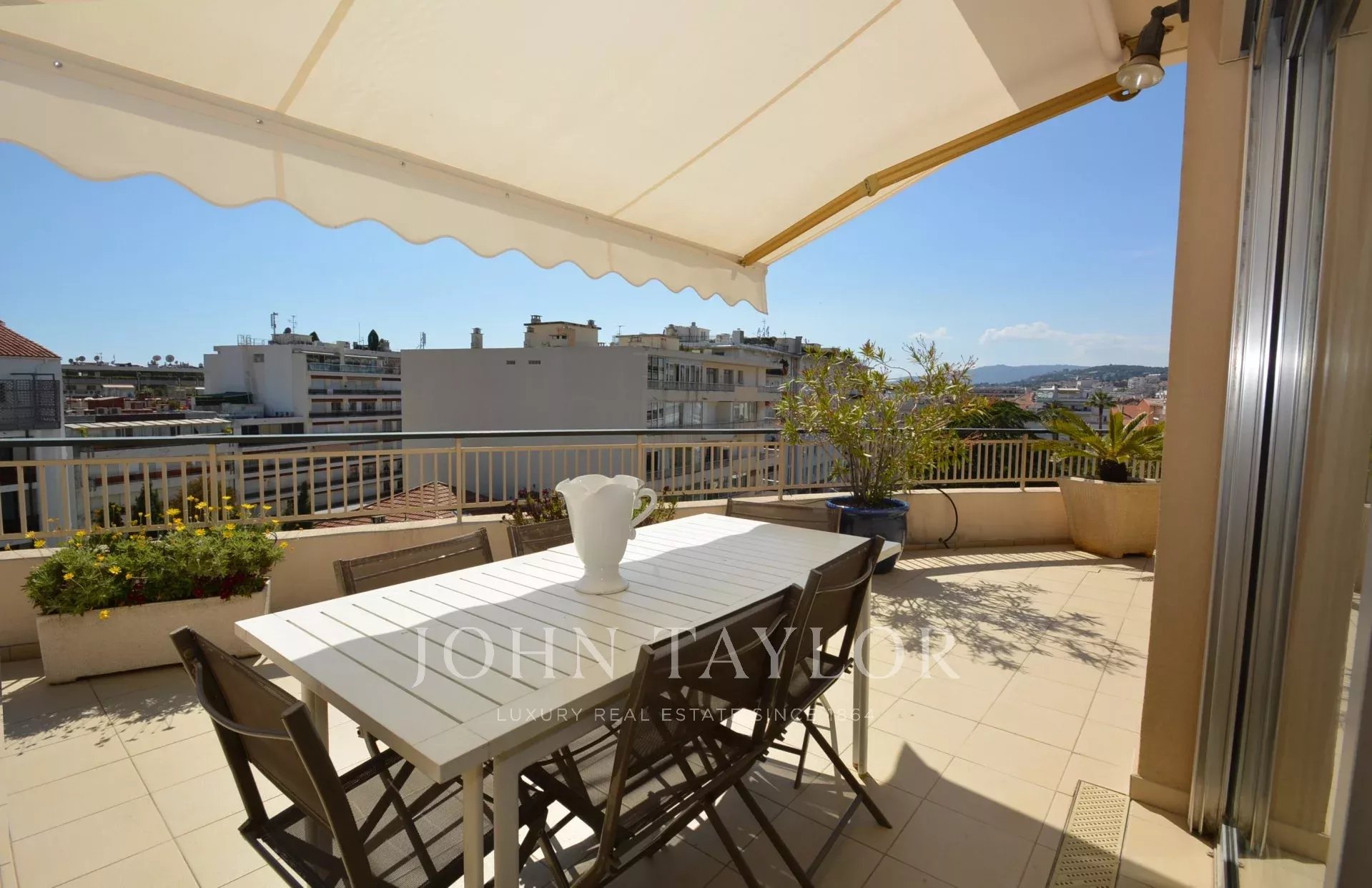 Wohnung mit 90 m2 Wohnfläche in idealer Lage 7. und letzter Stock einer Residenz im Zentrum von Cannes, in unmittelbarer Nähe der Rue d'Antibes und nur wenige Minuten von La Croisette und den Stränden entfernt.