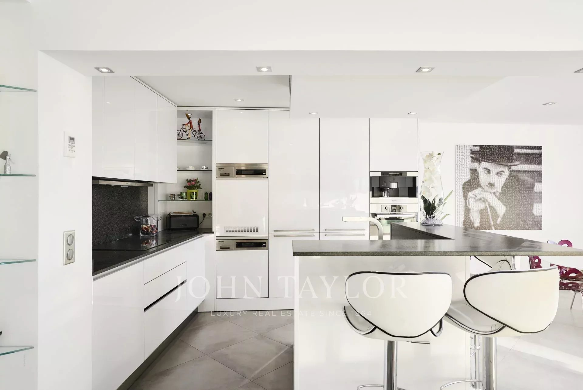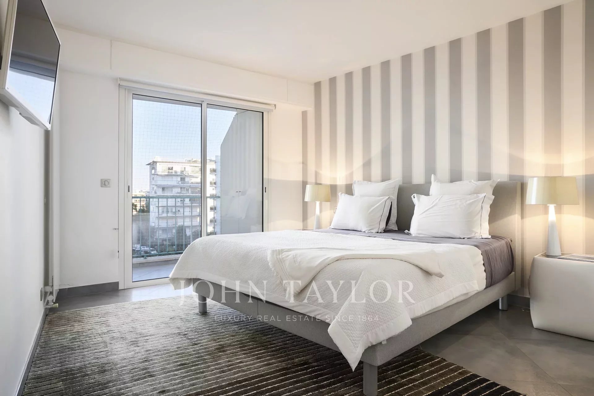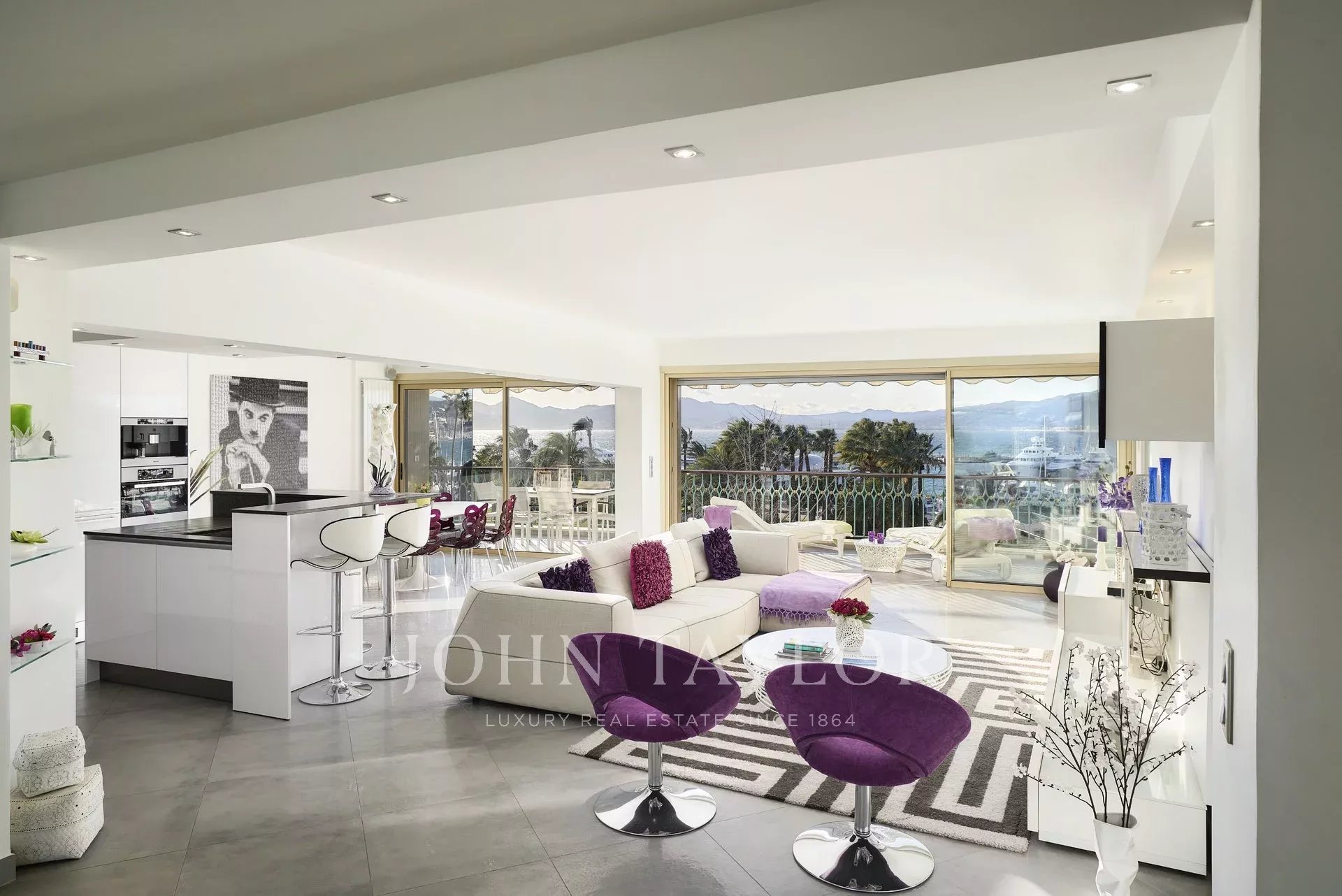 In einer der prestigeträchtigen Residenzen von La Croisette, Sektor Palm Beach - Pointe Croisette, schöne, komplett renovierte Wohnung mit ca. 105 m2 Wohnfläche. Die Wohnung befindet sich im 4. Stock und besticht durch ihre Dekoration und ihre Leistungen sowie durch ihre Terrasse von ca. 20 m2.
