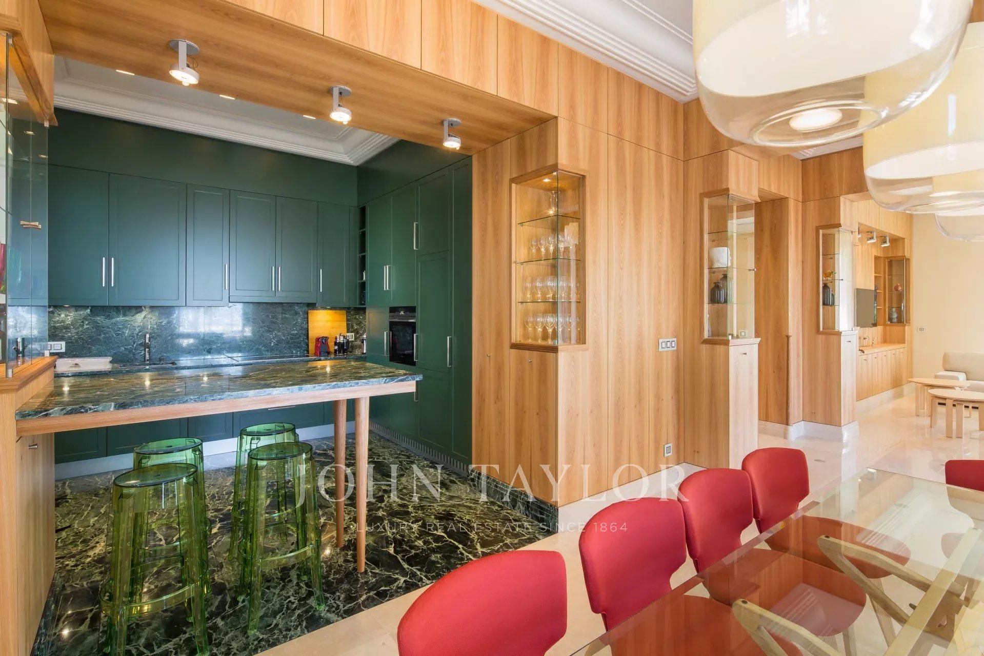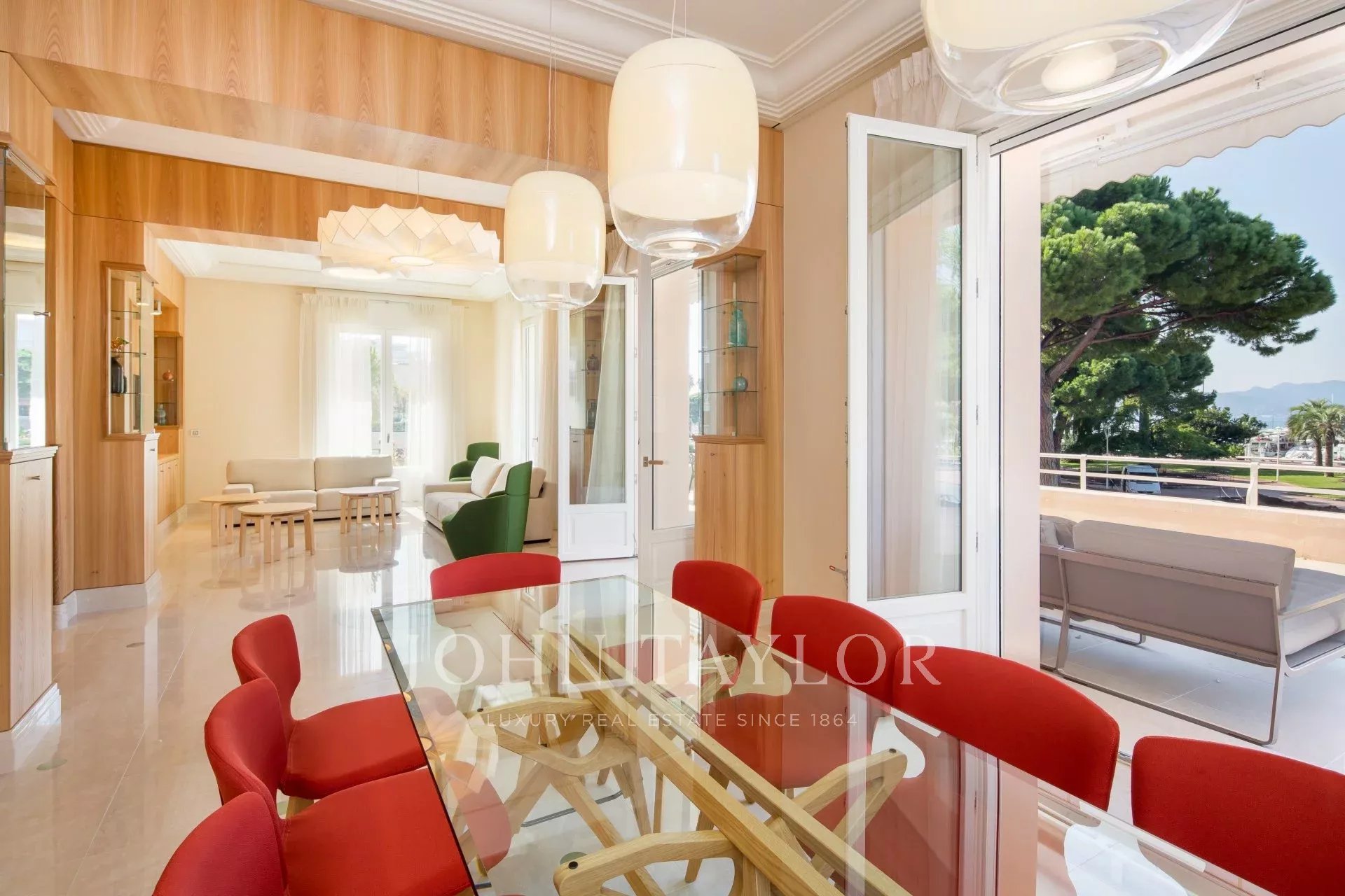 Gegenüber dem Port Canto, in einem luxuriösen Gebäude aus den 1950er Jahren, befindet sich eine schöne, komplett renovierte und klimatisierte Wohnung von 150 m2 mit einer 60 m2 großen Hauptterrasse und einer Nebenterrasse, die für Empfänge genutzt werden kann.