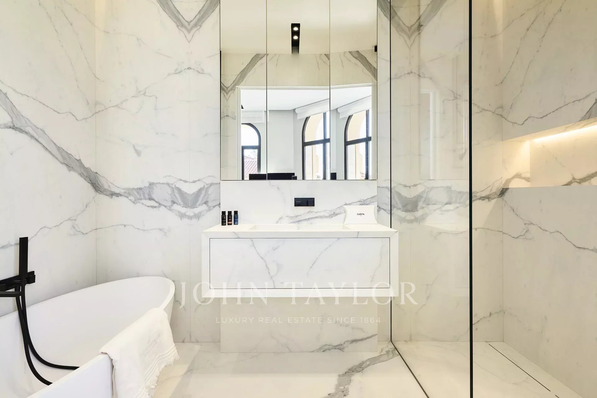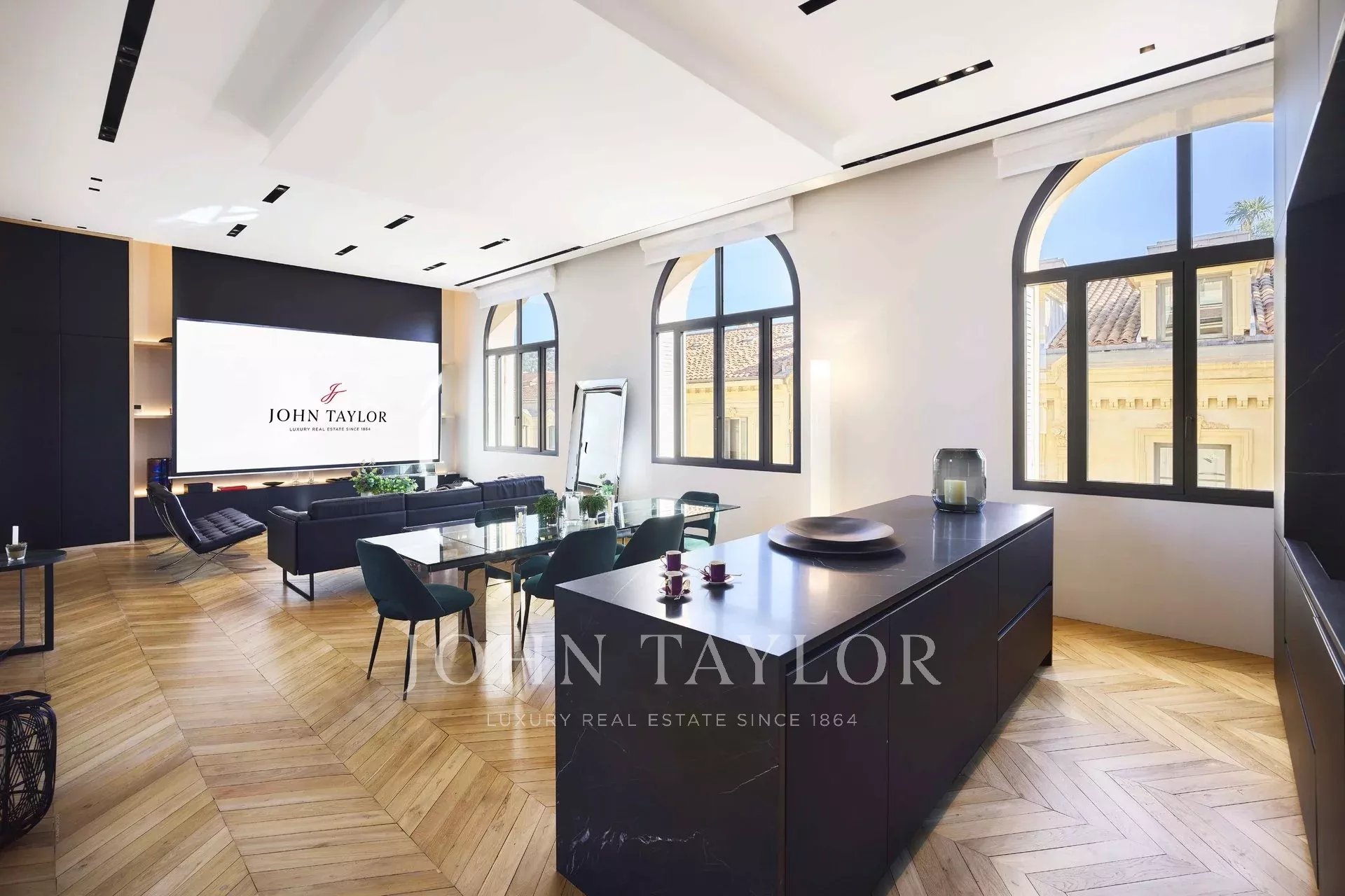 In einem Gebäude im Zentrum von Cannes, wunderschöne zeitgenössische Wohnung von ca. 135 m2 Wohnfläche. Die Wohnung wurde komplett renoviert und besticht durch ihre Dekoration, ihre hochwertigen Leistungen und ihre perfekte Lage.
