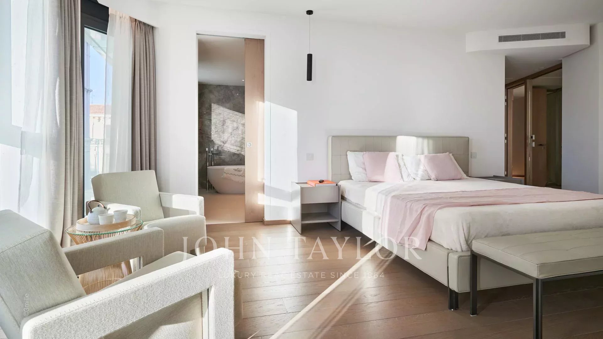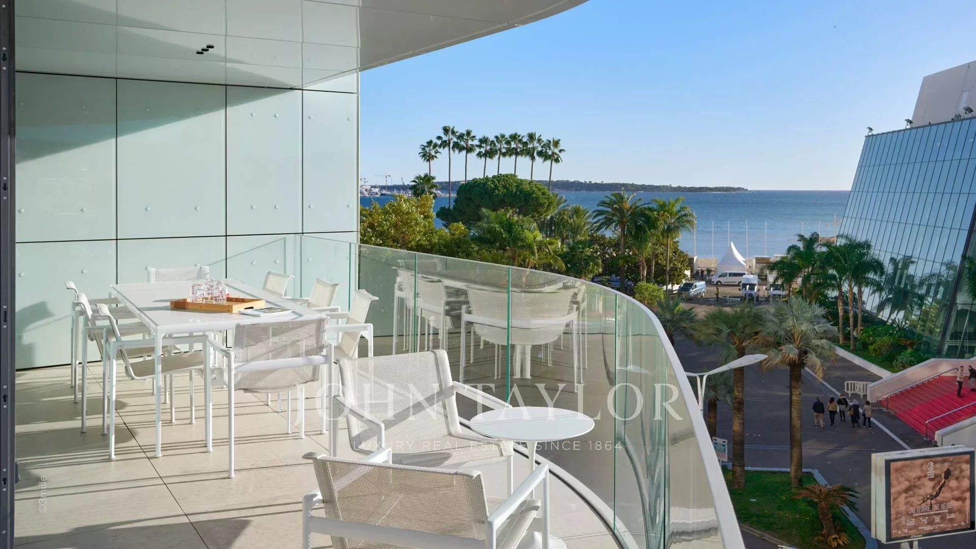 Stock der prestigeträchtigen Residenz, gegenüber dem Palais des Festivals, wunderschöne Wohnung von ca. 231 m², die mit einer Terrasse von ca. 25 m² verziert ist.