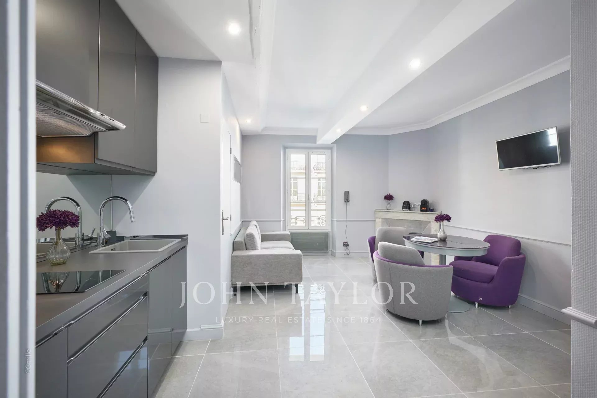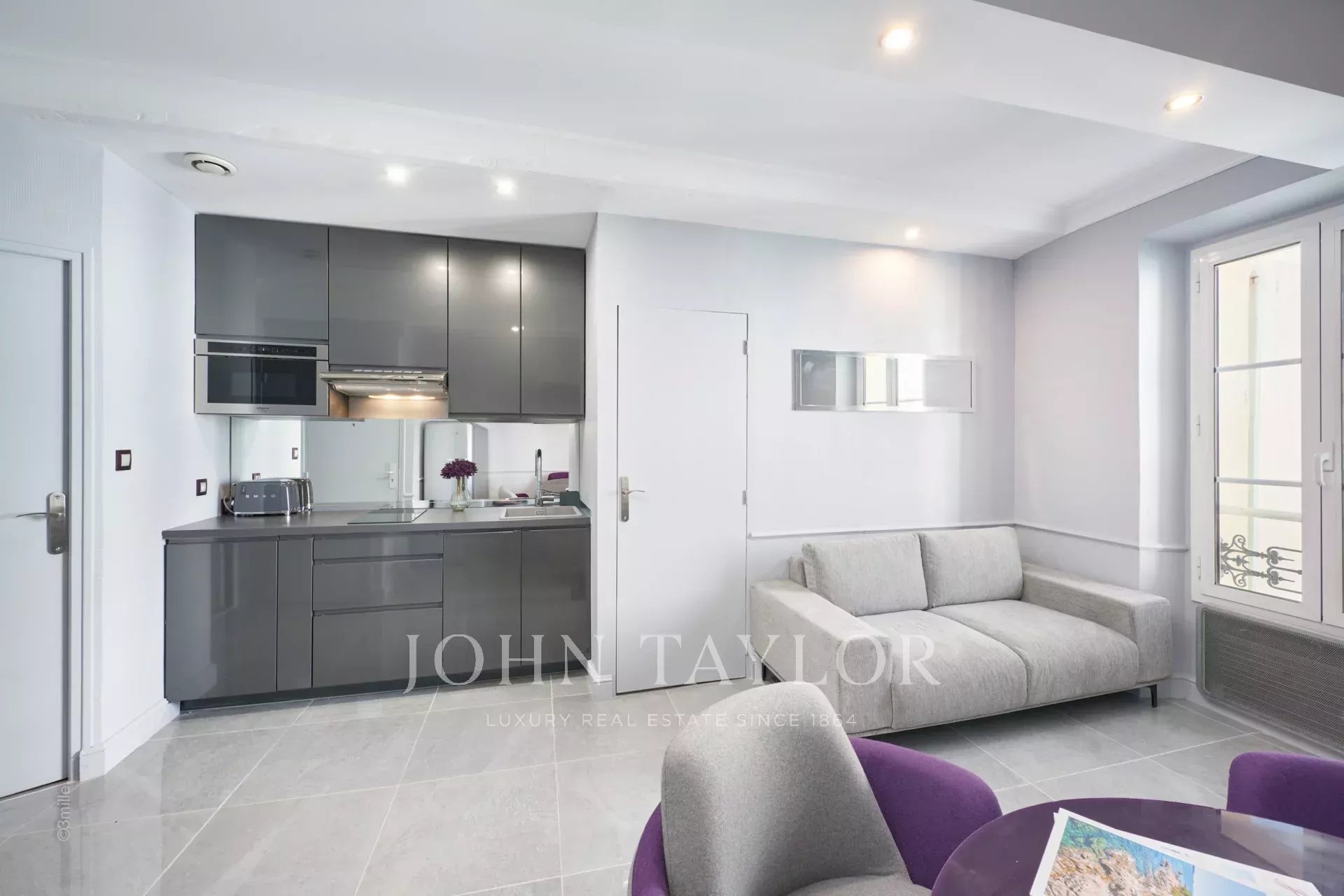 Stock eines bürgerlichen Gebäudes in idealer Lage, nur wenige Schritte vom Boulevard de la Croisette, seinen Stränden und dem Palais des Festivals entfernt, charmante klimatisierte Wohnung von 40 m2, die vollständig und sehr schön renoviert wurde.