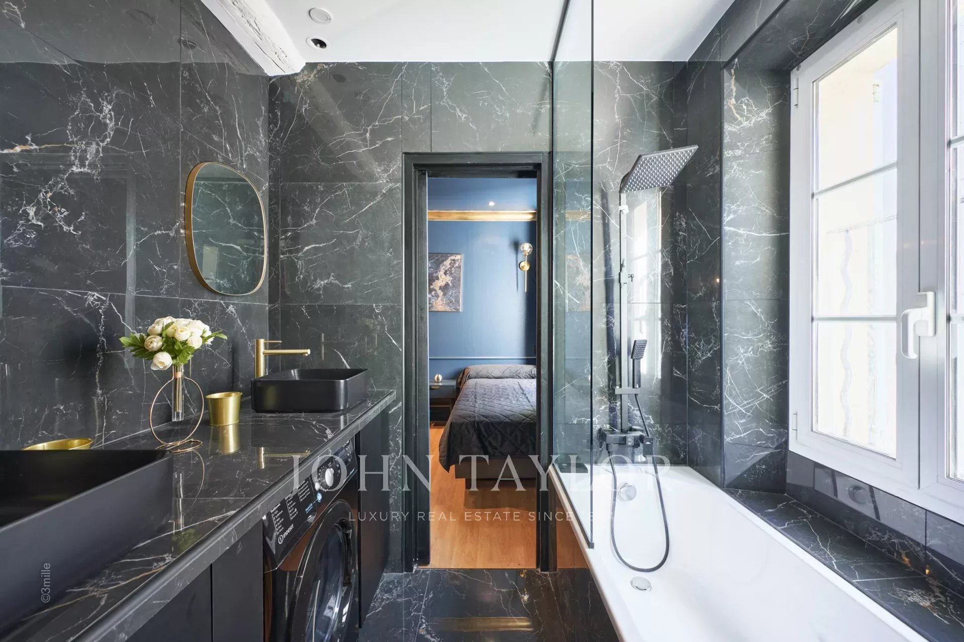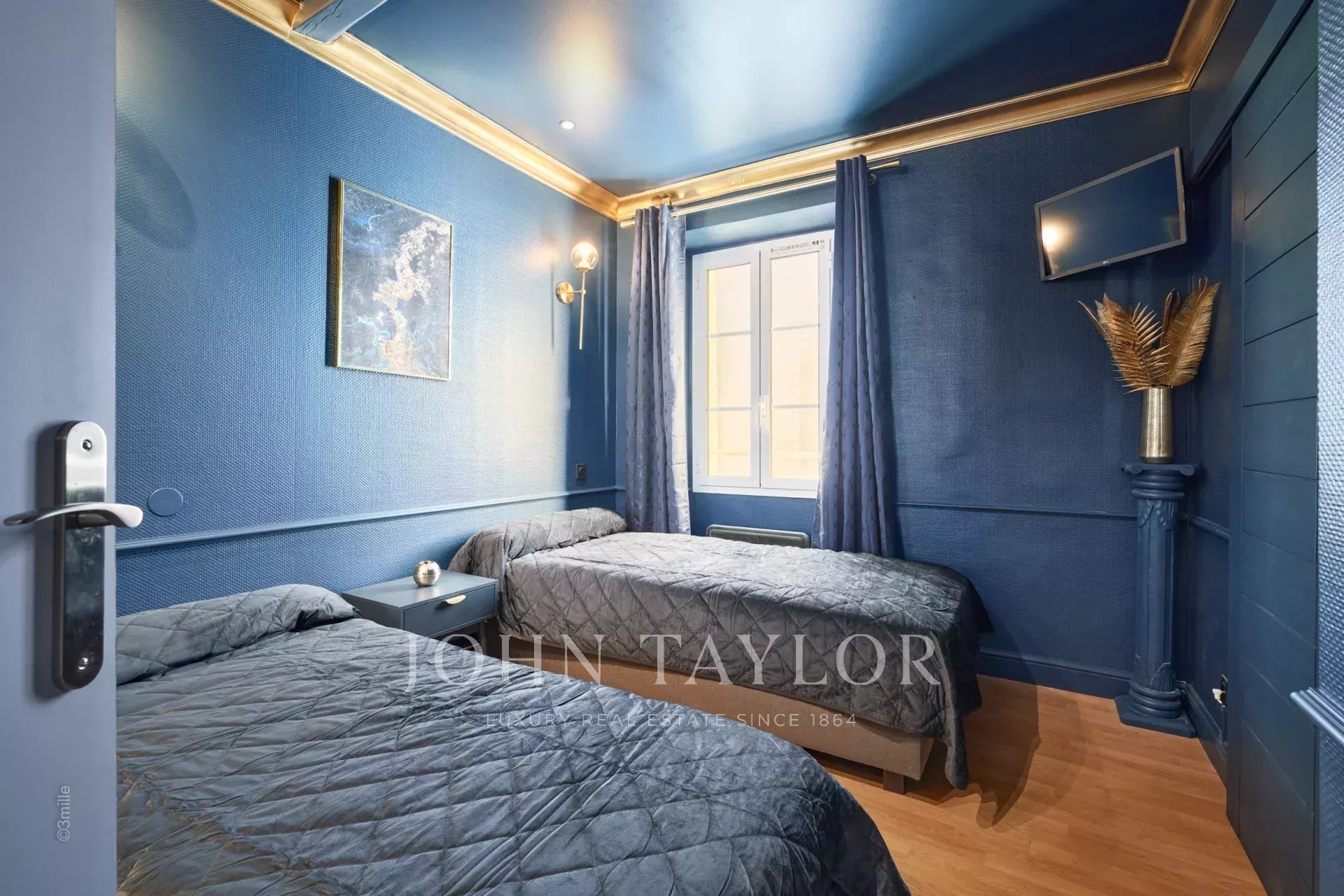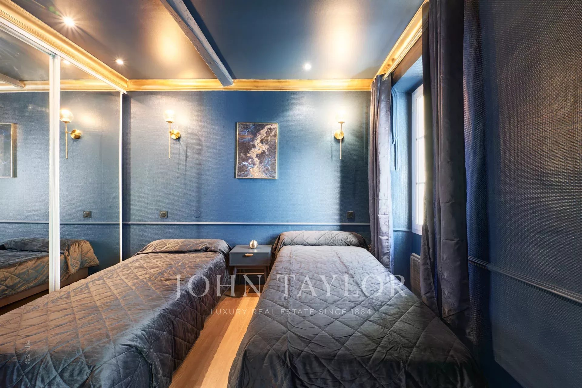 Die Wohnung öffnet sich zu einem schönen Empfangsraum mit amerikanischer Küche; zwei Schlafzimmer (jedes mit zwei Einzelbetten), die sich ein Badezimmer teilen; separate Toilette.