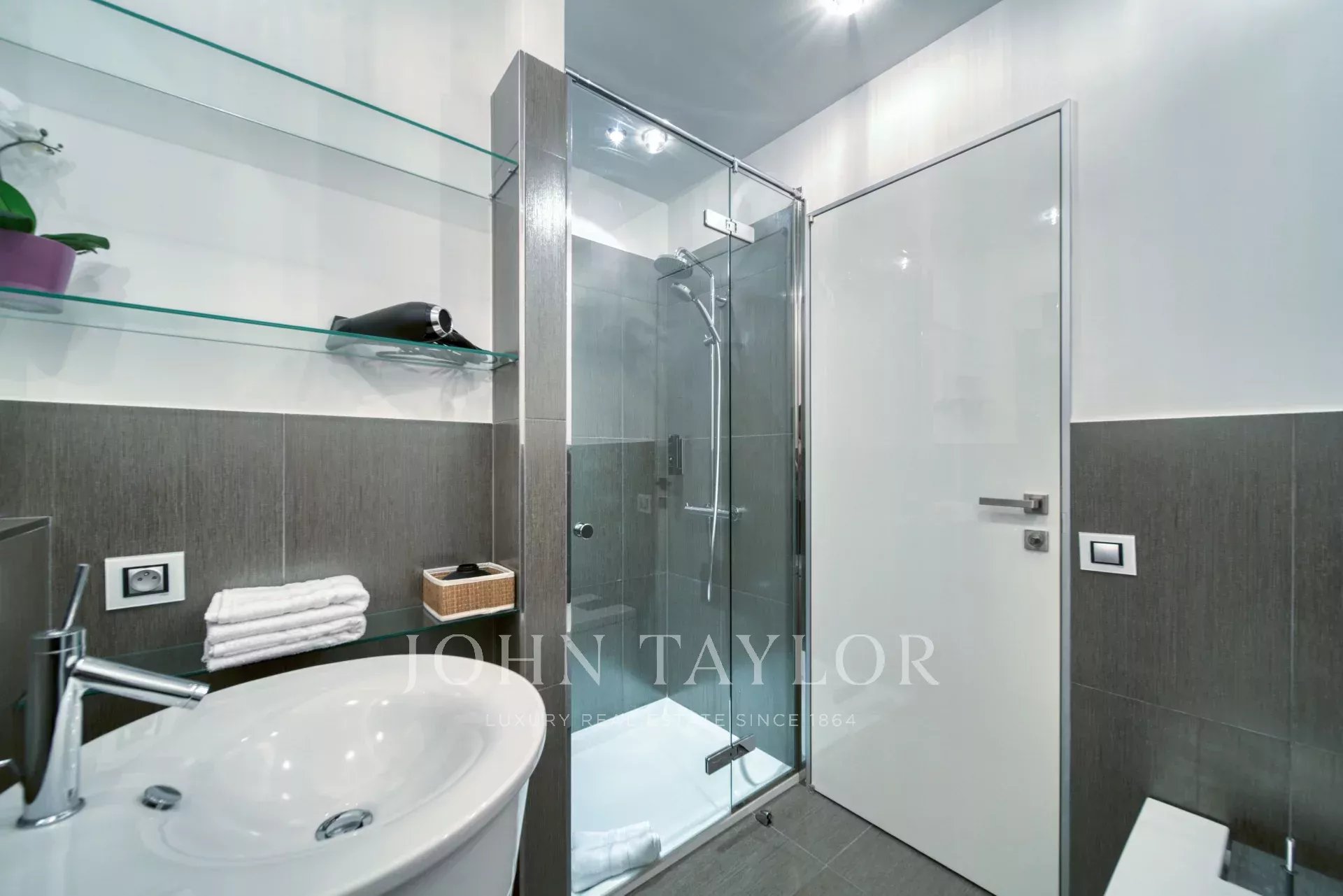 Stock eines bürgerlichen Gebäudes, gegenüber dem Palais des Festivals und den Stränden der Croisette, nahe der Rue d'Antibes, dem Forville-Markt und der Altstadt von Cannes "Le Suquet", zeitgenössische Wohnung, komplett renoviert und klimatisiert, mit 141 m2 Wohnfläche wie folgt: