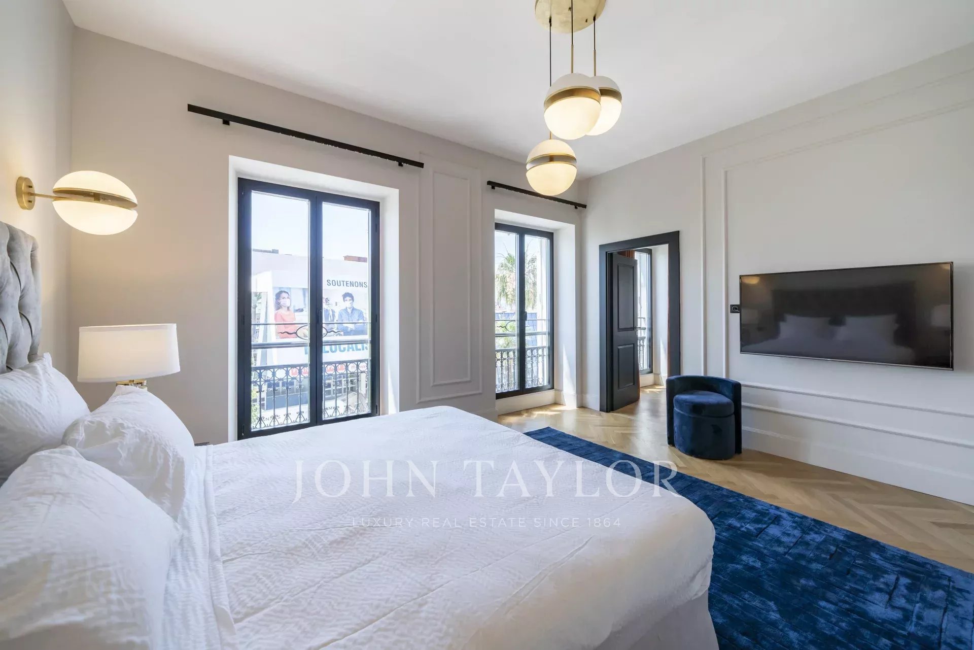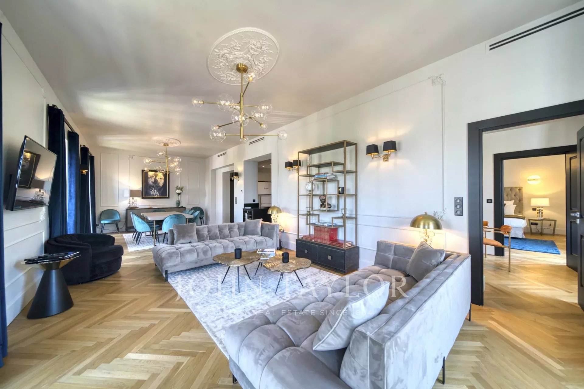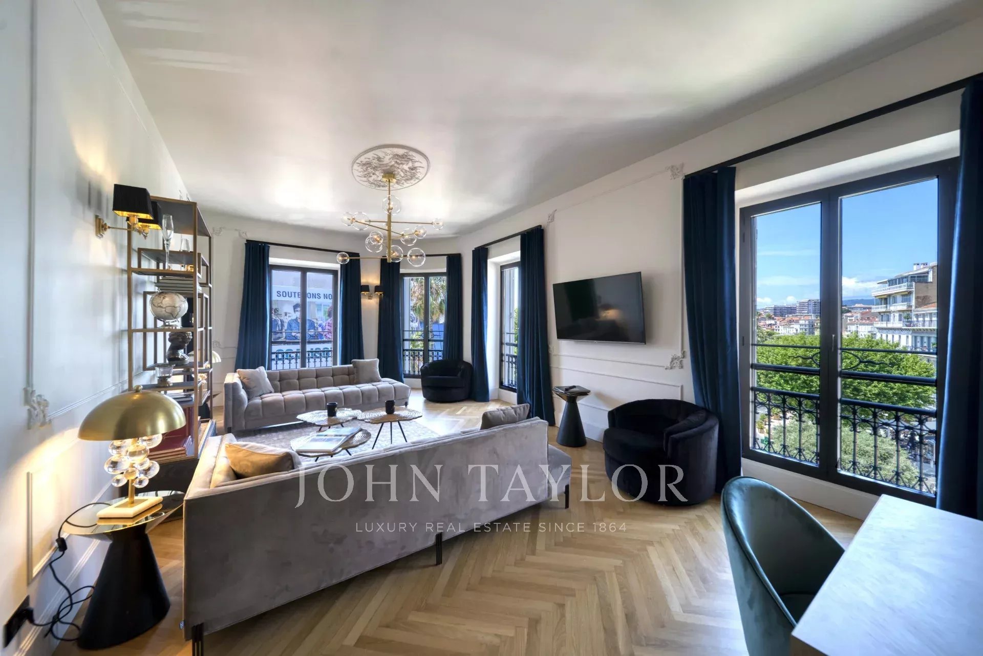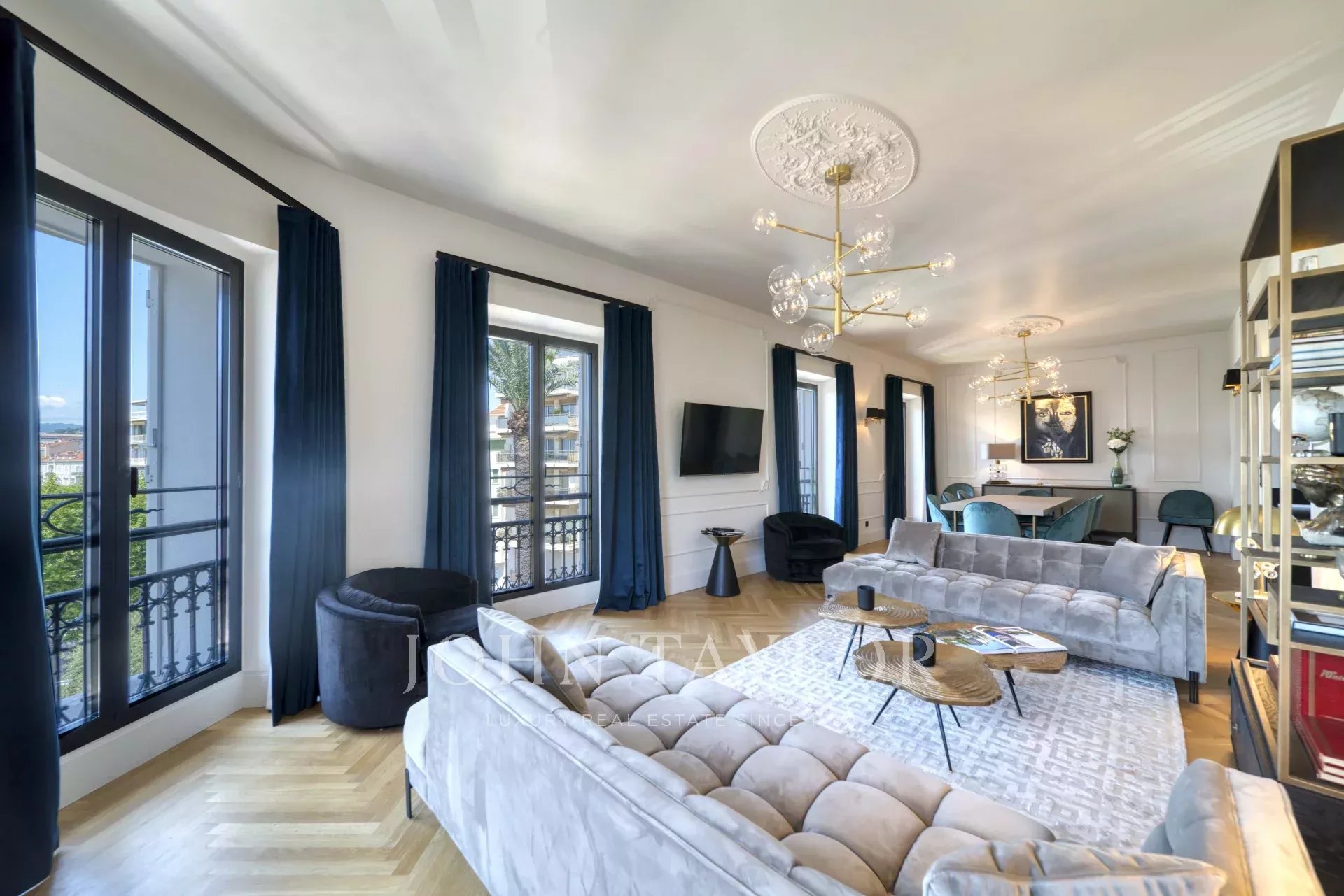 Stock eines bürgerlichen Gebäudes, gegenüber dem Palais des Festivals und den Stränden der Croisette, 1 Minute von der Rue d'Antibes entfernt, zeitgenössische Wohnung, komplett renoviert und klimatisiert, mit 195 m2 Wohnfläche: