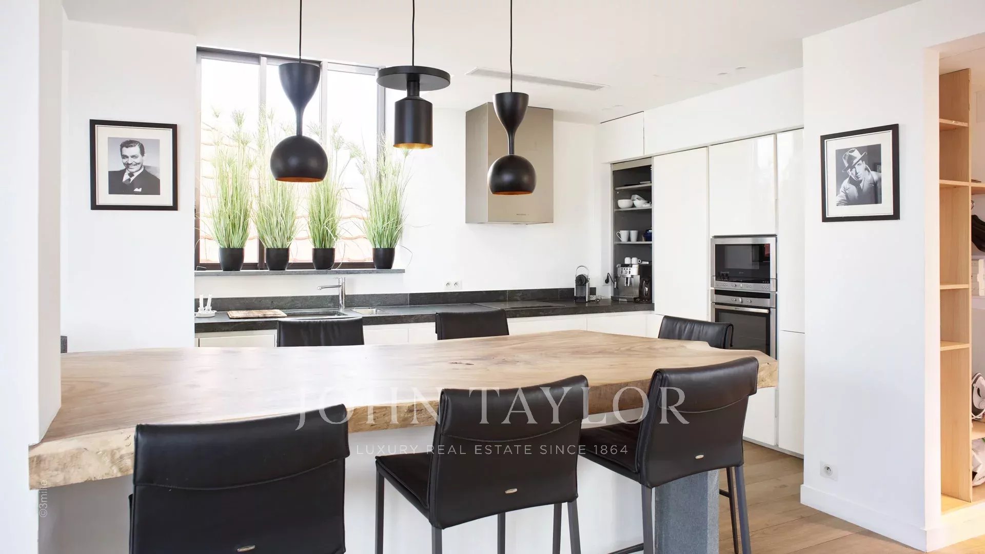 Offene Einbauküche, die sich zur Terrasse und zum Empfangsraum hin öffnet.
