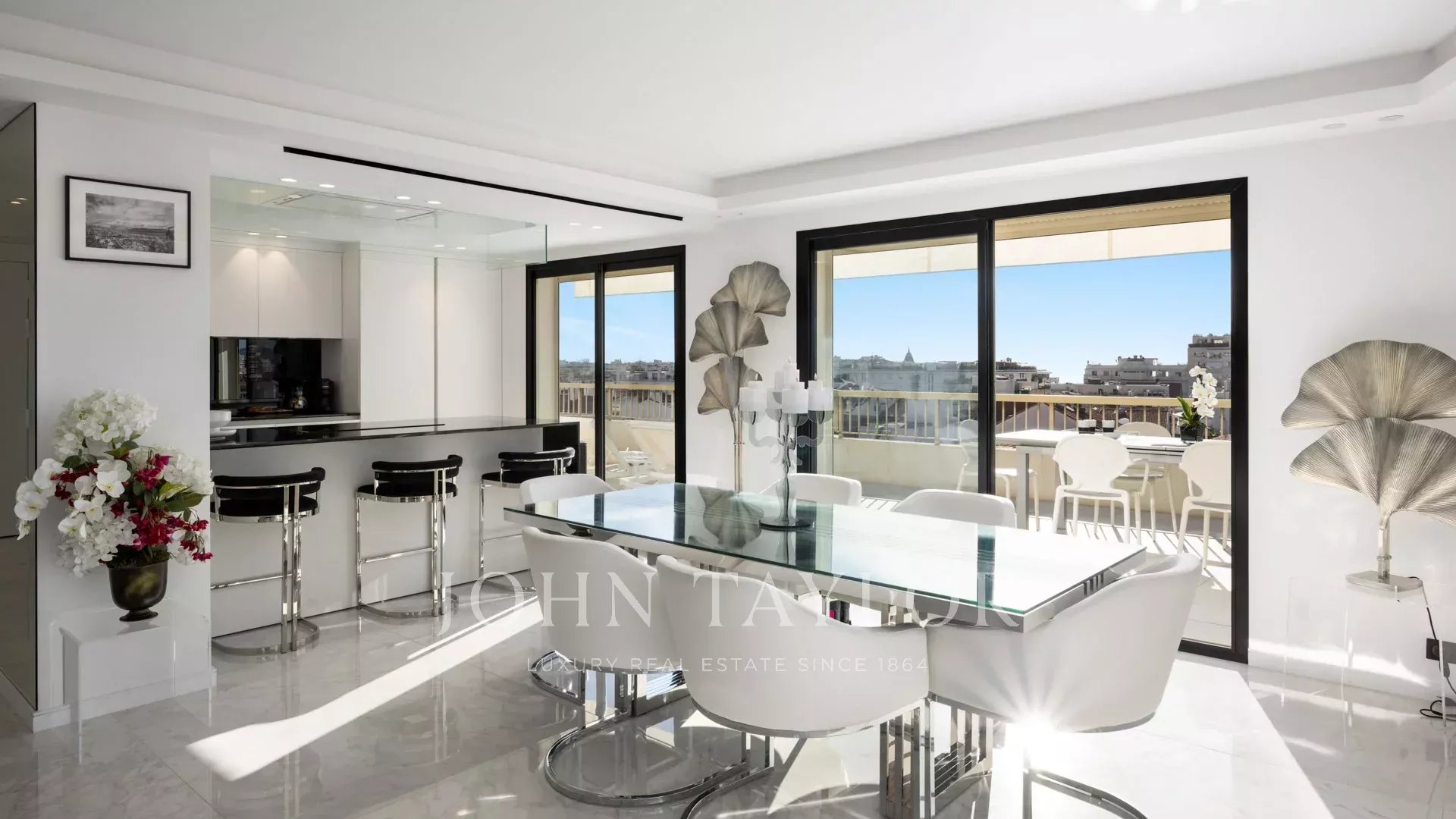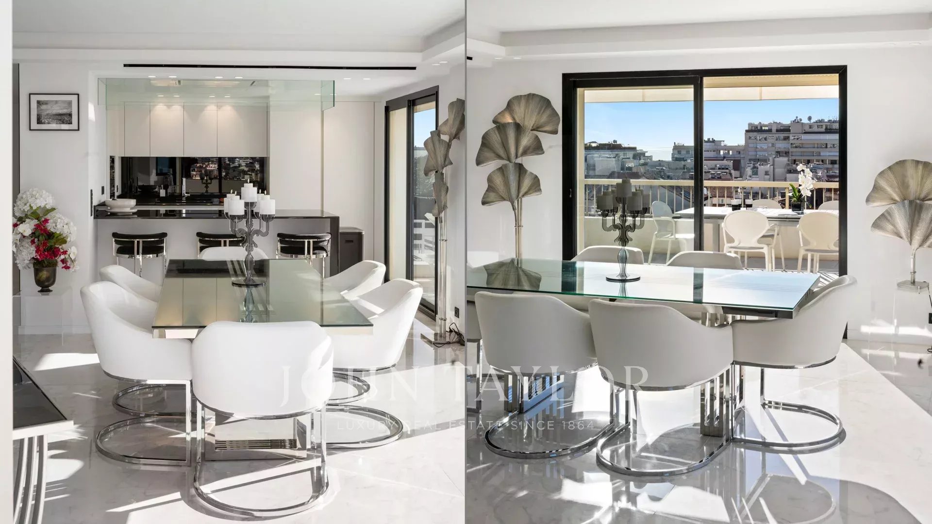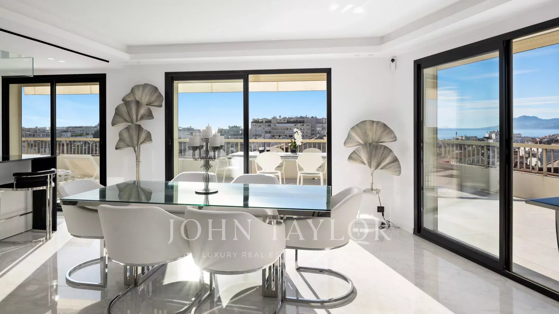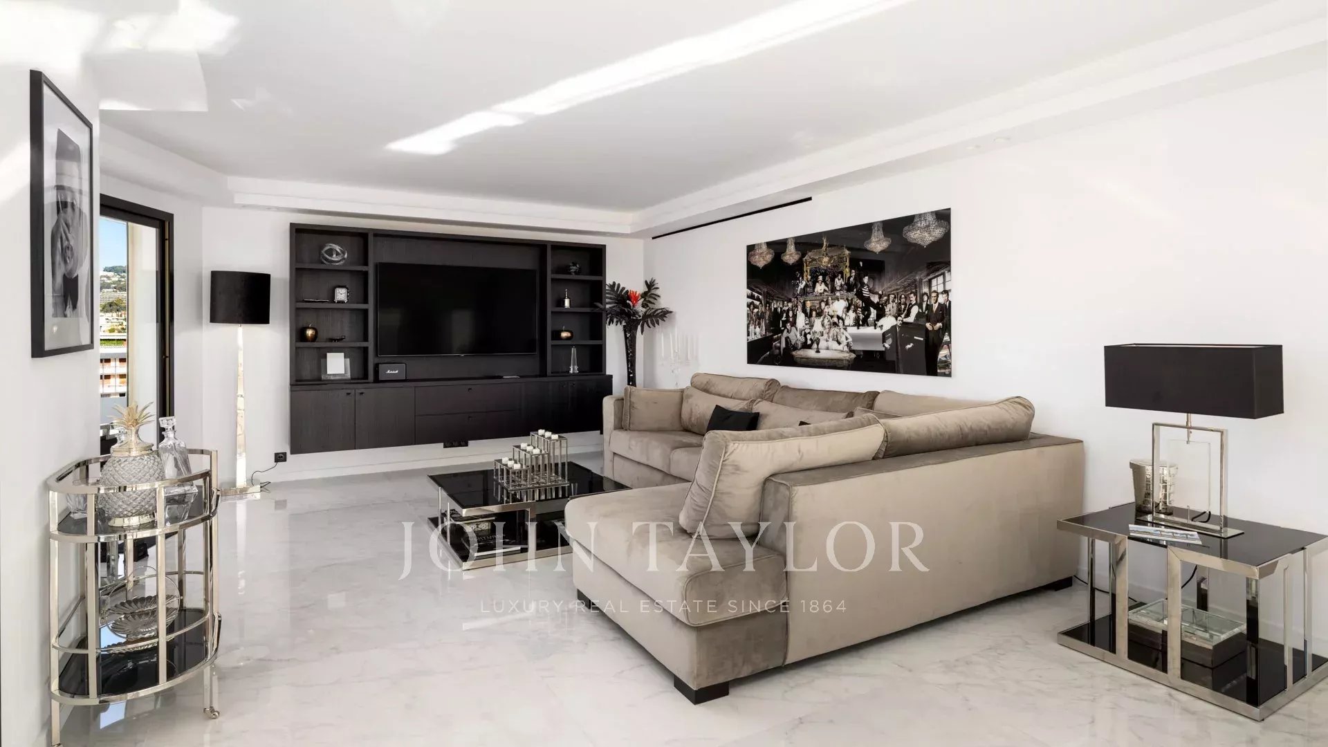 In einer Residenz im Zentrum von Cannes, nur wenige Gehminuten von den Stränden und dem Palais des Festivals entfernt, wird Sie diese wunderschöne Wohnung durch ihre Dekoration, ihre Leistungen und ihre 180 m2 große Panoramaterrasse mit Meerblick begeistern.