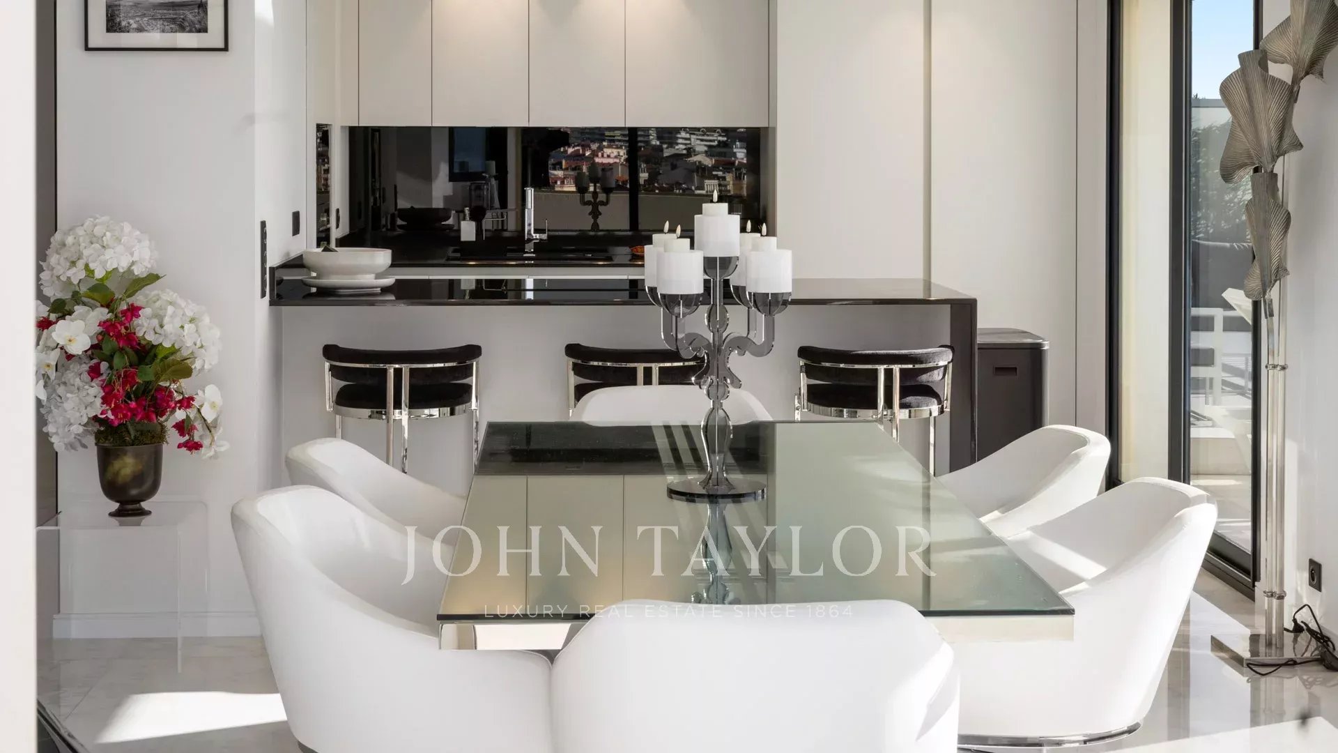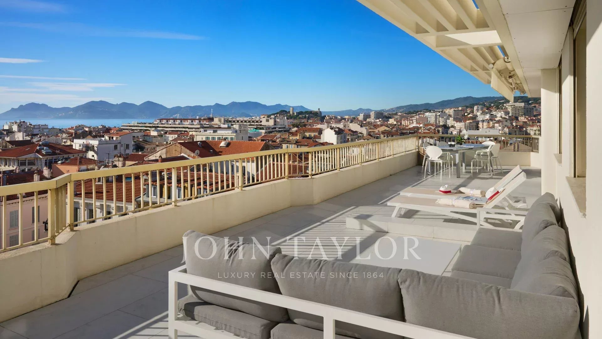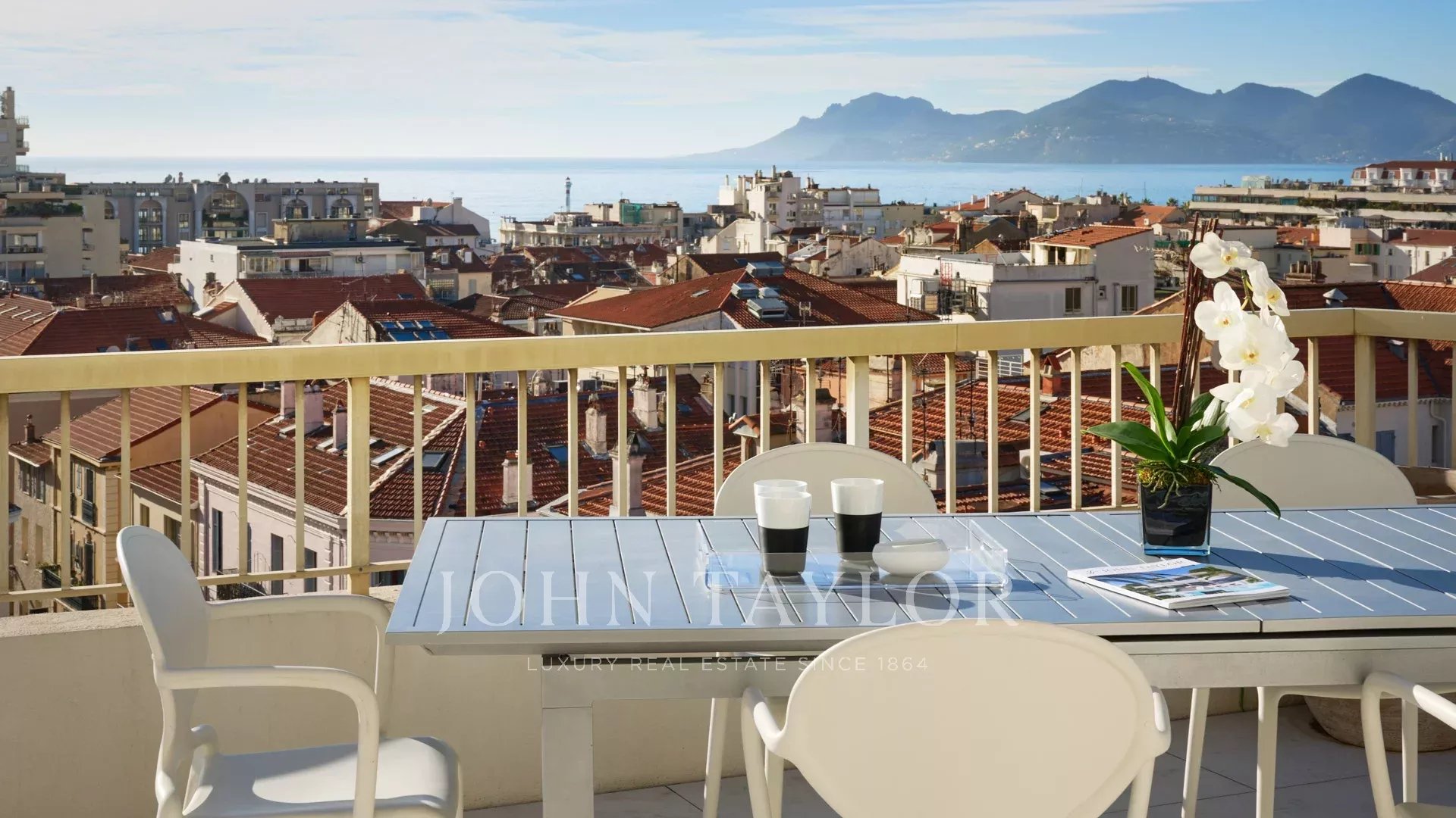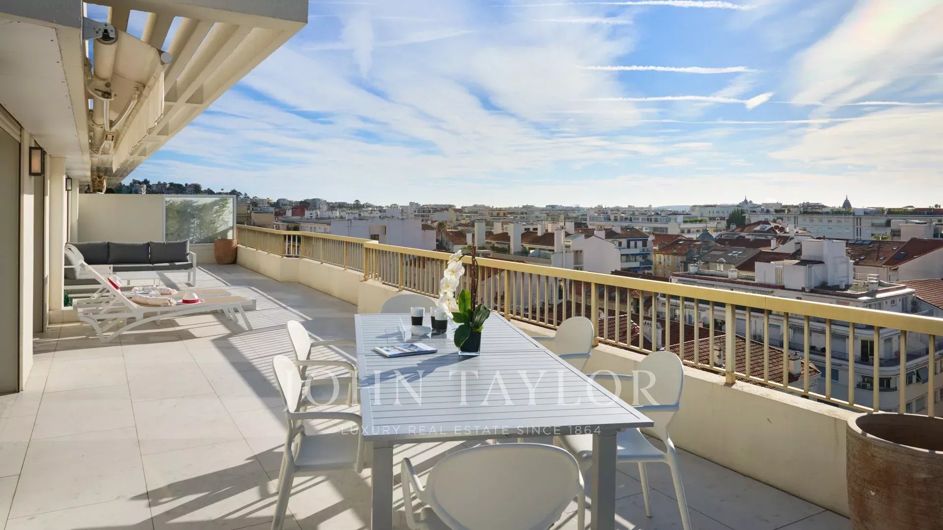 In einer Residenz im Zentrum von Cannes, nur wenige Gehminuten von den Stränden und dem Palais des Festivals entfernt, wird Sie diese wunderschöne Wohnung durch ihre Dekoration, ihre Leistungen und ihre 180 m2 große Panoramaterrasse mit Meerblick begeistern.