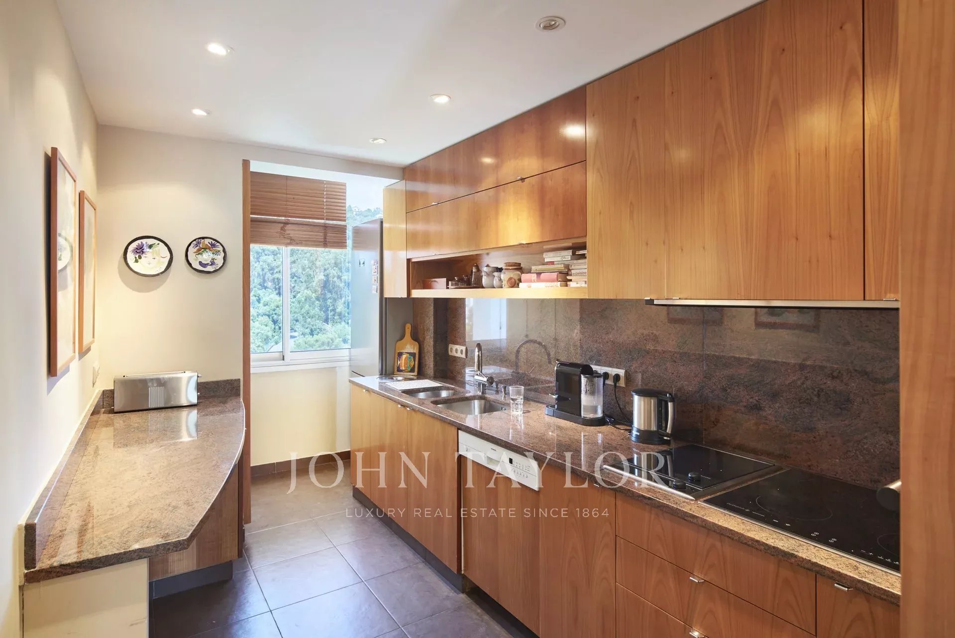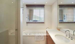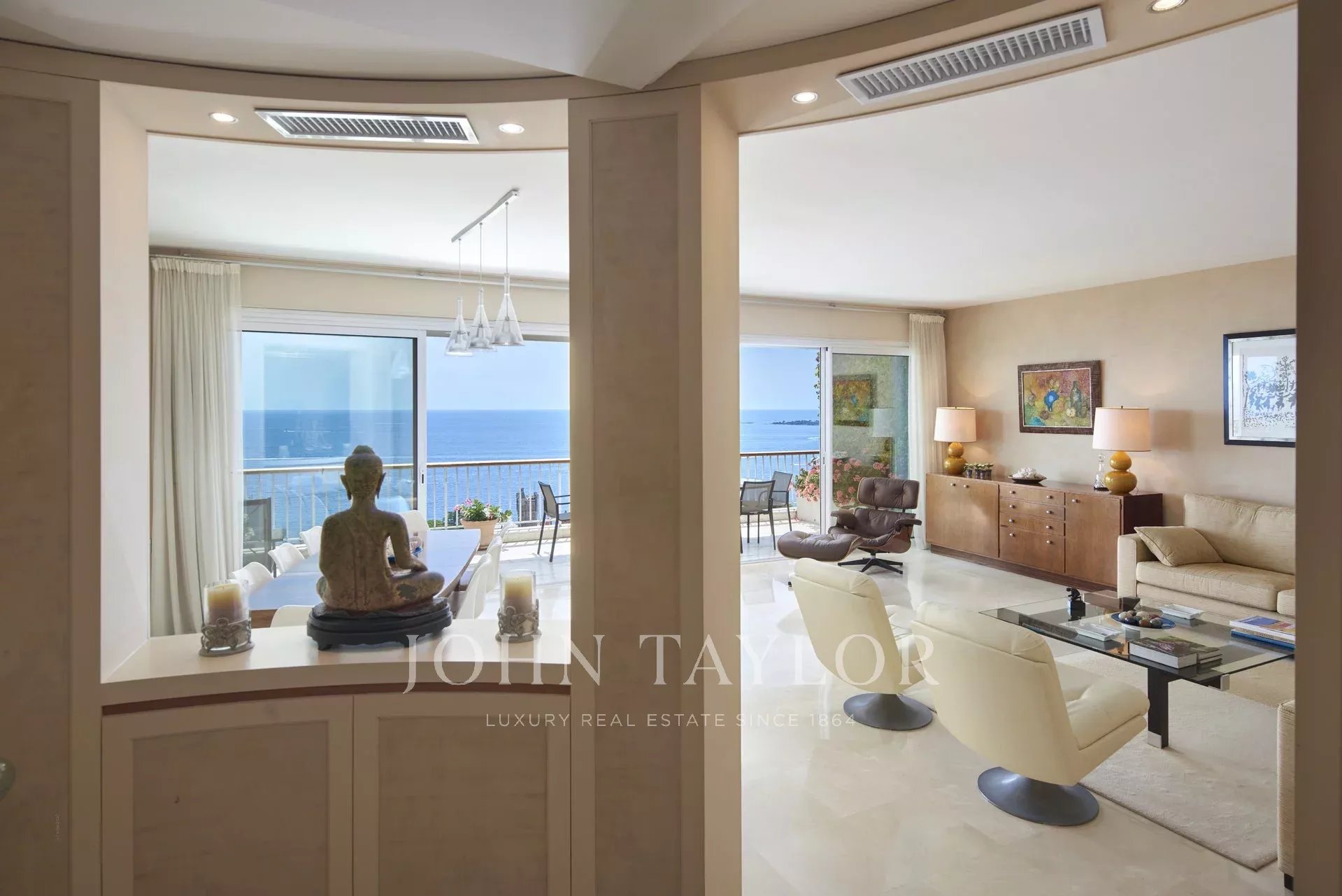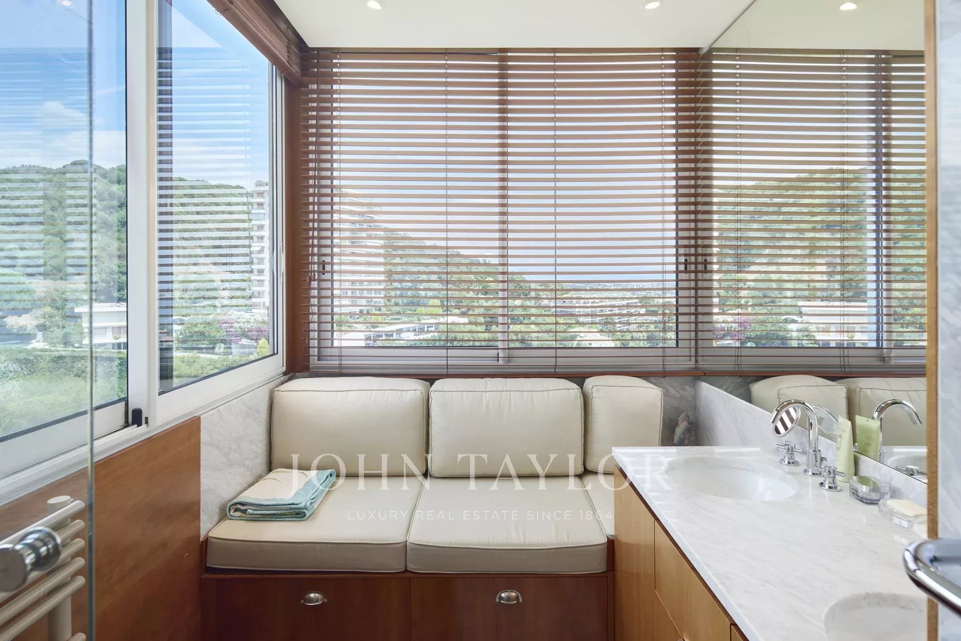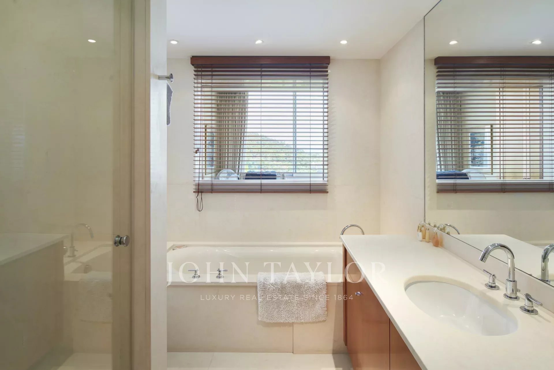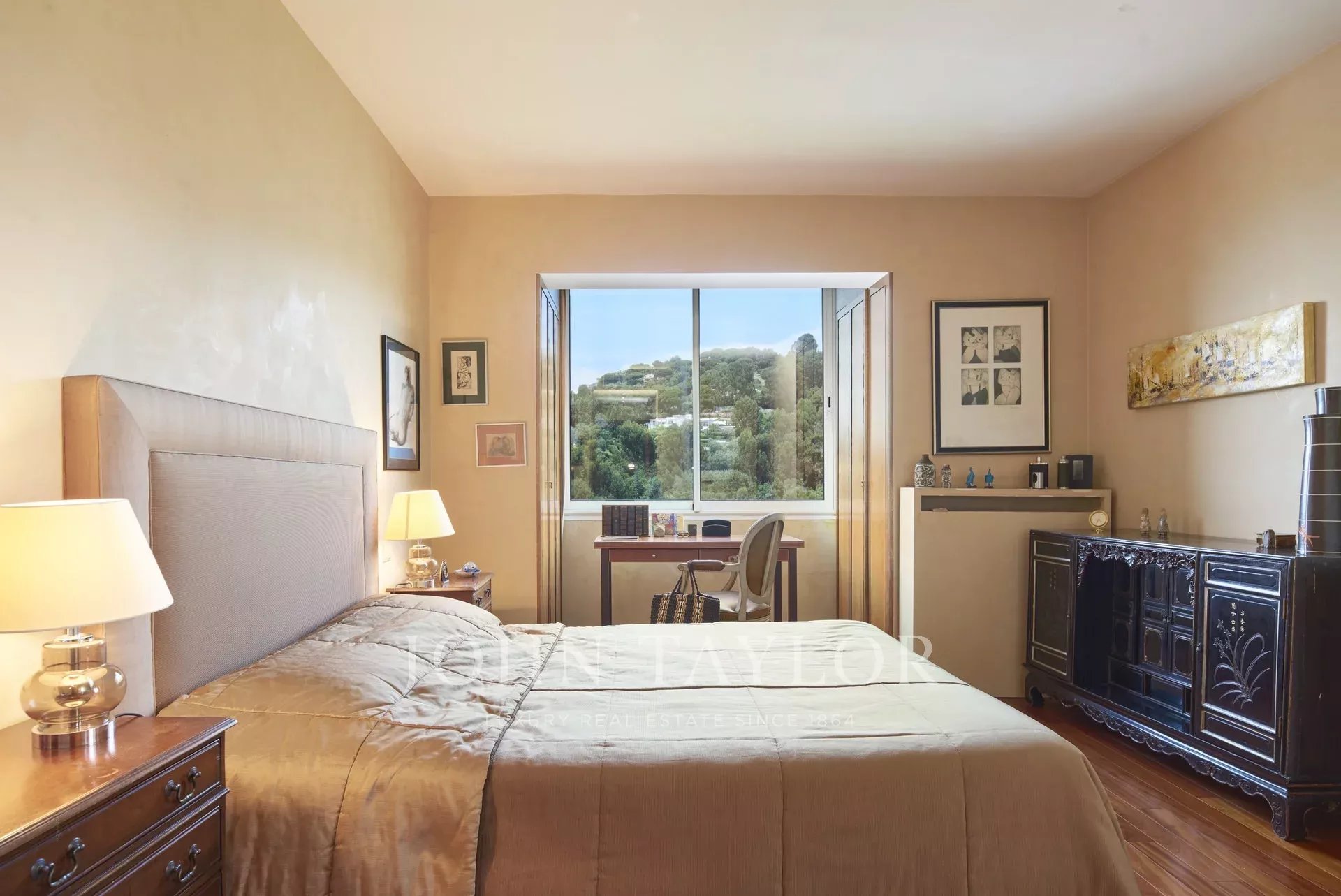 Auf den Höhen von Cannes, in einer Luxusresidenz im Herzen eines 11 Hektar großen Parks, klimatisierte Wohnung mit herrlichem Meerblick auf die Iles de Lérins und das Cap d'Antibes.