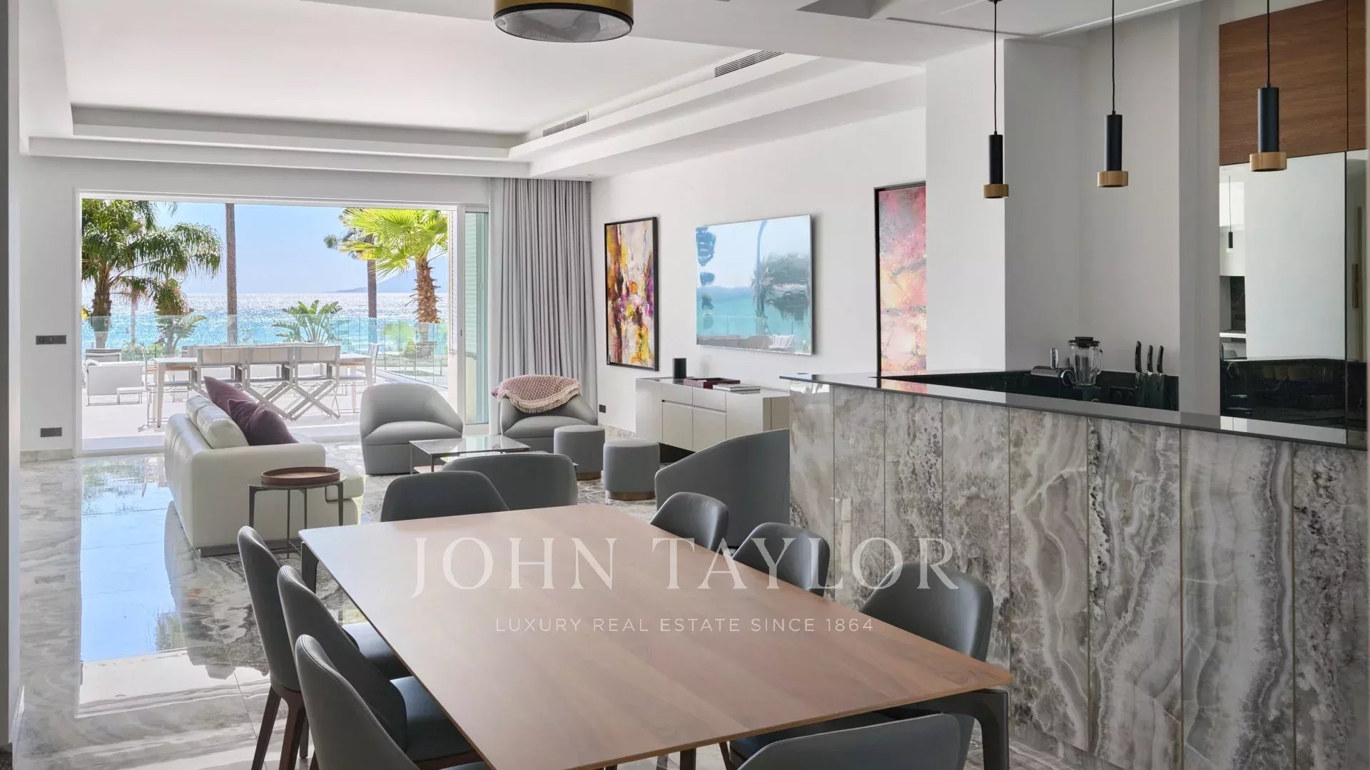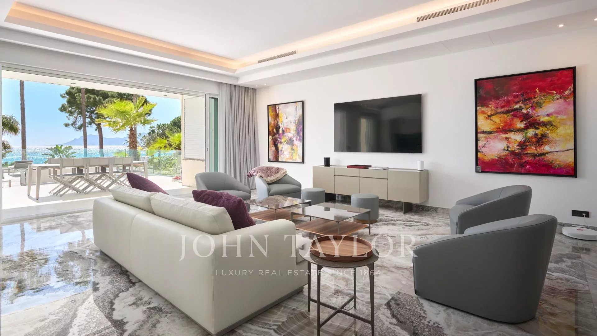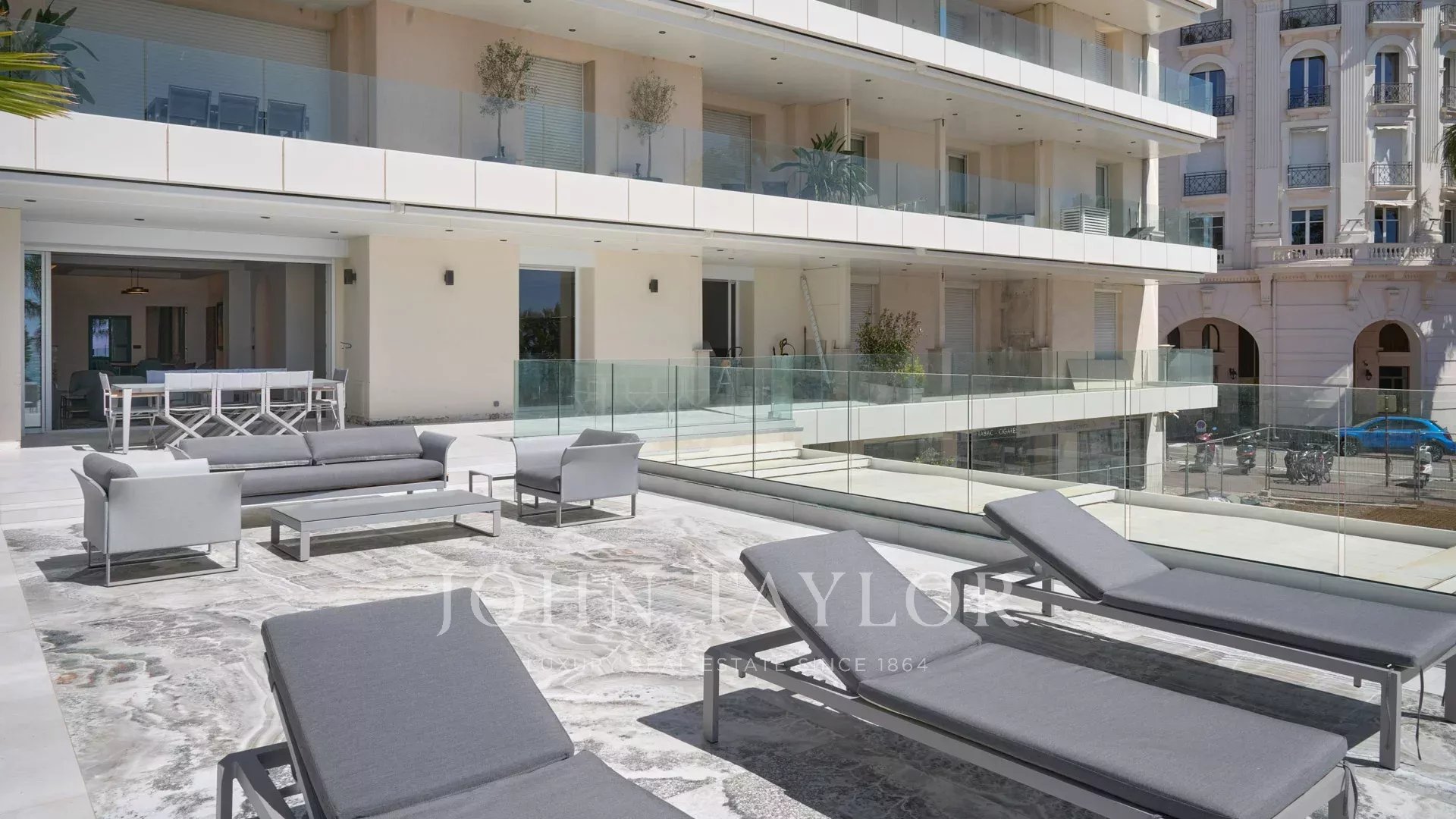Im Herzen von La Croisette, zwischen dem Carlton Hotel und dem Palais Miramar, im 1. Stock der Residenz, wunderschöne zeitgenössische Wohnung mit 220 m2 Wohnfläche.