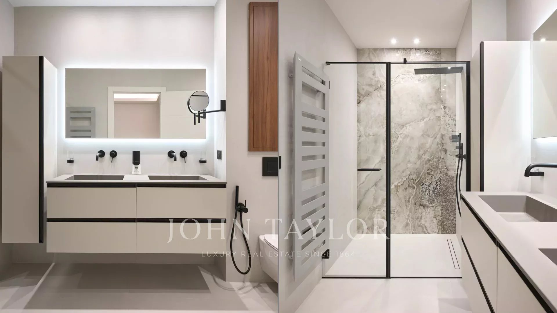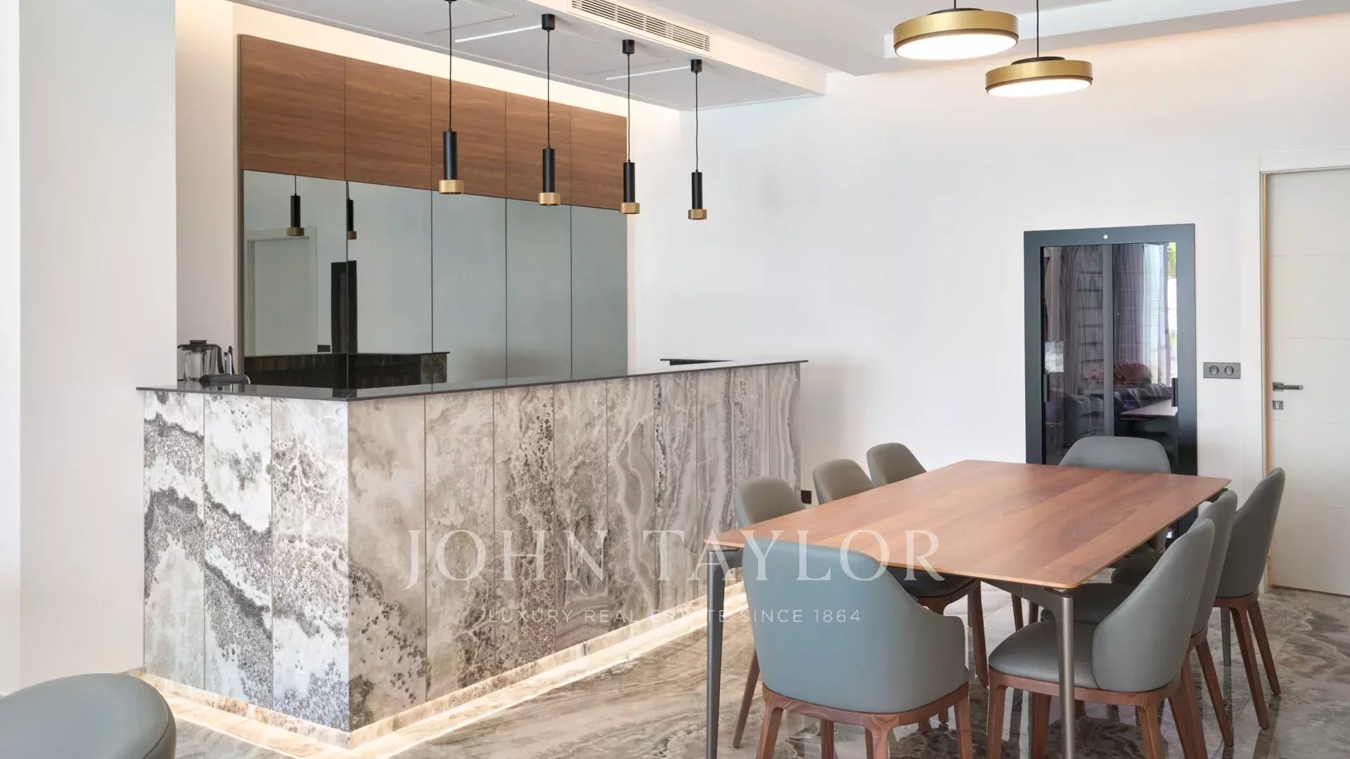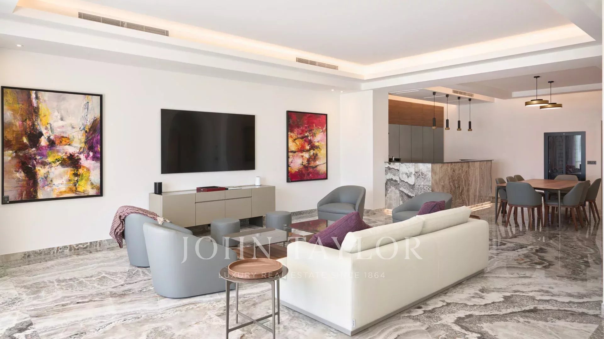 Im Herzen von La Croisette, zwischen dem Carlton Hotel und dem Palais Miramar, im 1. Stock der Residenz, wunderschöne zeitgenössische Wohnung mit 220 m2 Wohnfläche.