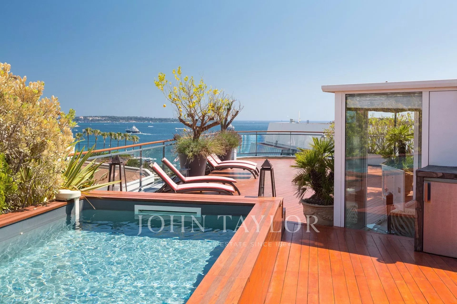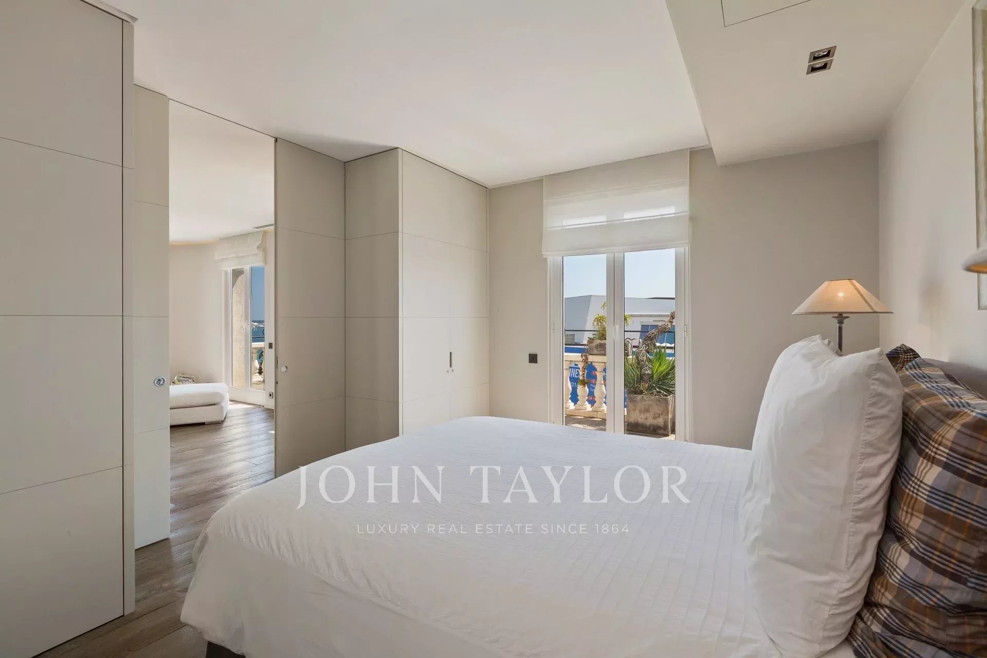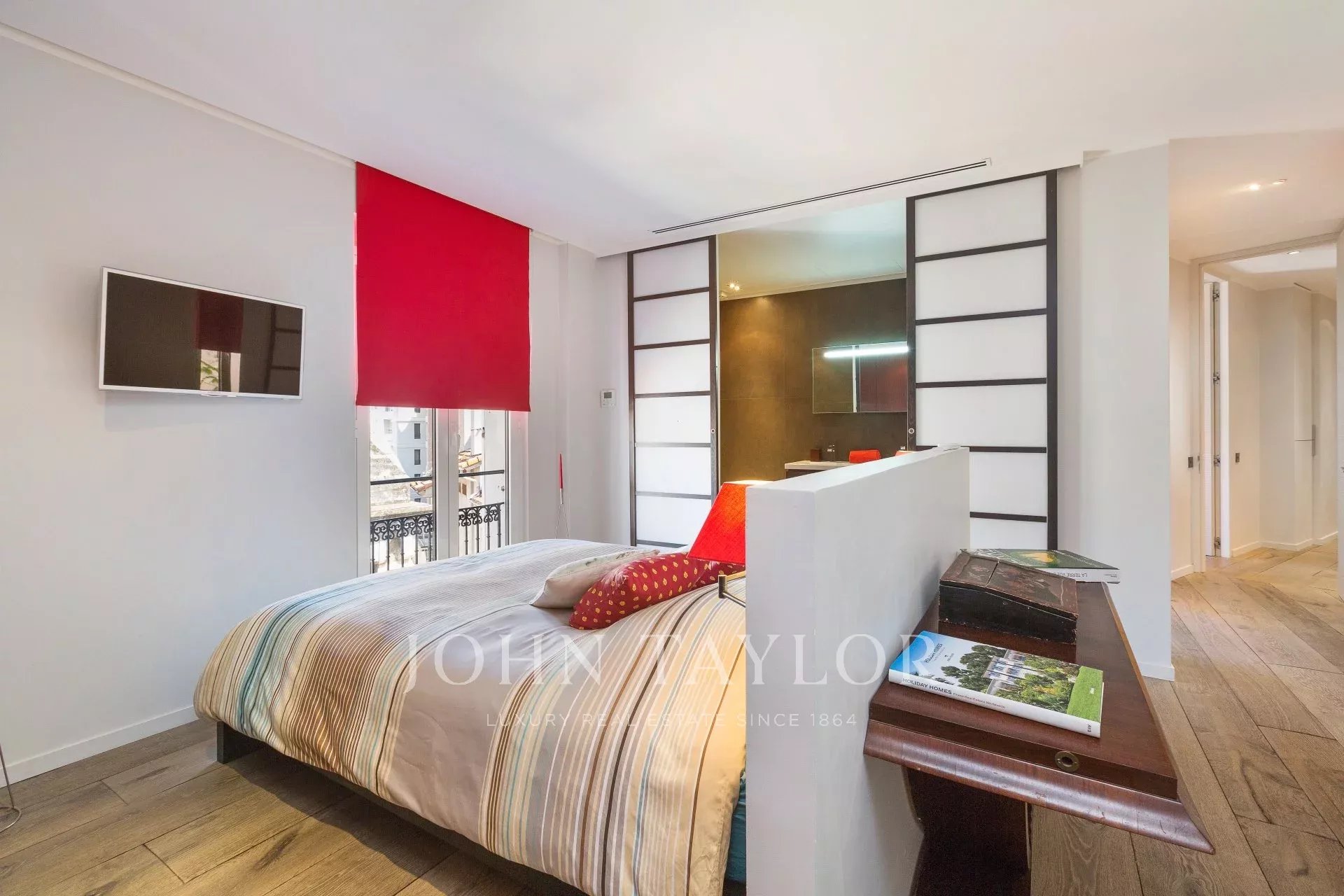 Dieses zeitgenössische Apartment wurde komplett renoviert und besticht durch seine Dekoration, seine hochwertigen und raffinierten Leistungen, seine große Teakholzterrasse und seine Lage.