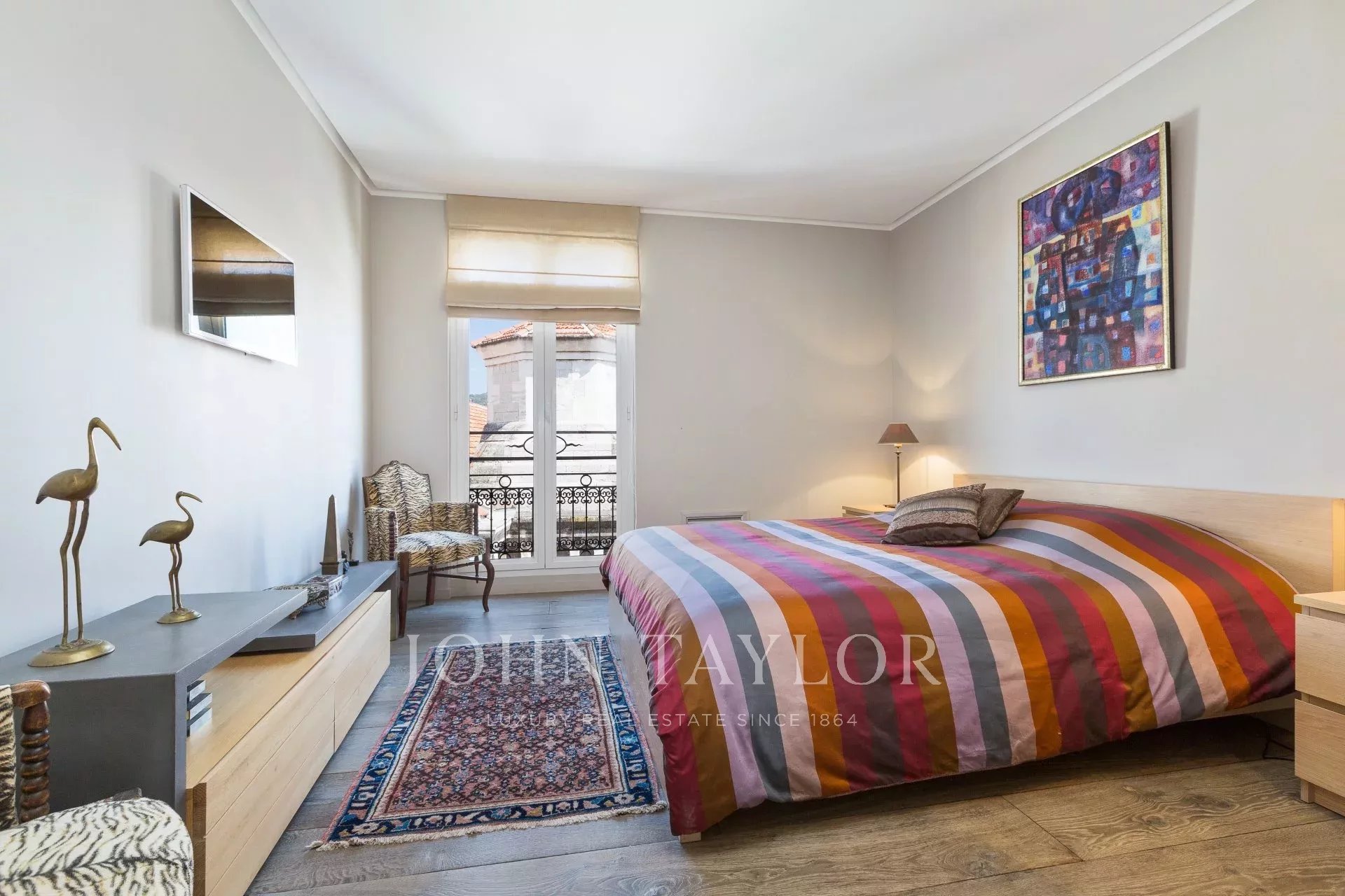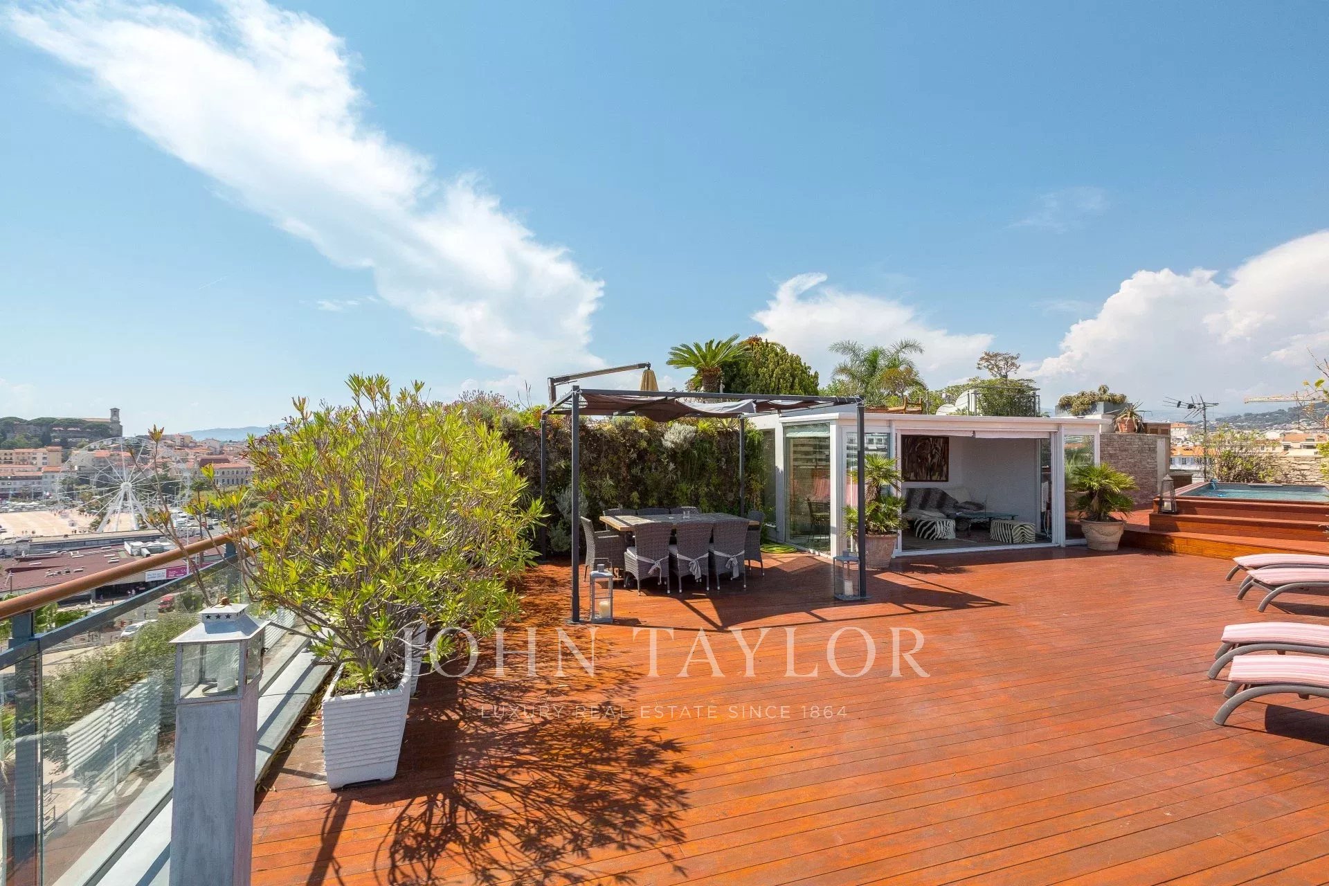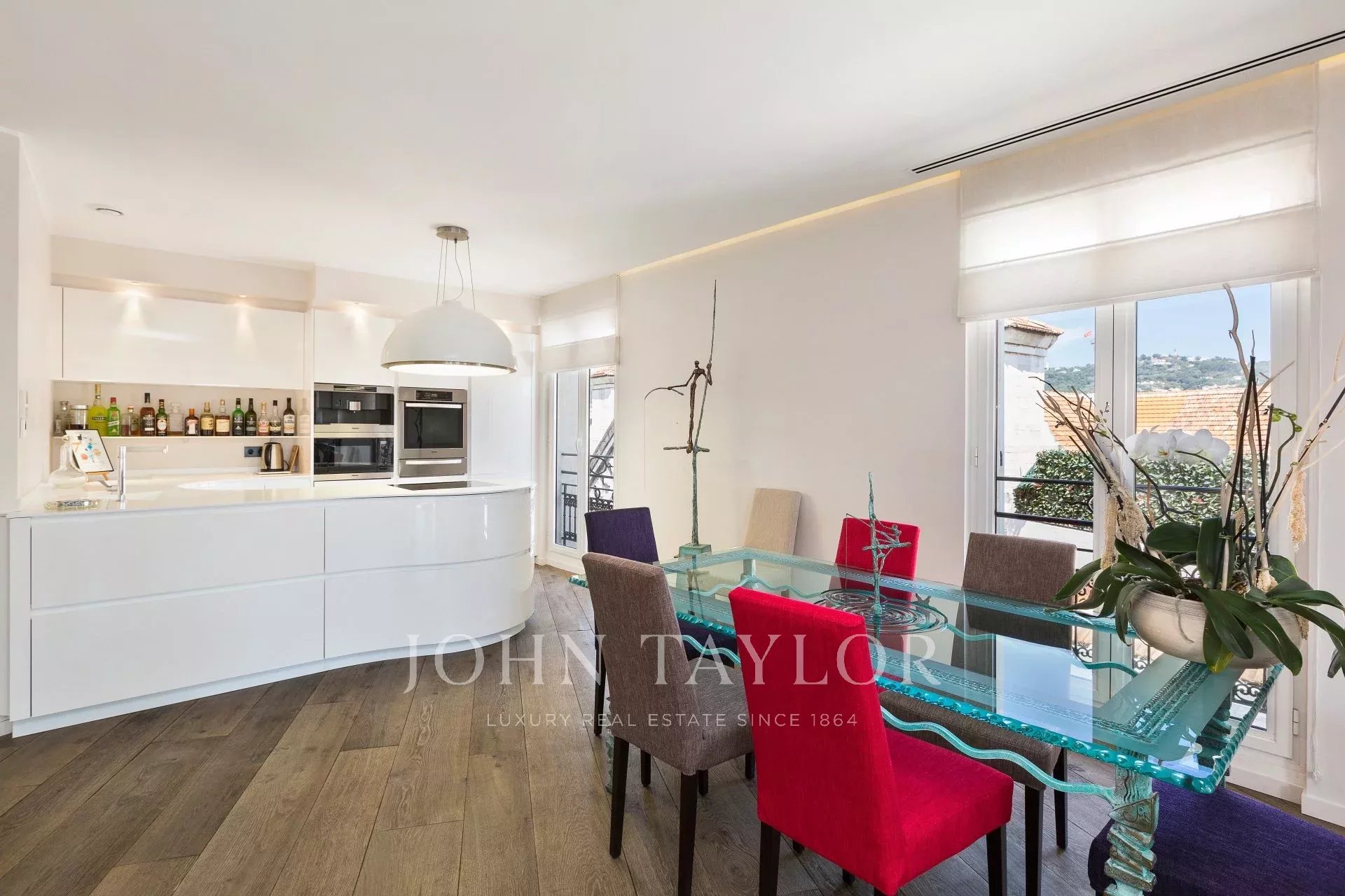 Dieses zeitgenössische Apartment wurde komplett renoviert und besticht durch seine Dekoration, seine hochwertigen und raffinierten Leistungen, seine große Teakholzterrasse und seine Lage.