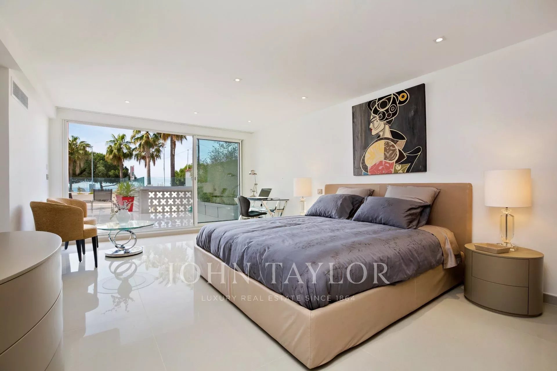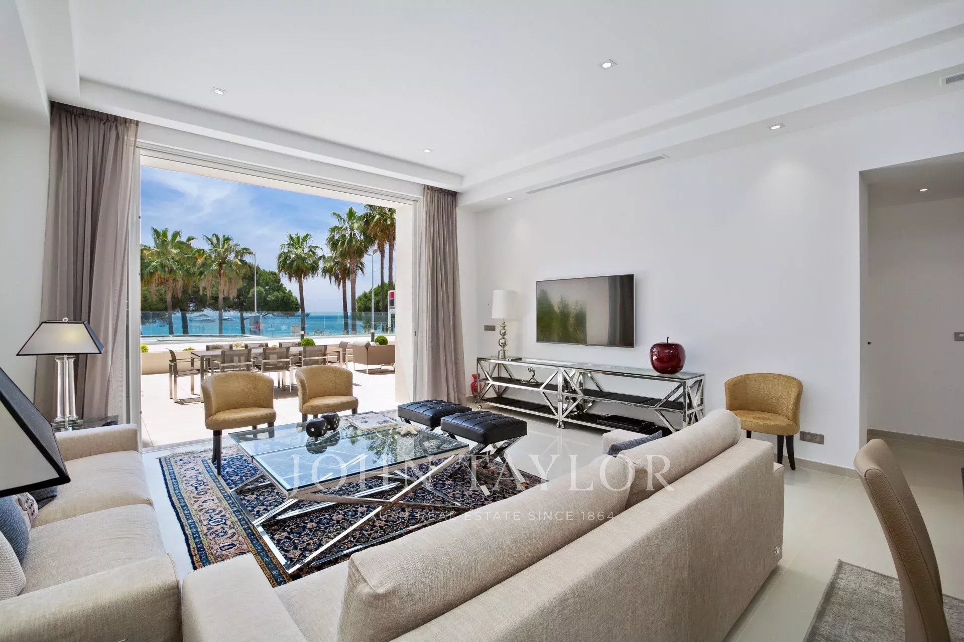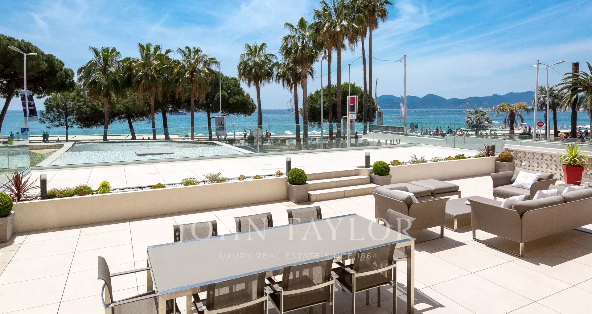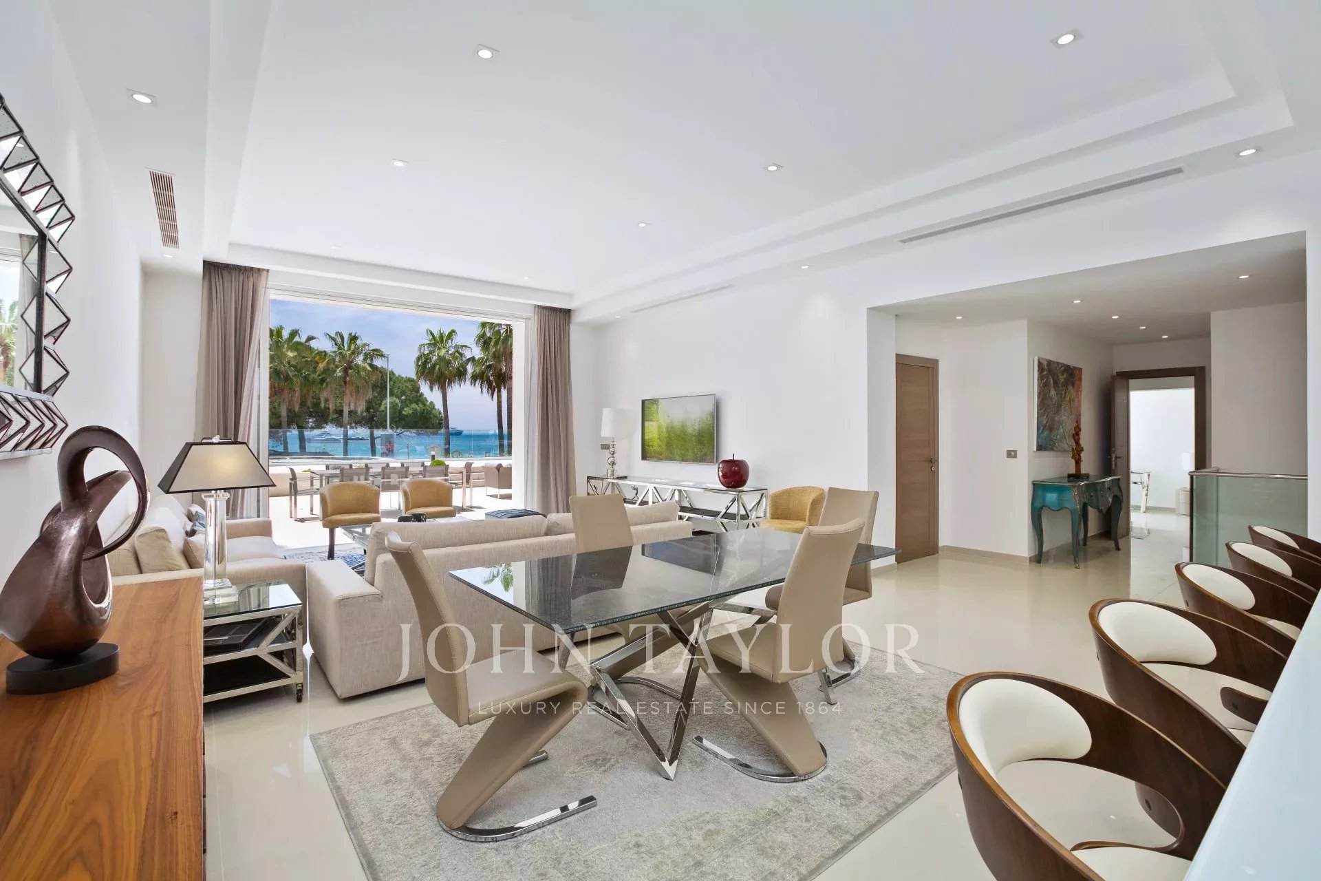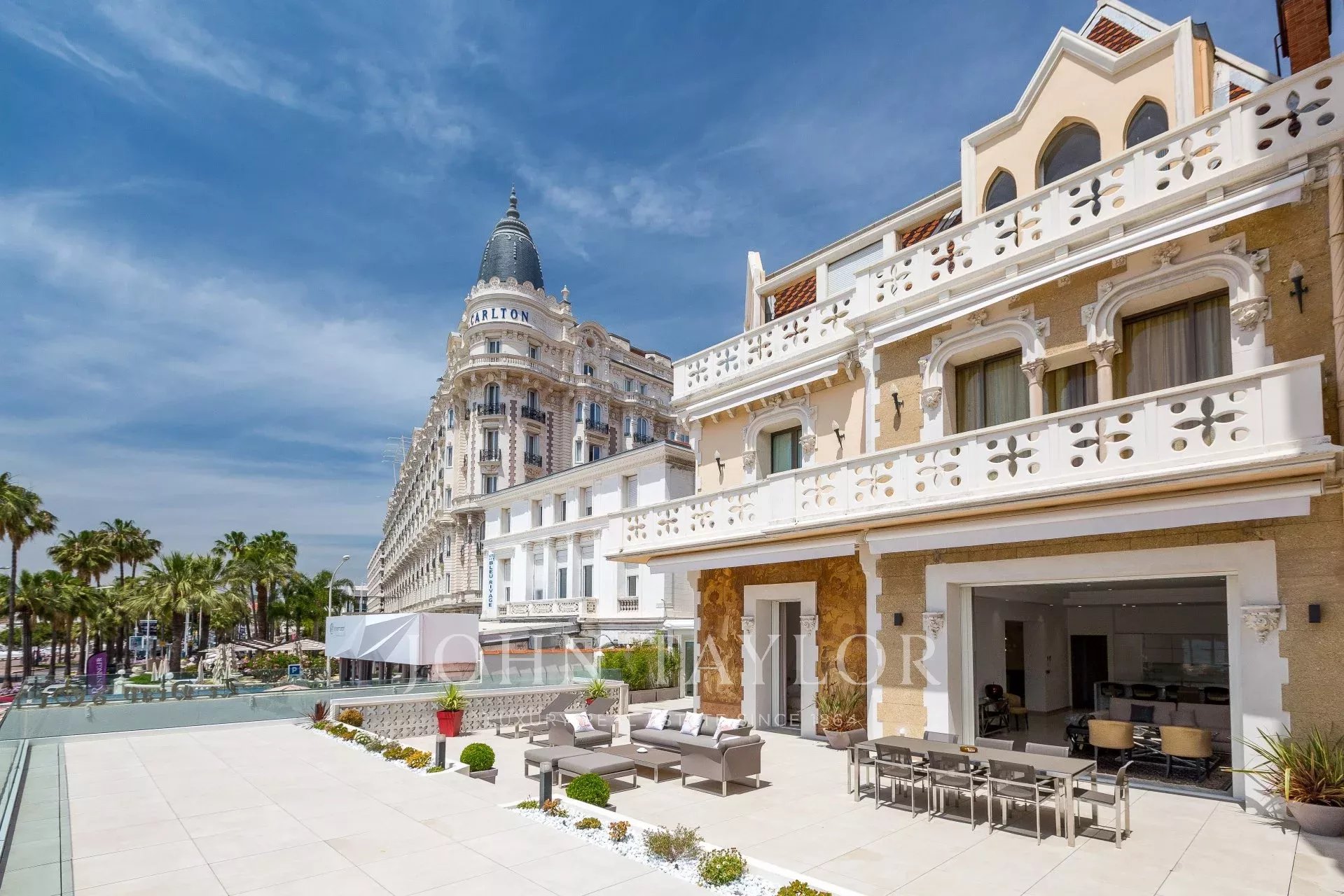 An der Croisette, neben dem Hotel Carlton, in einer kleinen denkmalgeschützten Residenz, wunderschöne zeitgenössische Wohnung von ca. 215 m2 Wohnfläche.
