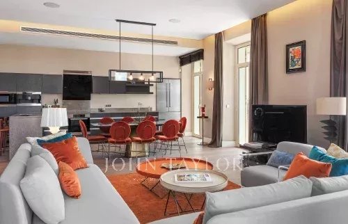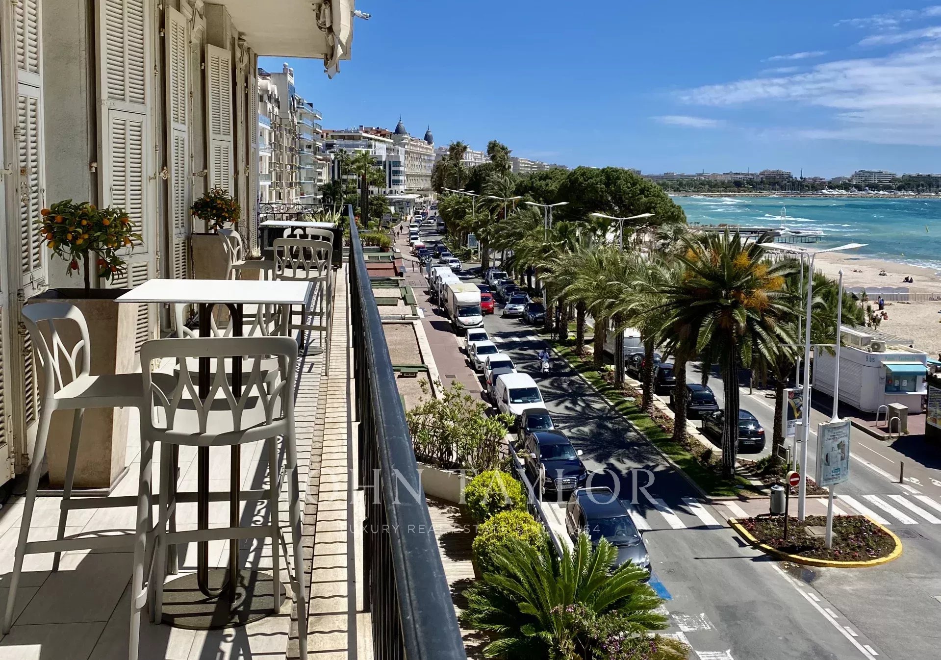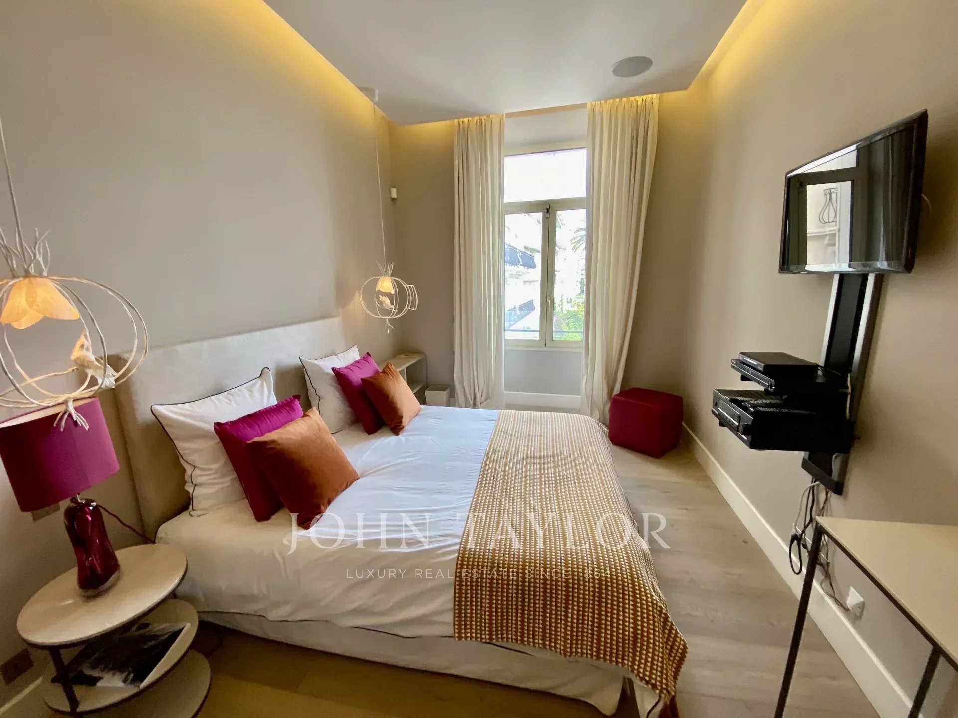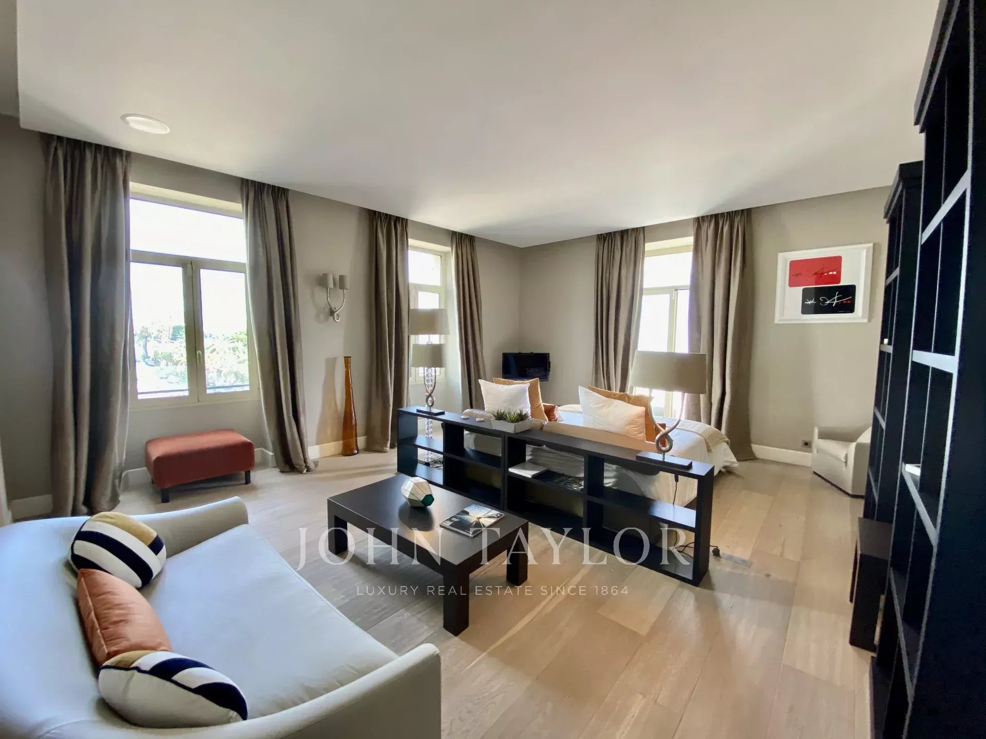 Mit einem herrlichen Blick auf die Bucht von Cannes und die Croisette, nur wenige Gehminuten vom Palais des Festivals entfernt, befindet sich dieses wunderschöne, zeitgenössische Apartment mit einer Wohnfläche von ca. 230 m2 und 35 m2 Terrassen.