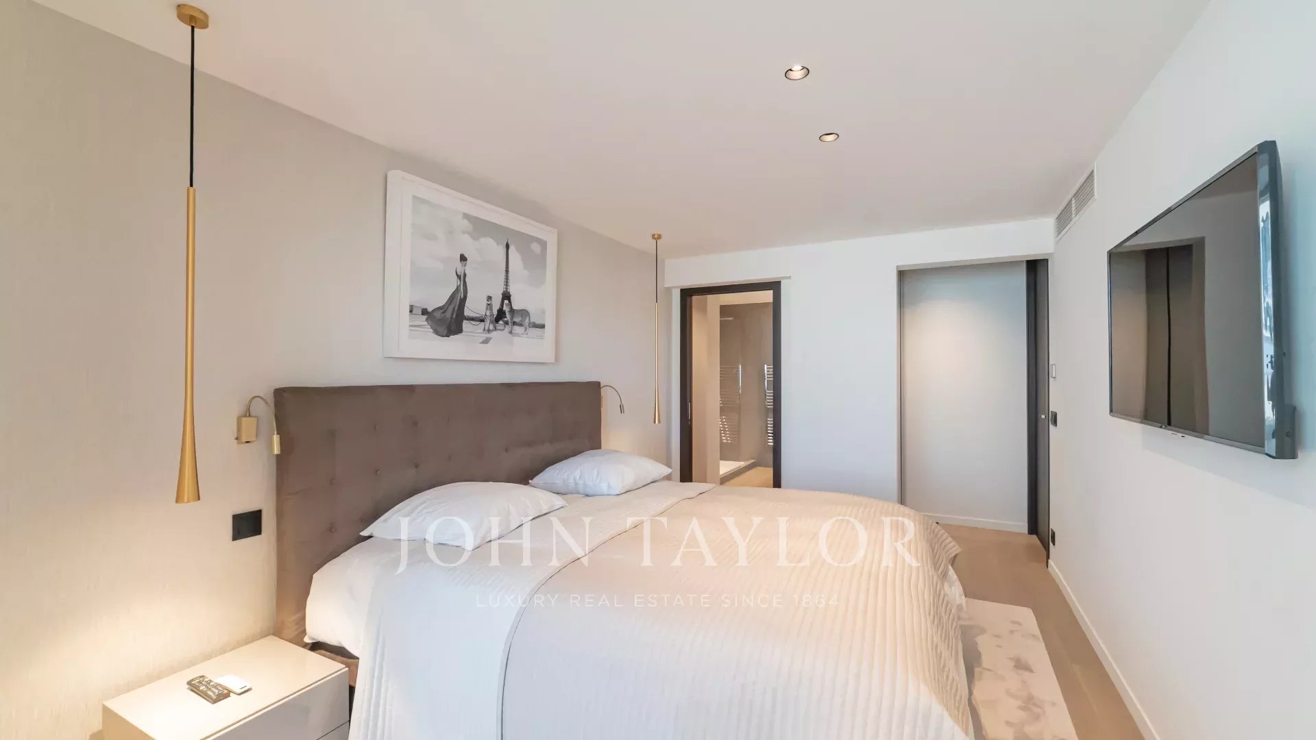 Drei Schlafzimmer ensuite mit TV, Ankleidezimmer und Duschraum (zwei davon mit WC)