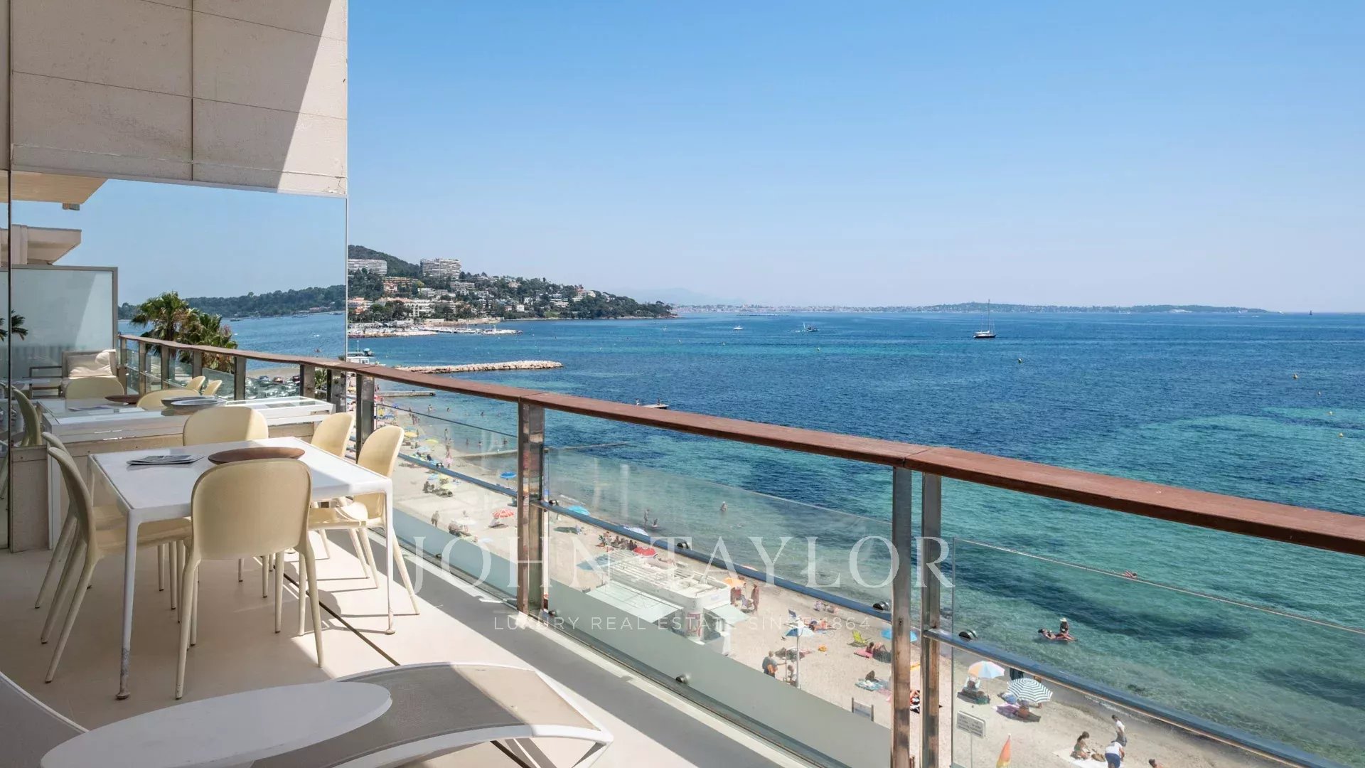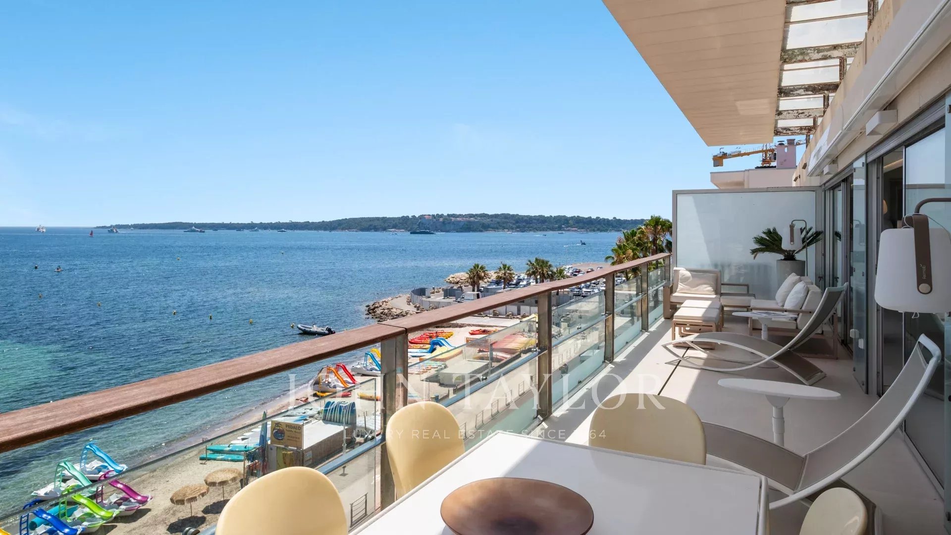 Schöne 4-Zimmer-Wohnung im 5. und letzten Stock einer Residenz am Palm Beach in Cannes gegenüber den Iles de Lérins und Cap d'Antibes. Wunderschöner Blick auf das Meer.