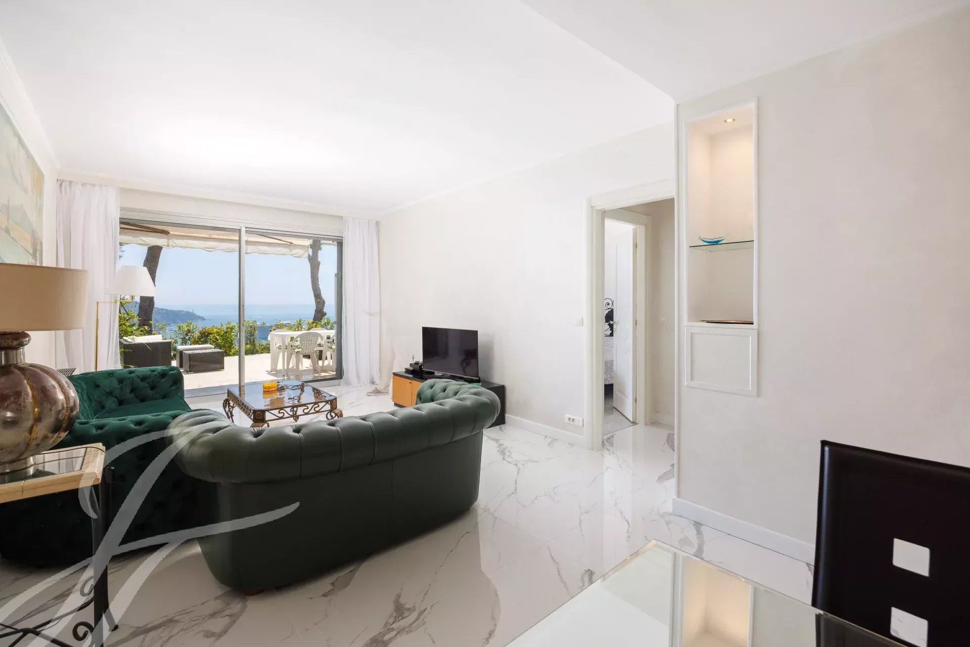 In einer luxuriösen Residenz, angenehme 3-Zimmerwohnung mit 37 m² Terrasse, die einen herrlichen Blick auf das Meer und Cap Ferrat bietet, in der Nähe von allen Annehmlichkeiten.