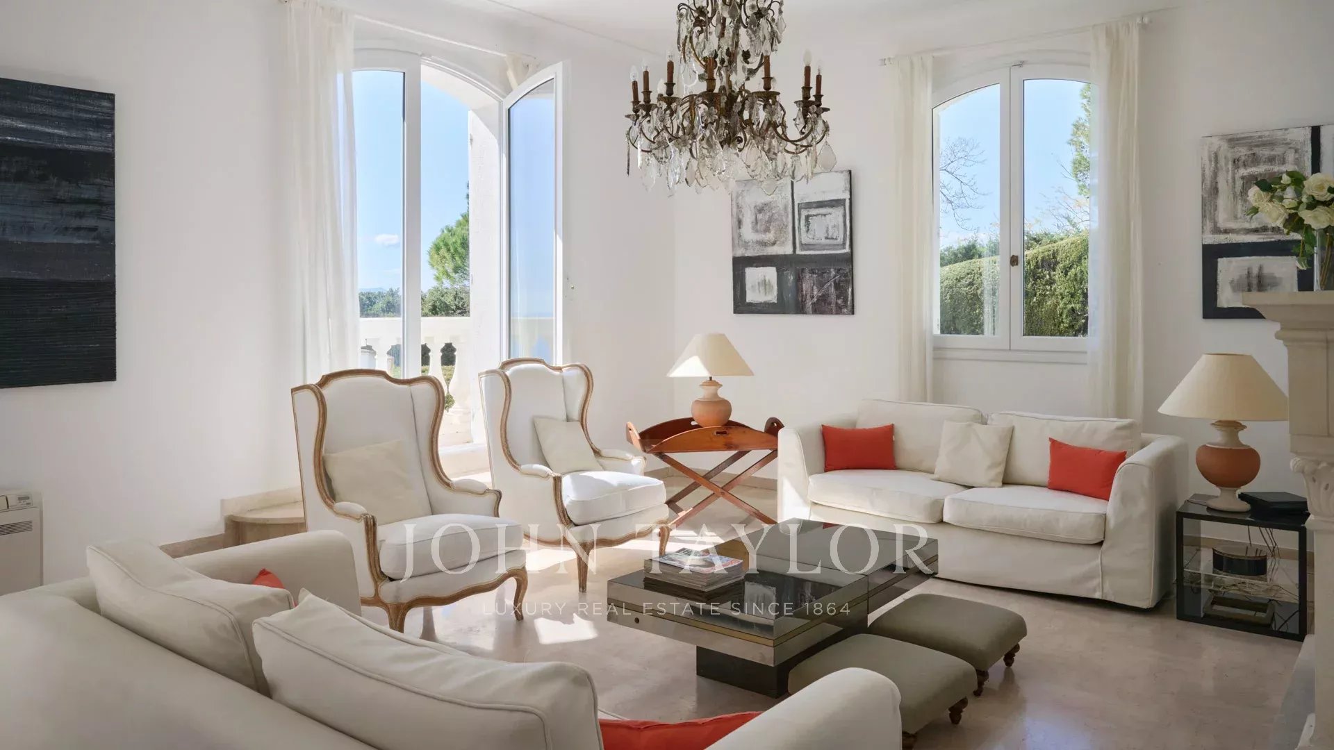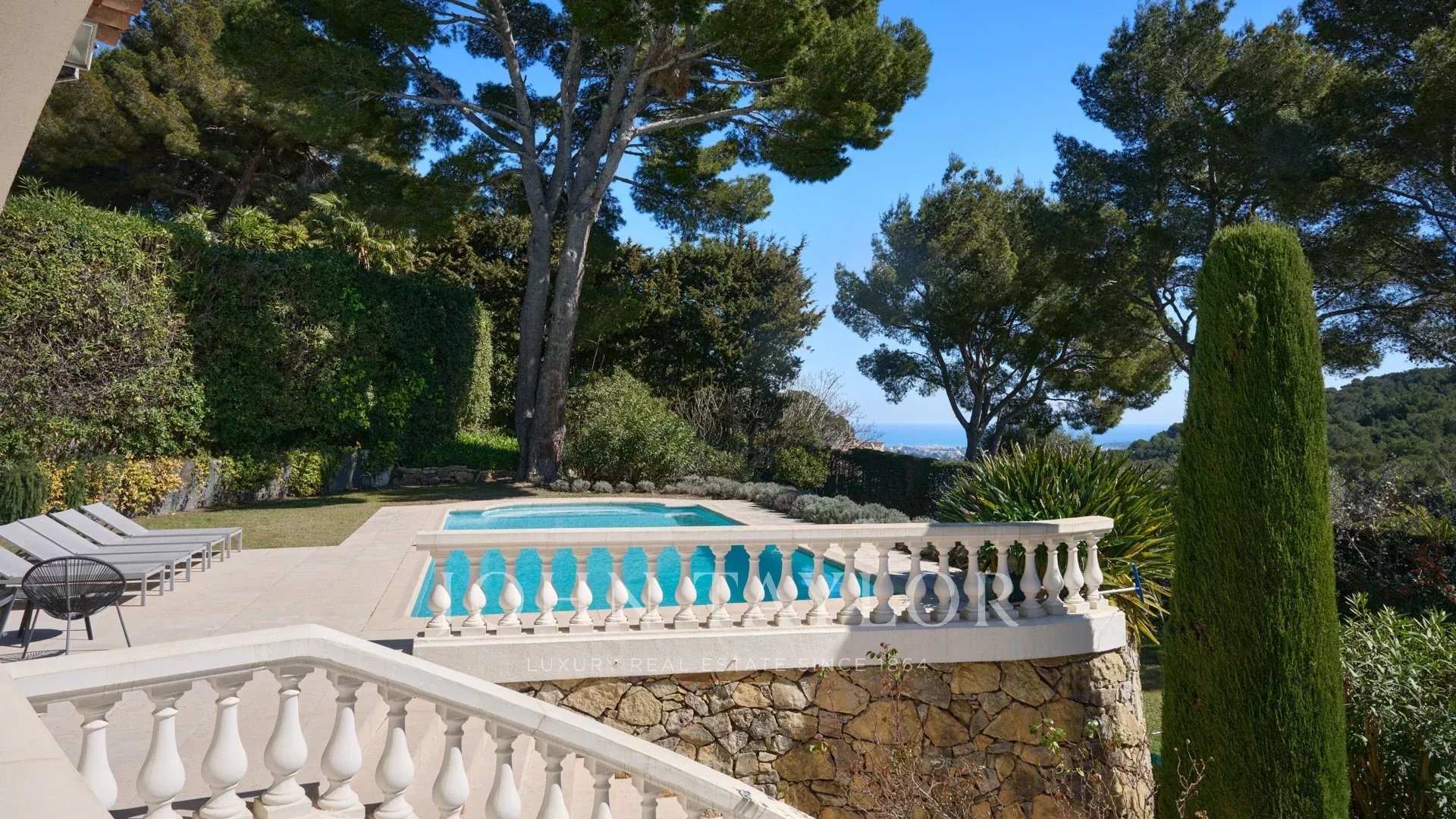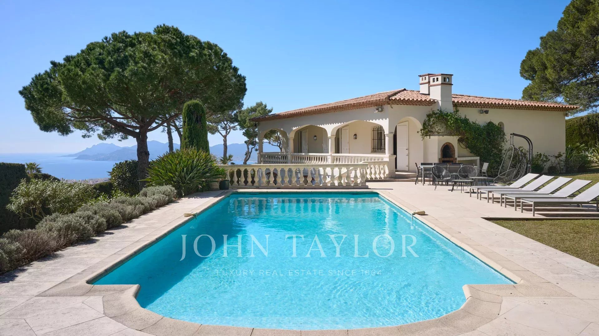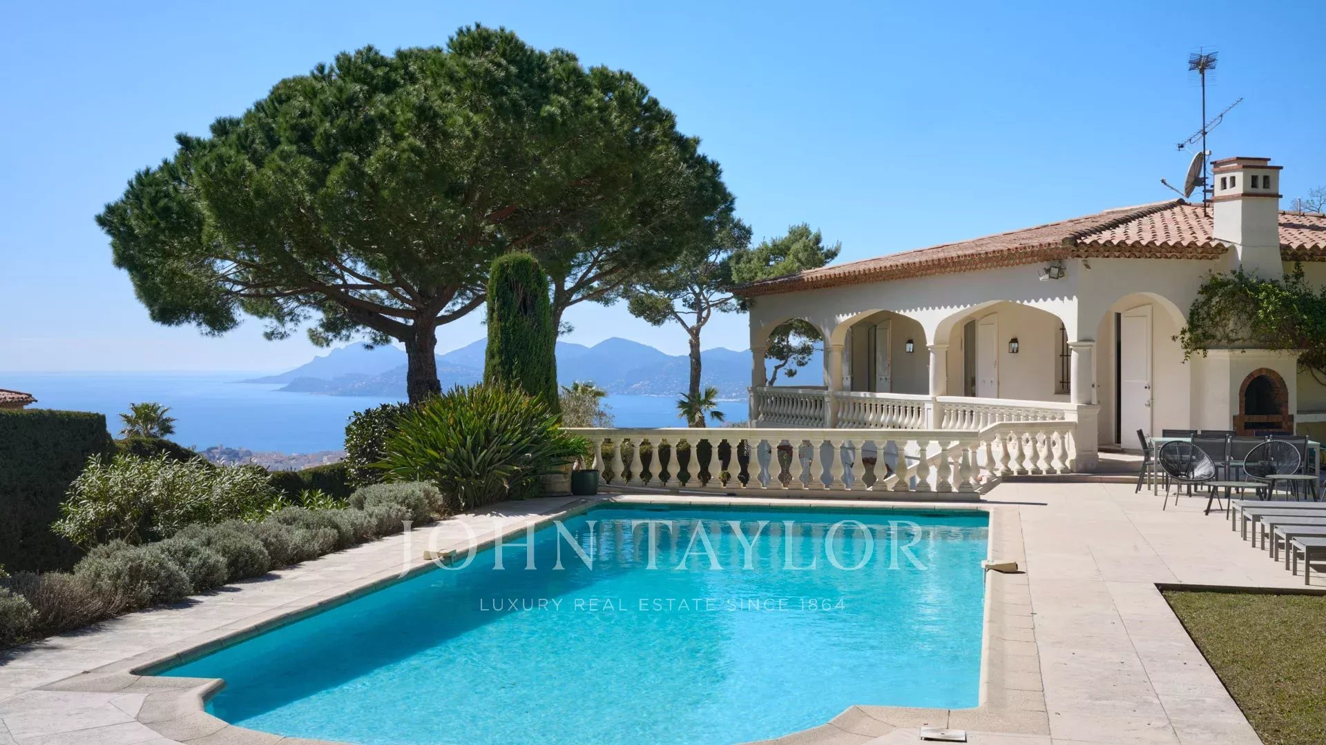 Schöne Villa im provenzalischen Stil auf den Anhöhen von Cannes mit einer großen Terrasse und Meerblick.