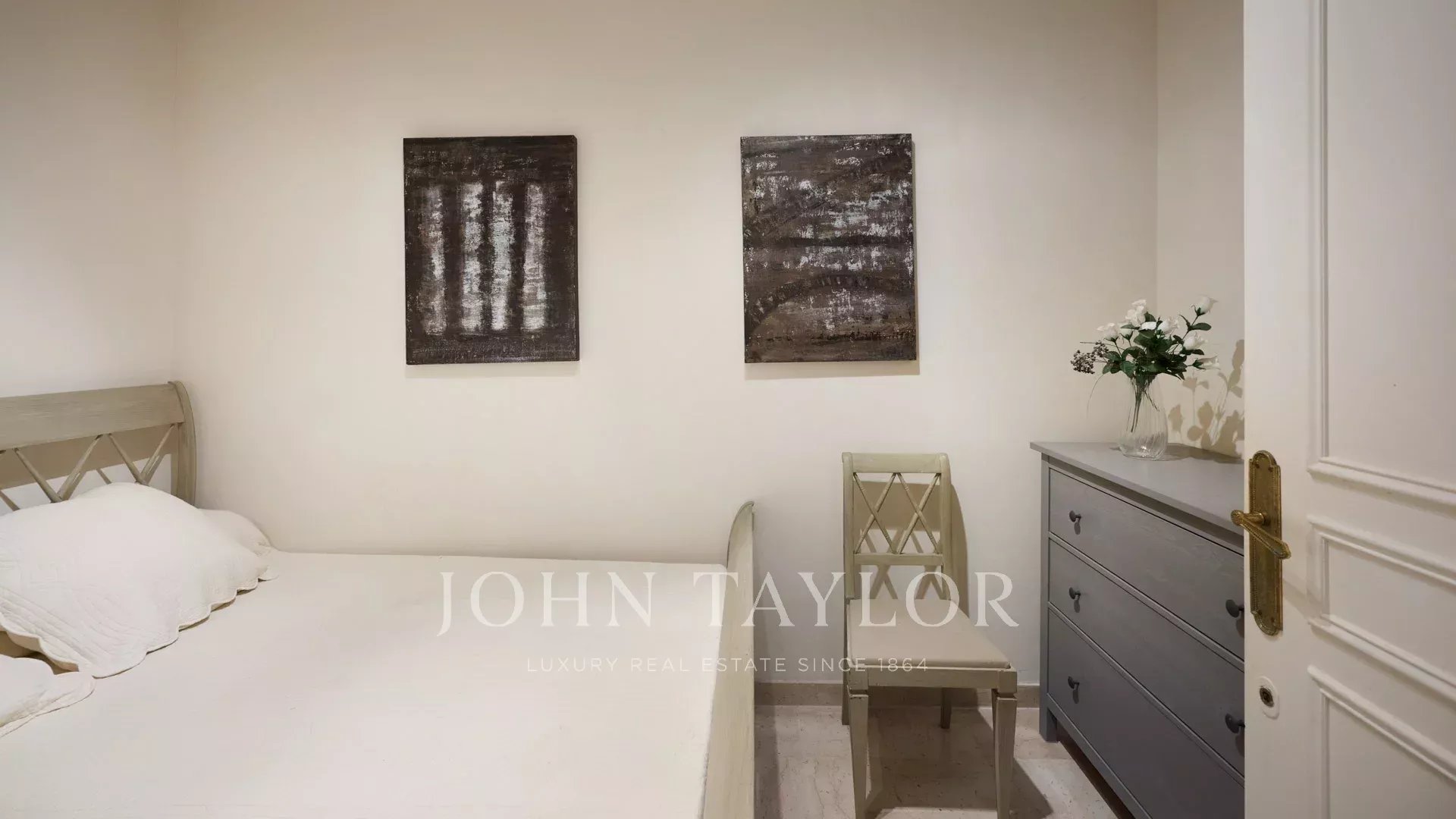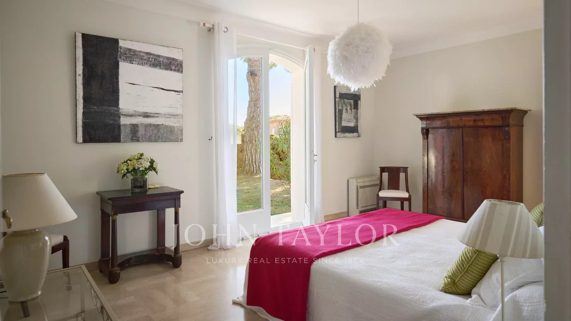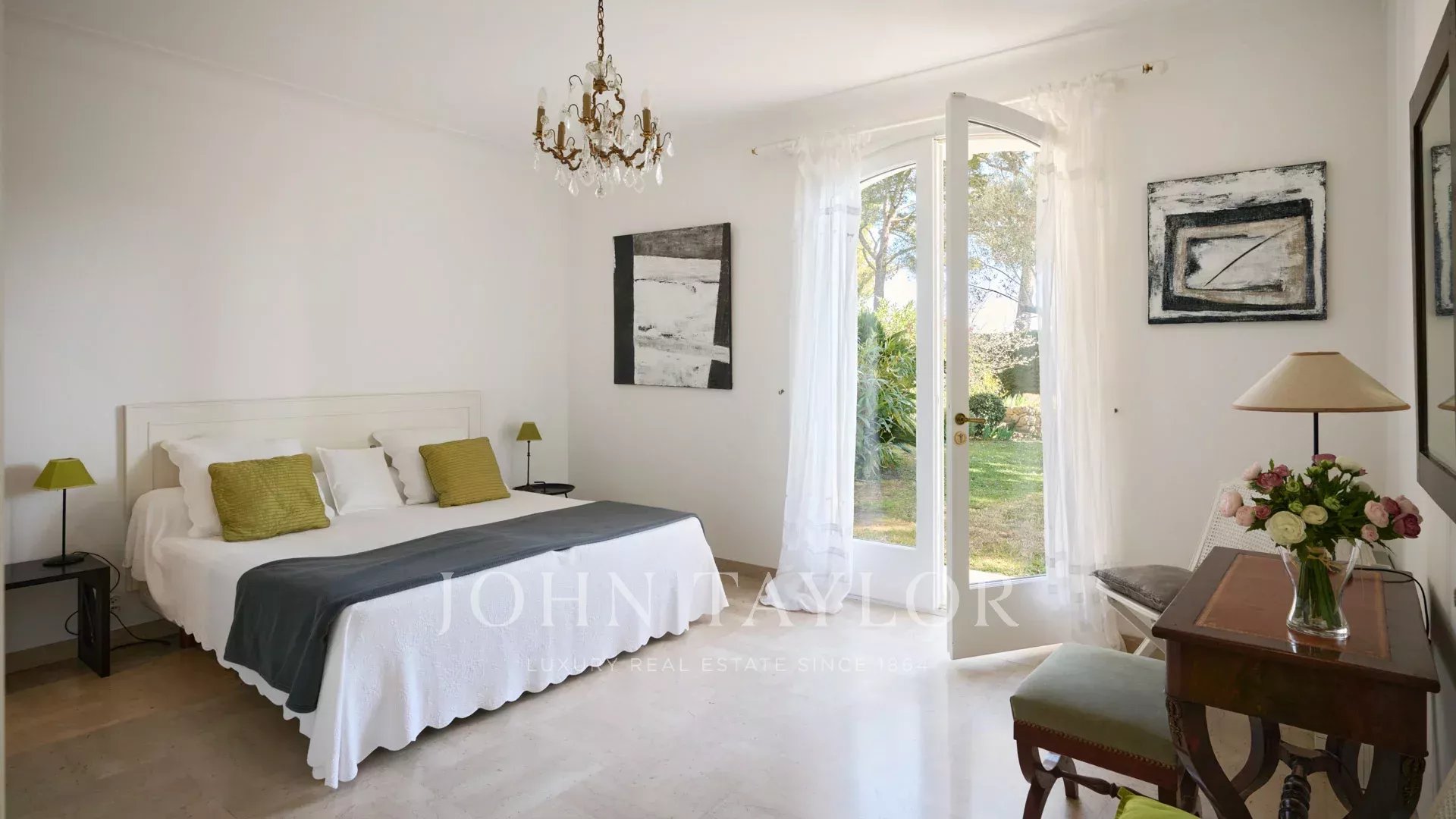 Klimatisiertes Zimmer, 2 Einzelbetten, Fenstertüren, die sich zum Garten hin öffnen, Badezimmer, WC.