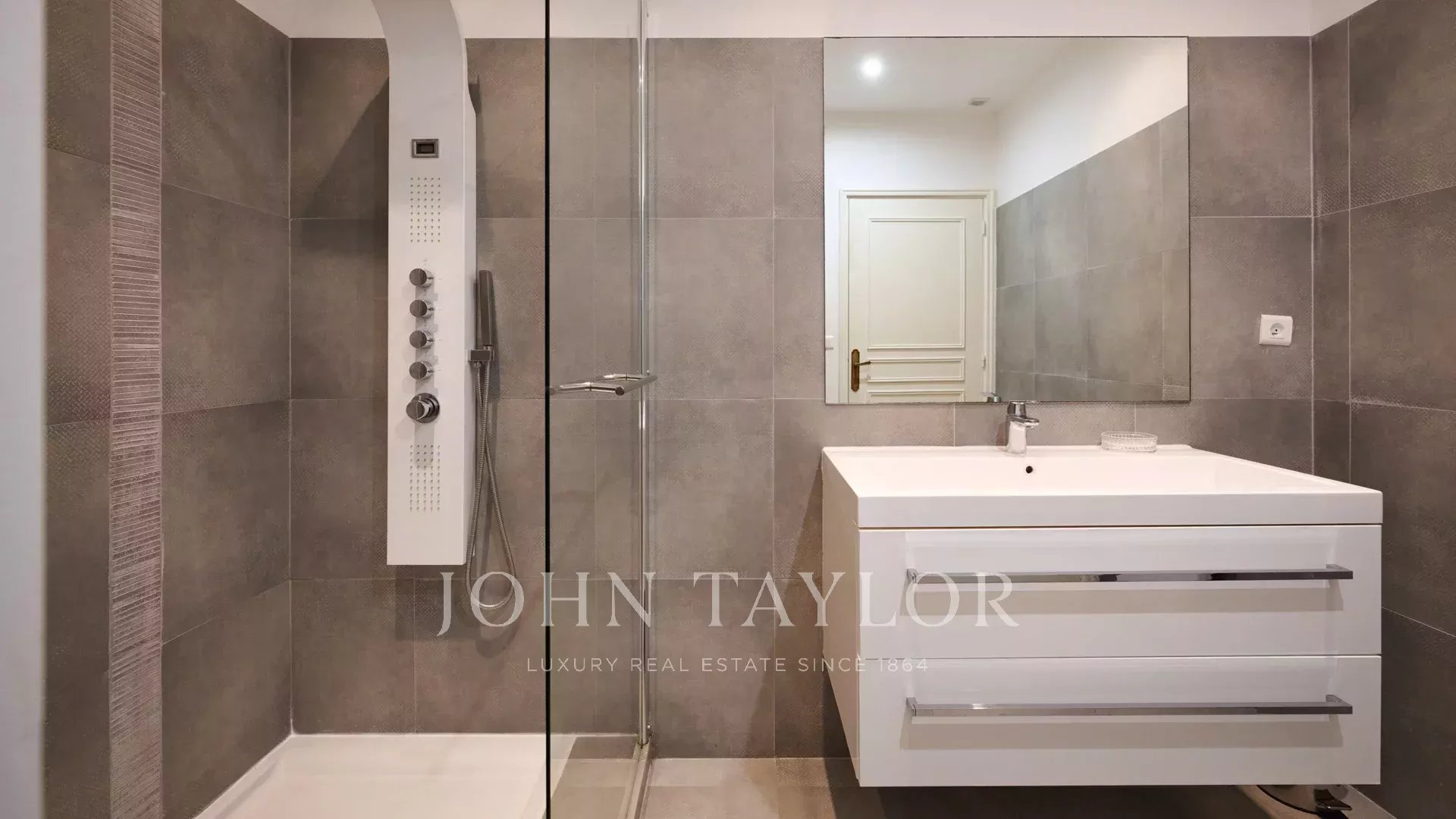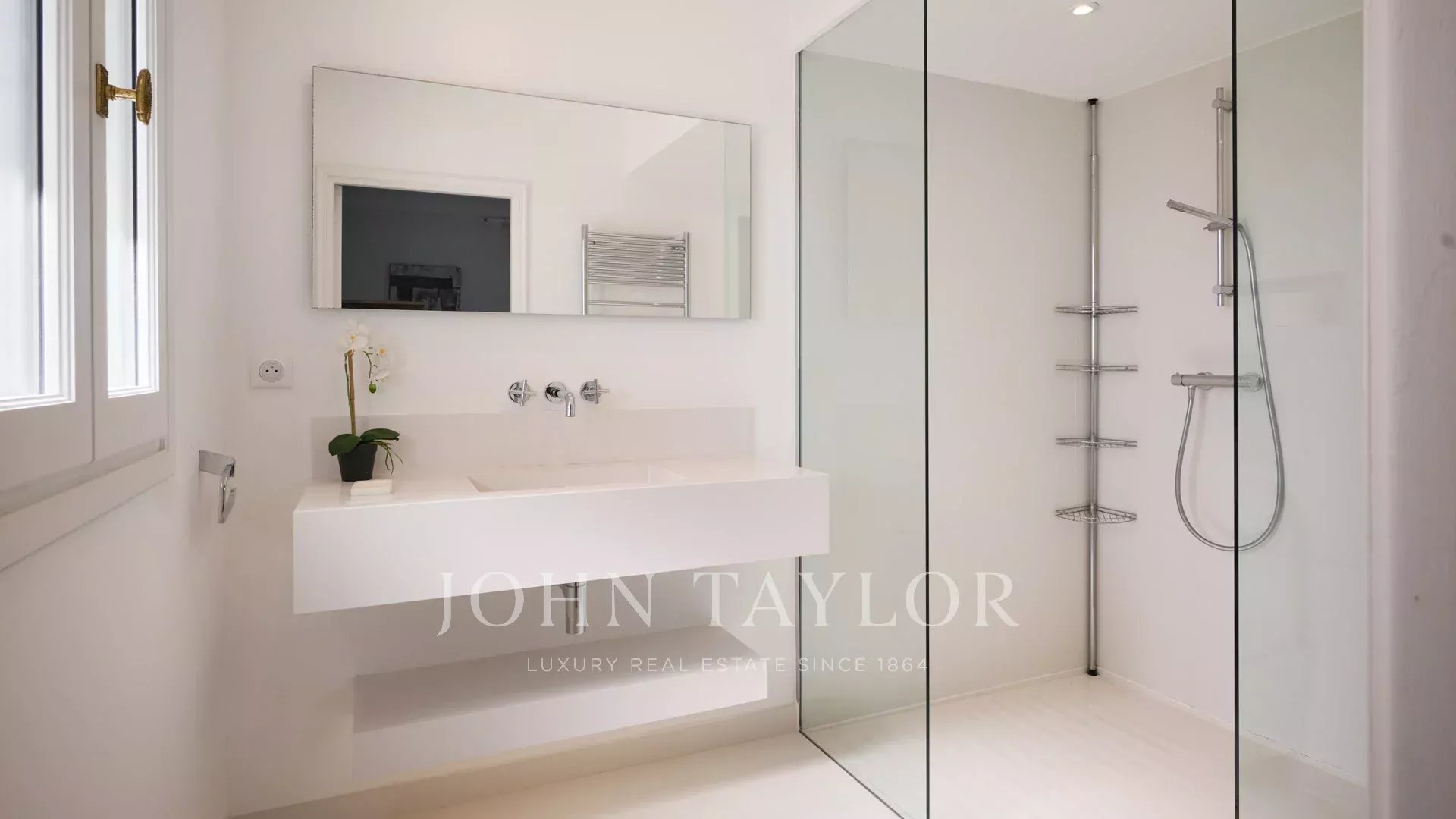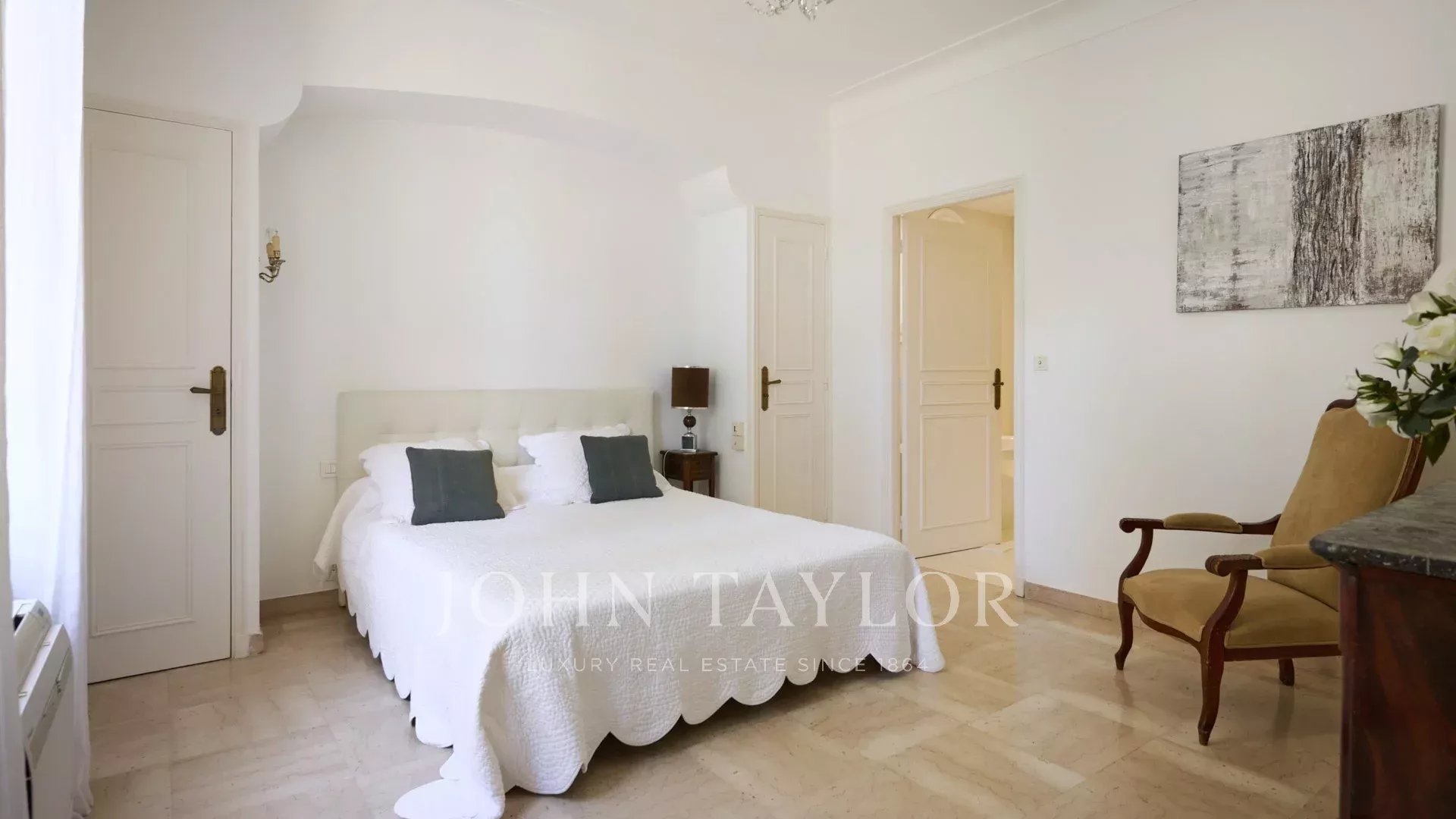 Klimatisiertes Schlafzimmer (Bett 160 cm), Badezimmer, Dusche, Toilette.