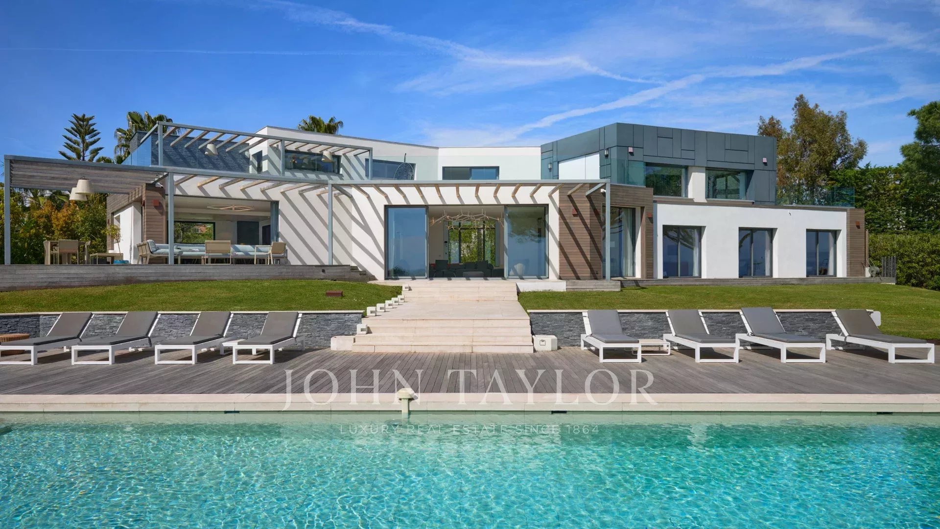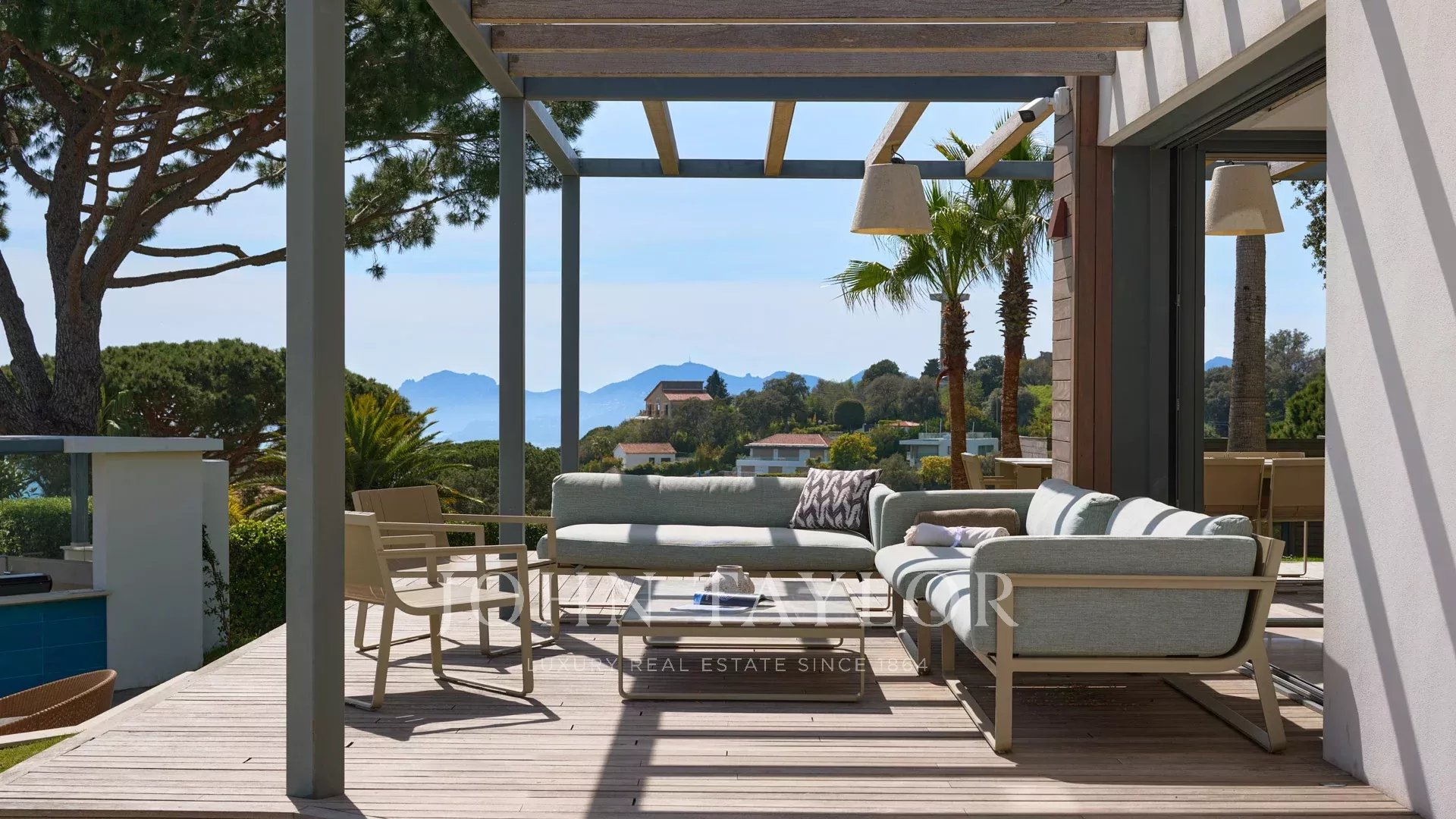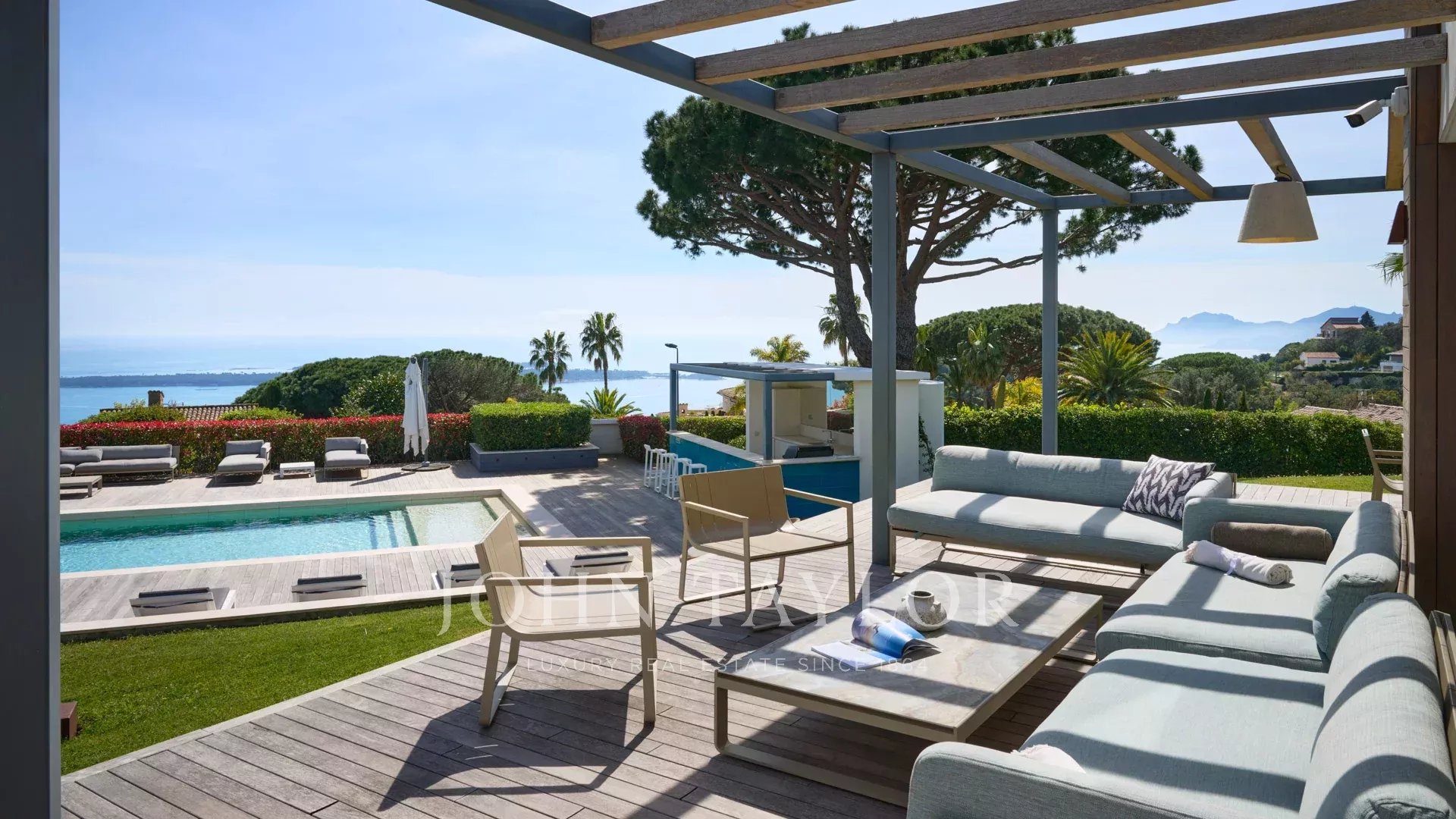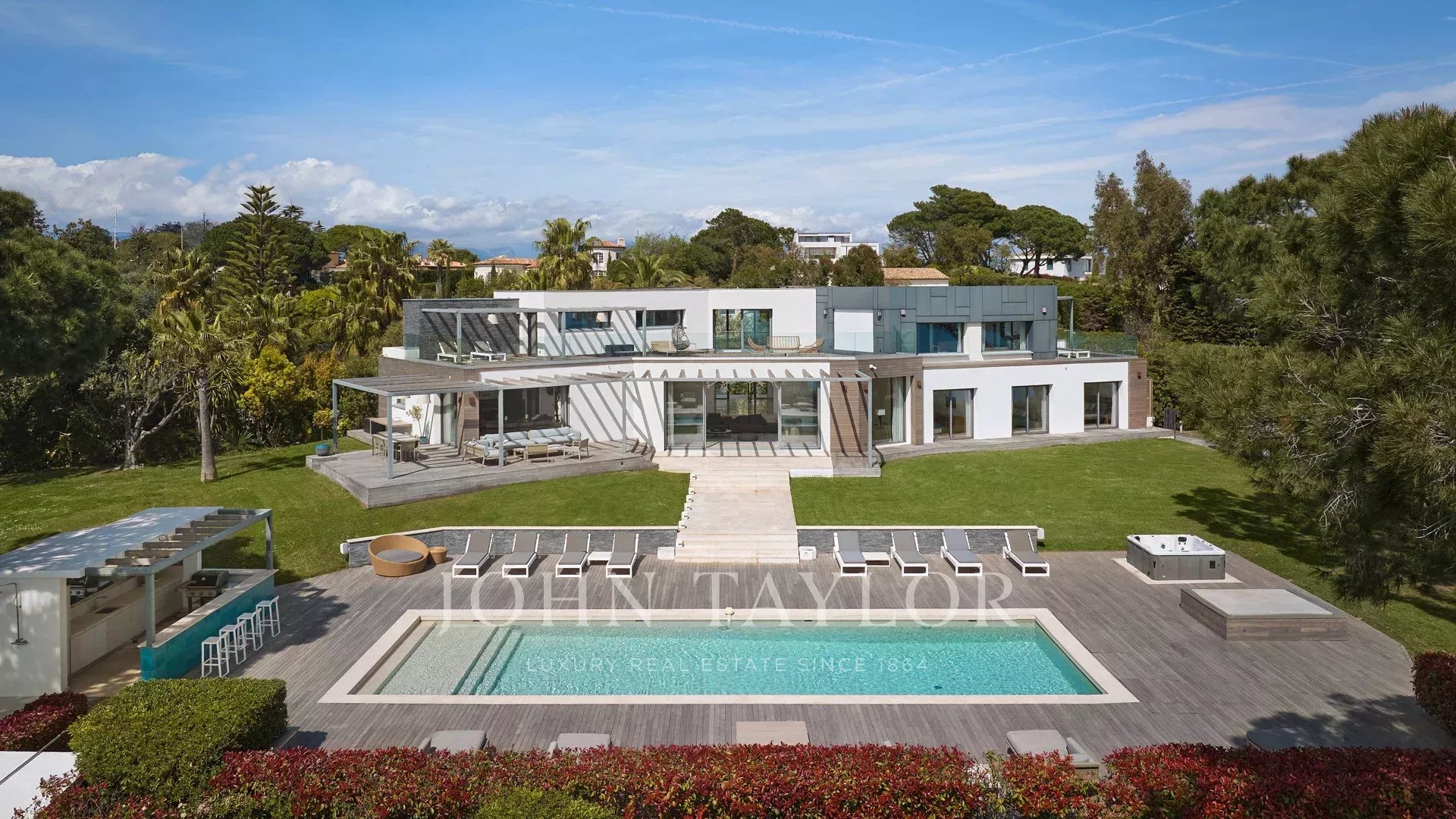 Auf den Anhöhen von Cannes, mit einem einzigartigen Panorama auf die Iles de Lérins, verbindet diese wunderschöne zeitgenössische Villa Holz und Beton inmitten eines ca. 6.200 m2 großen Parks. Die Villa wurde vollständig renoviert und besticht durch ihre großzügigen Räume, ihre hochwertigen Leistungen und ihre drei großen Terrassen.
