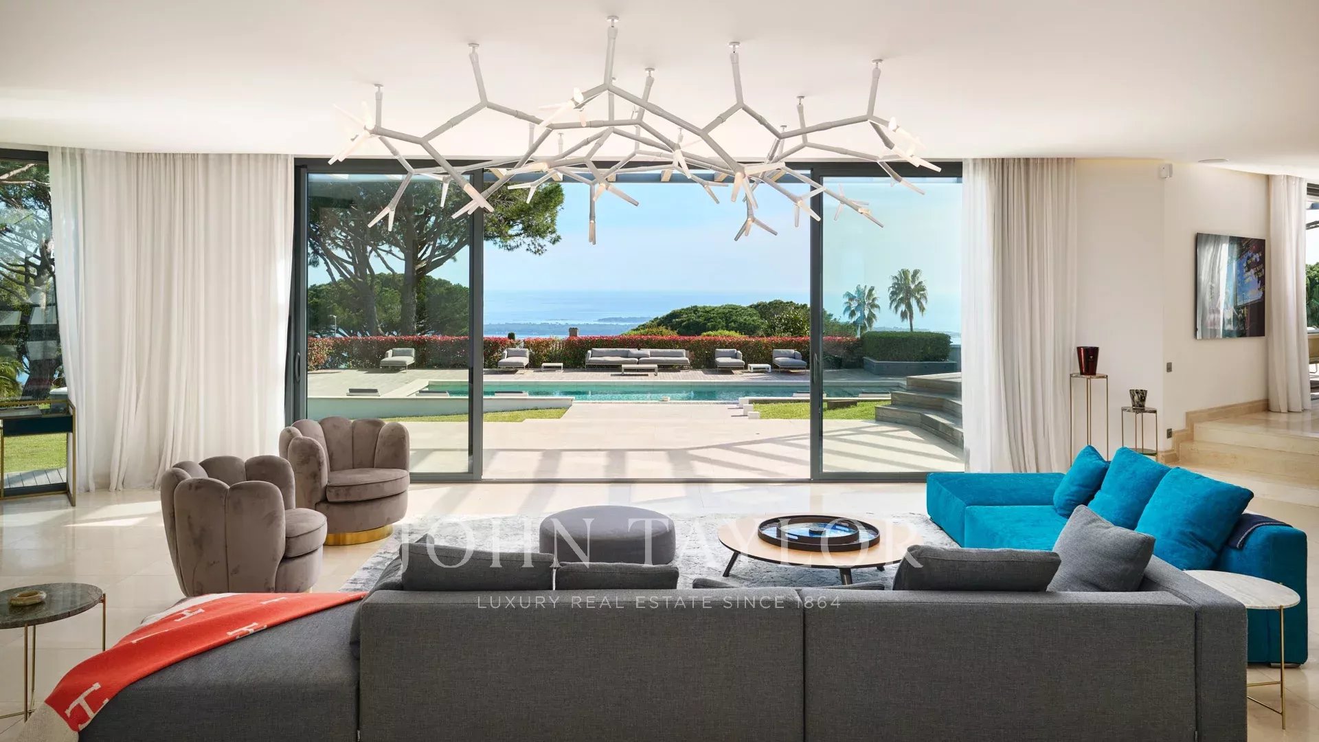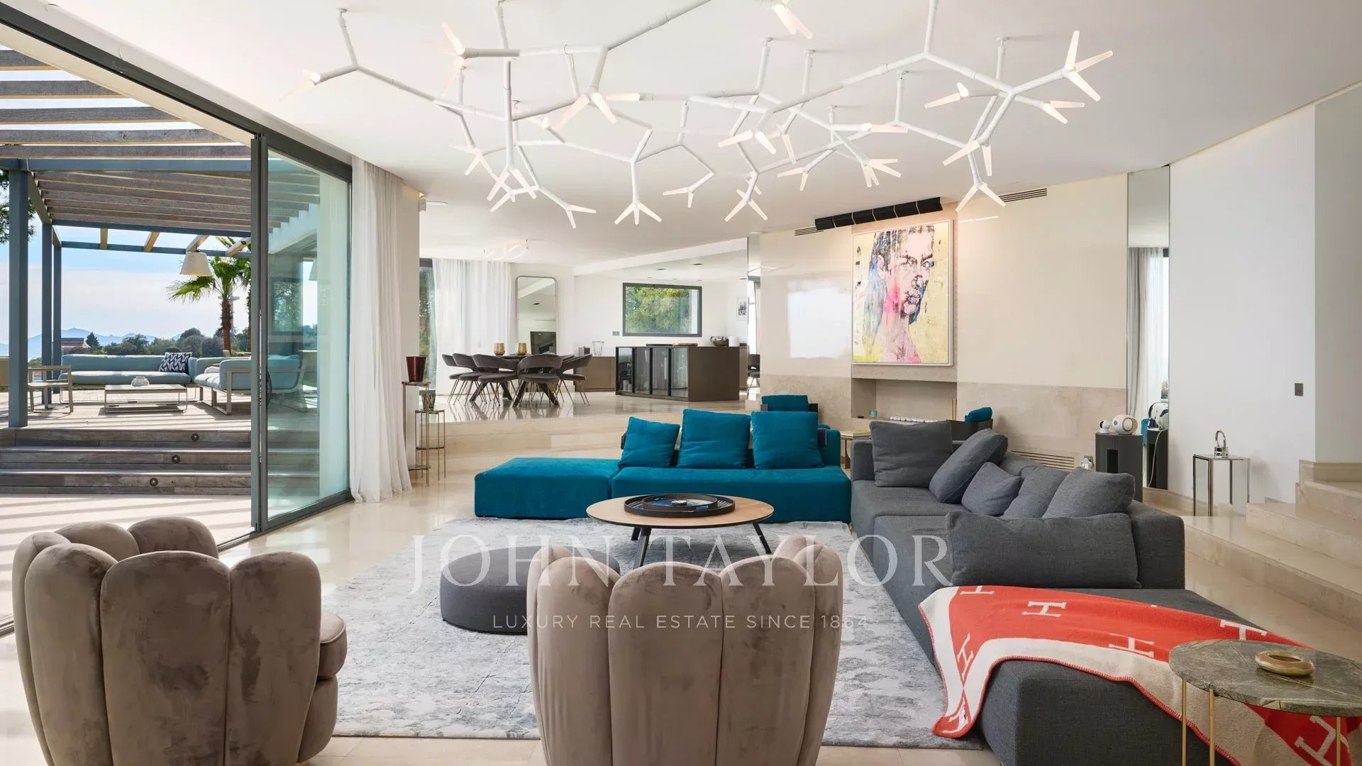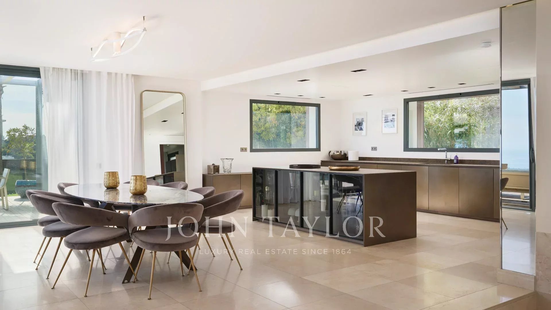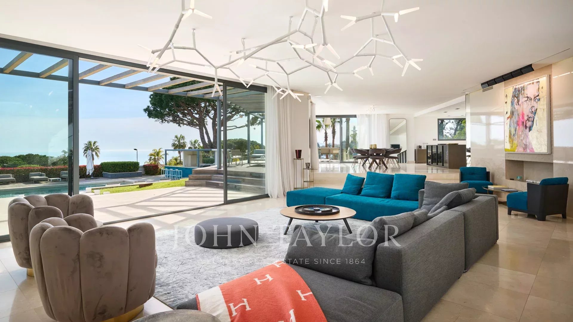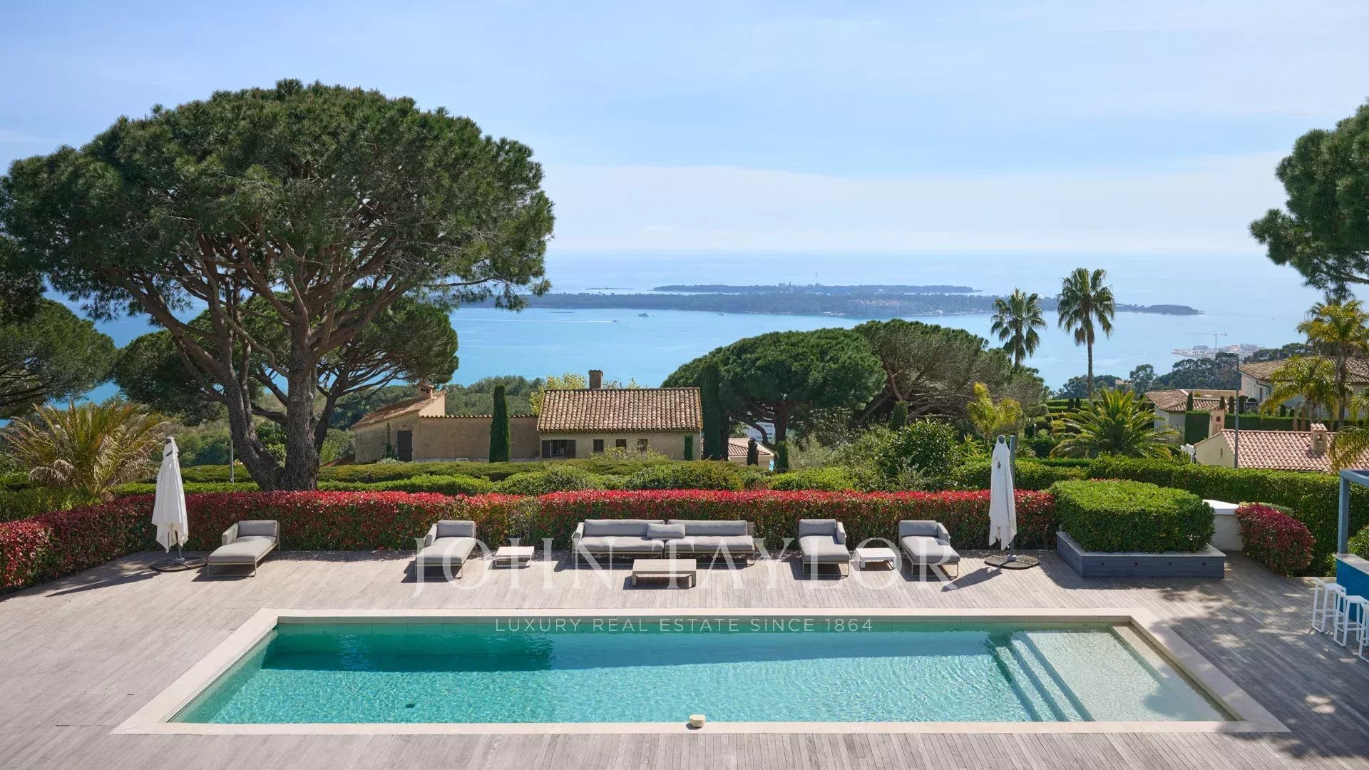 Auf den Anhöhen von Cannes, mit einem einzigartigen Panorama auf die Iles de Lérins, verbindet diese wunderschöne zeitgenössische Villa Holz und Beton inmitten eines ca. 6.200 m2 großen Parks. Die Villa wurde vollständig renoviert und besticht durch ihre großzügigen Räume, ihre hochwertigen Leistungen und ihre drei großen Terrassen.