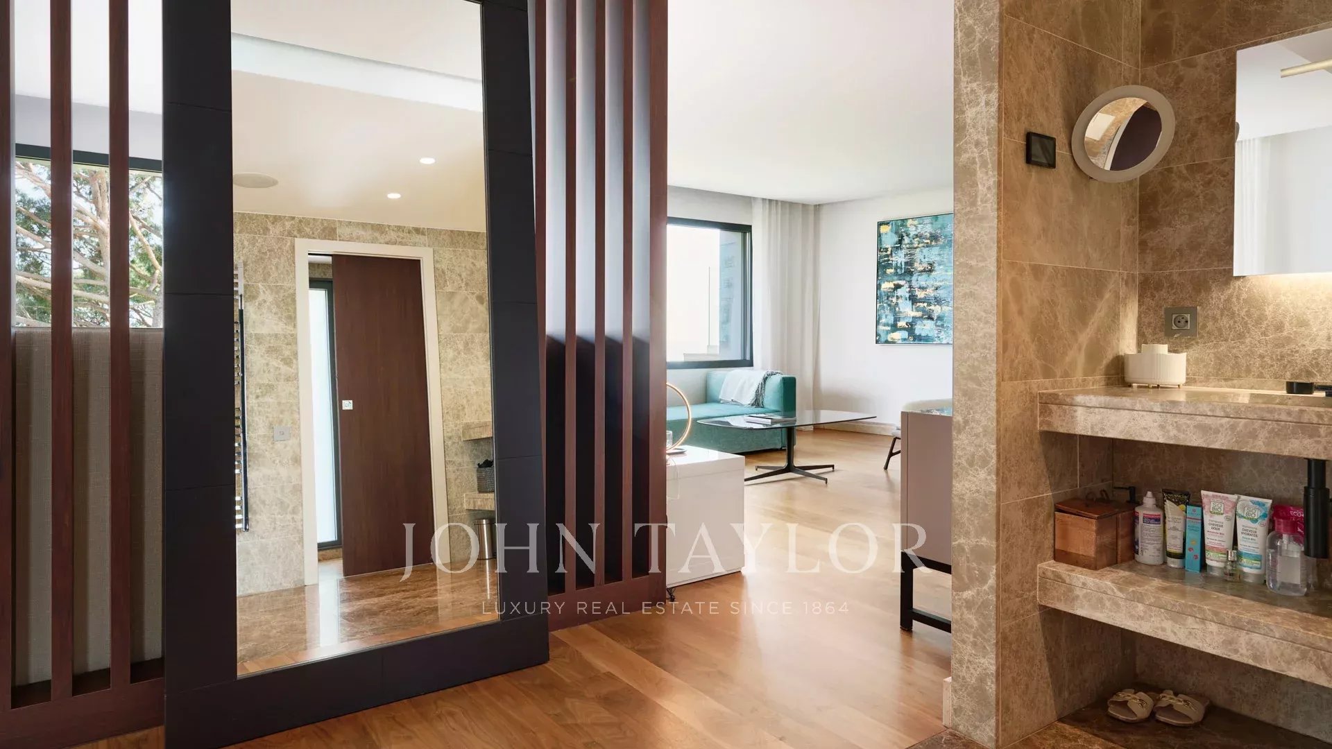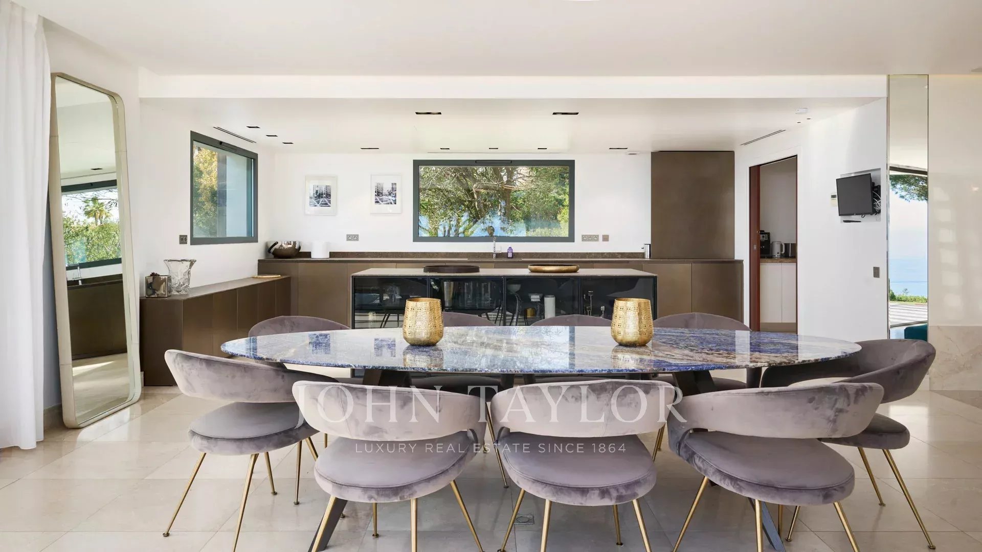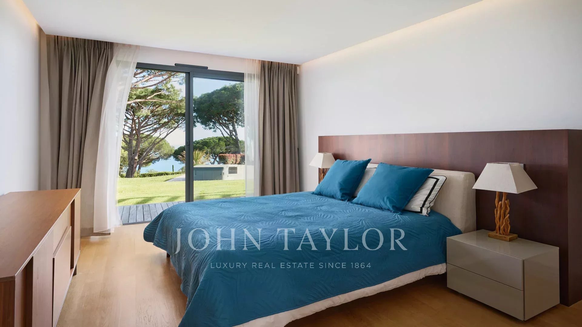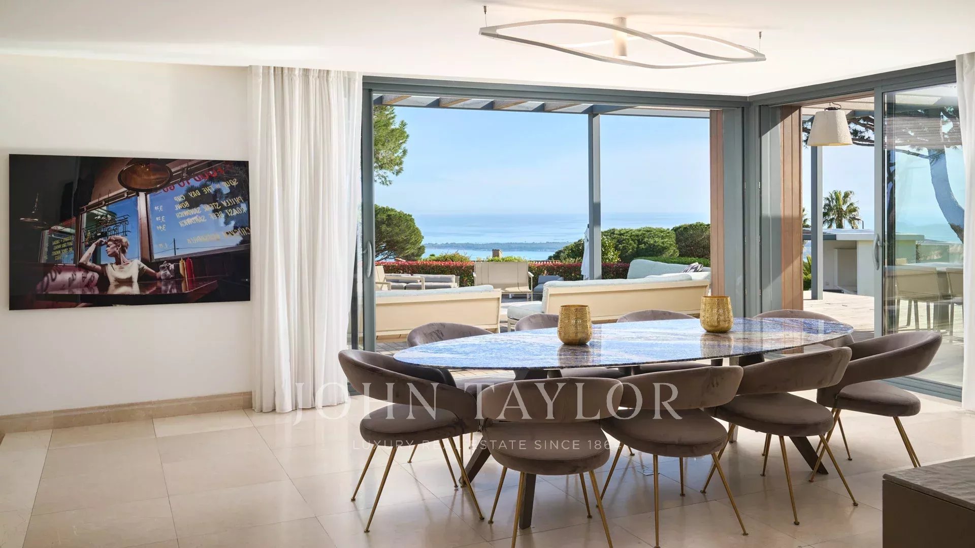 Auf den Anhöhen von Cannes, mit einem einzigartigen Panorama auf die Iles de Lérins, verbindet diese wunderschöne zeitgenössische Villa Holz und Beton inmitten eines ca. 6.200 m2 großen Parks. Die Villa wurde vollständig renoviert und besticht durch ihre großzügigen Räume, ihre hochwertigen Leistungen und ihre drei großen Terrassen.