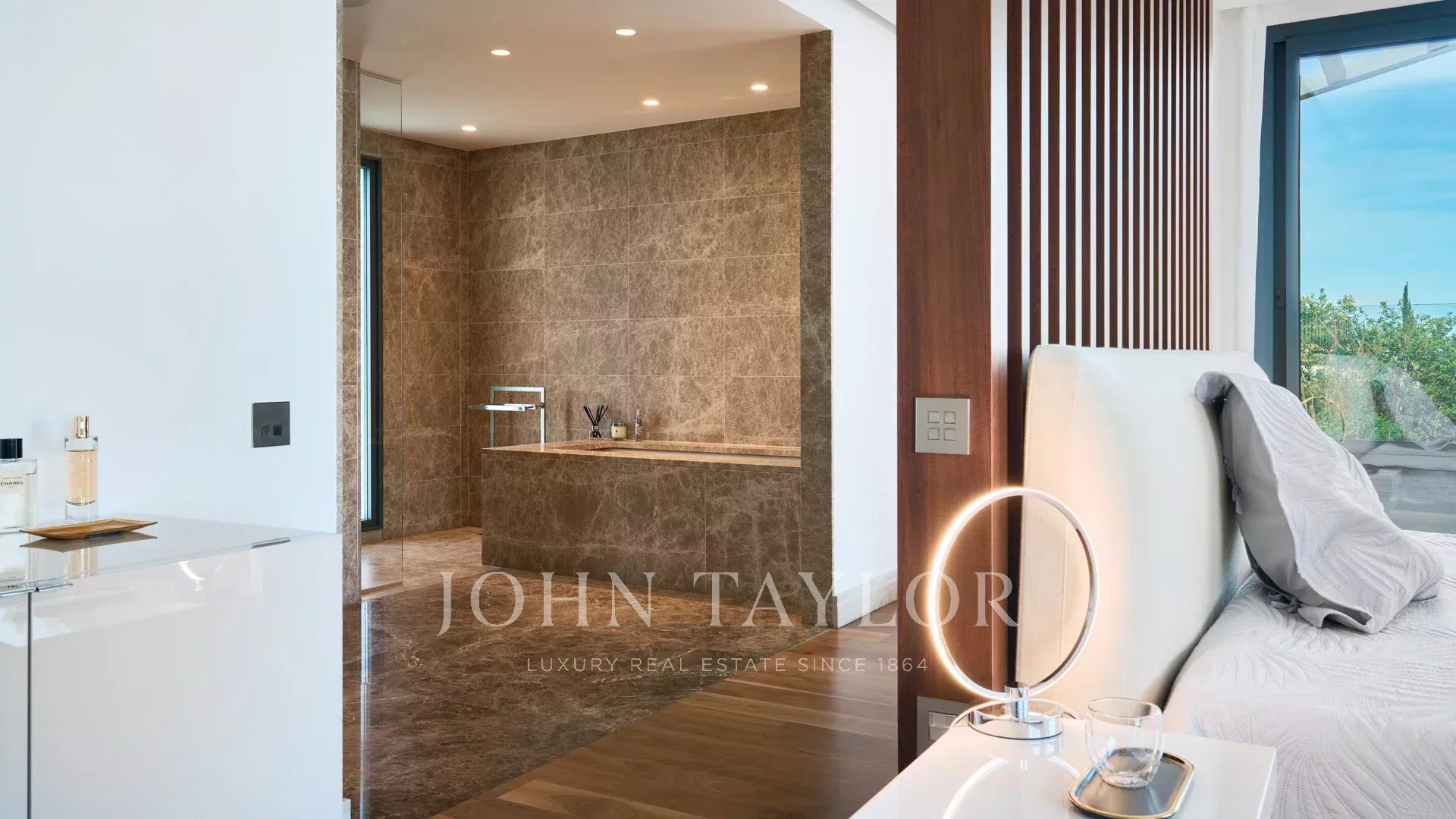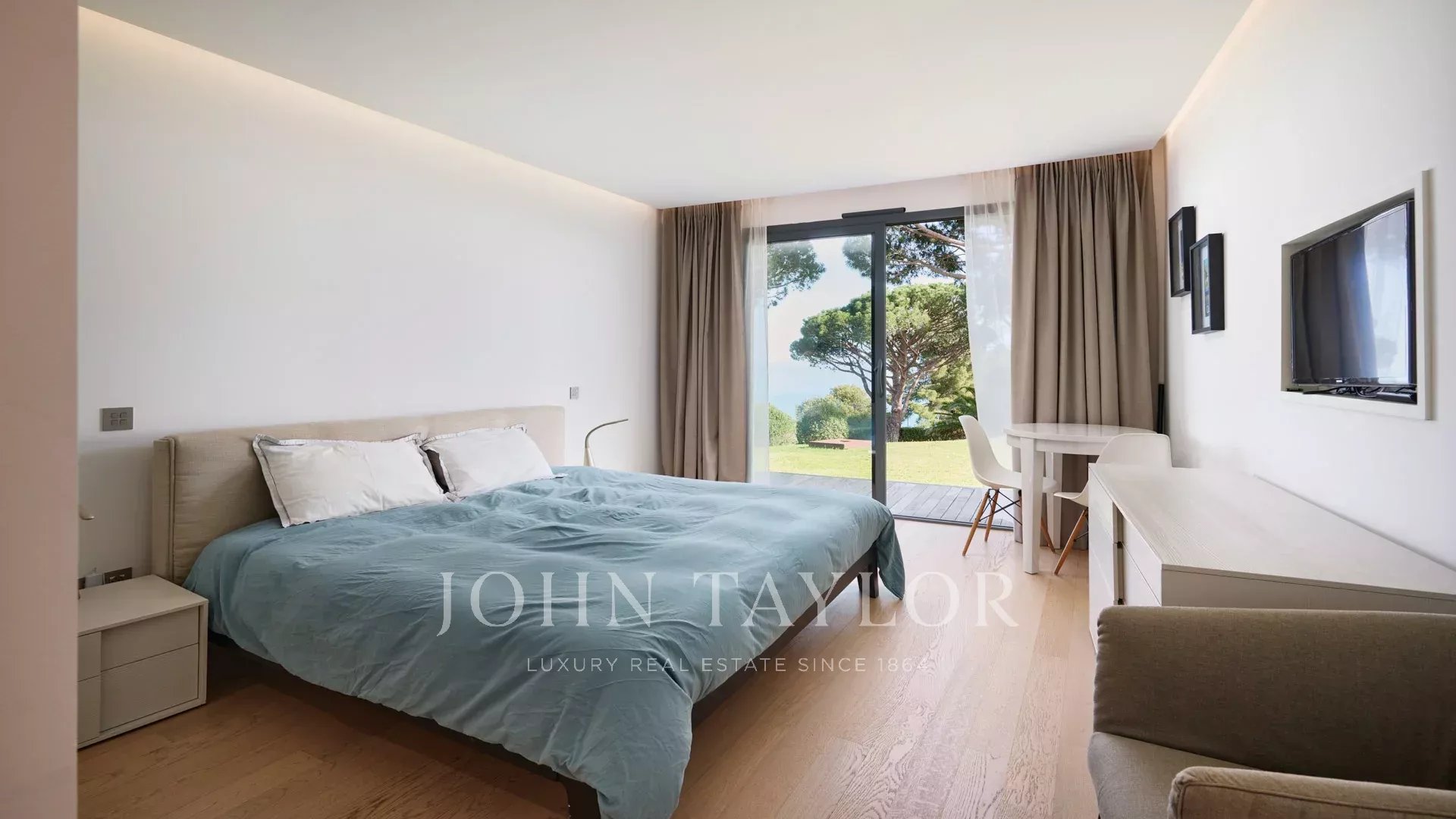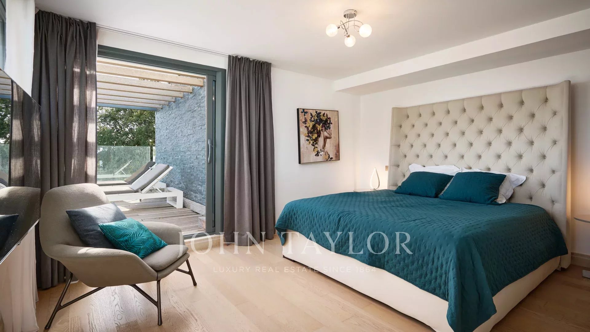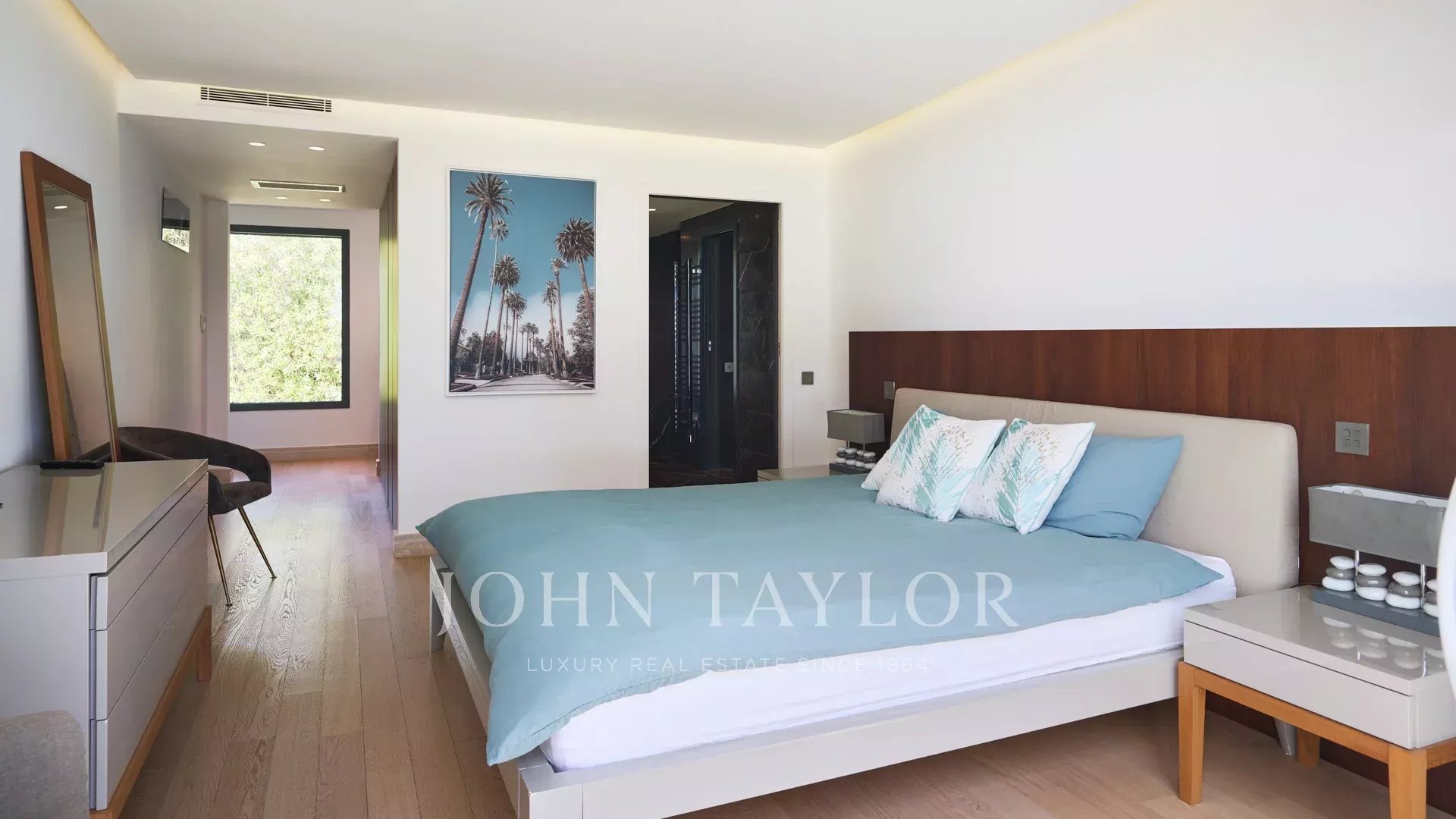 Hauptschlafzimmer mit Ankleide, Zugang zur Terrasse, Badezimmer ensuite.