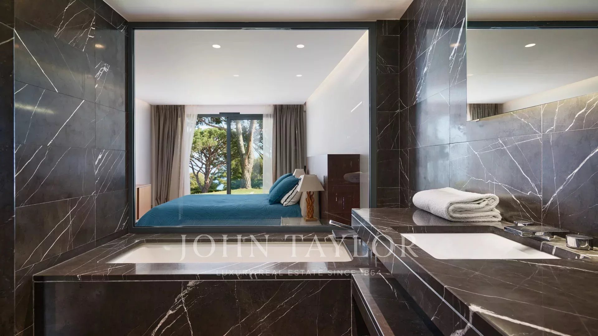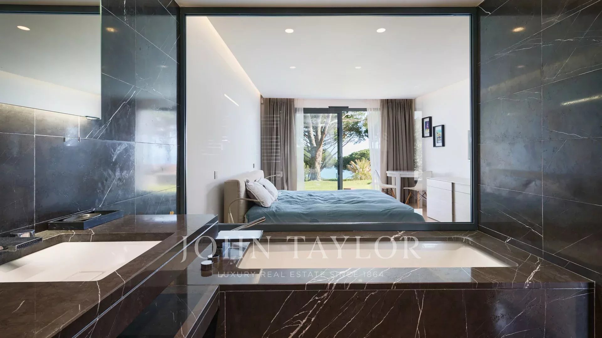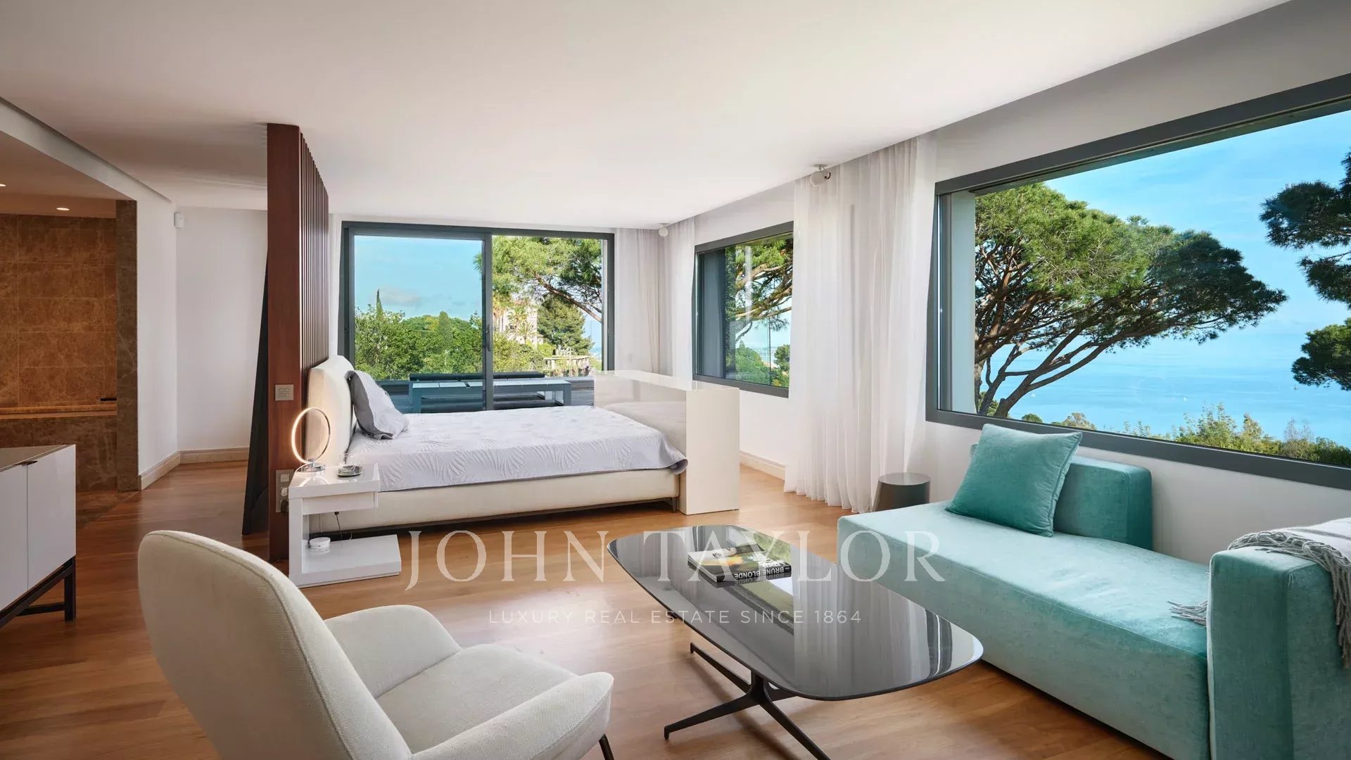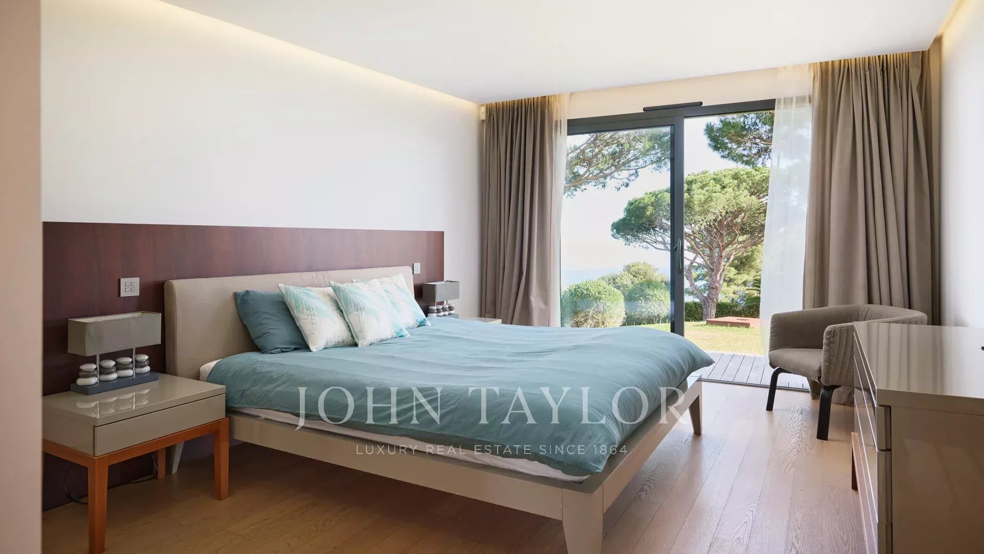 Hauptschlafzimmer mit Ankleide, Zugang zur Terrasse, Badezimmer ensuite.