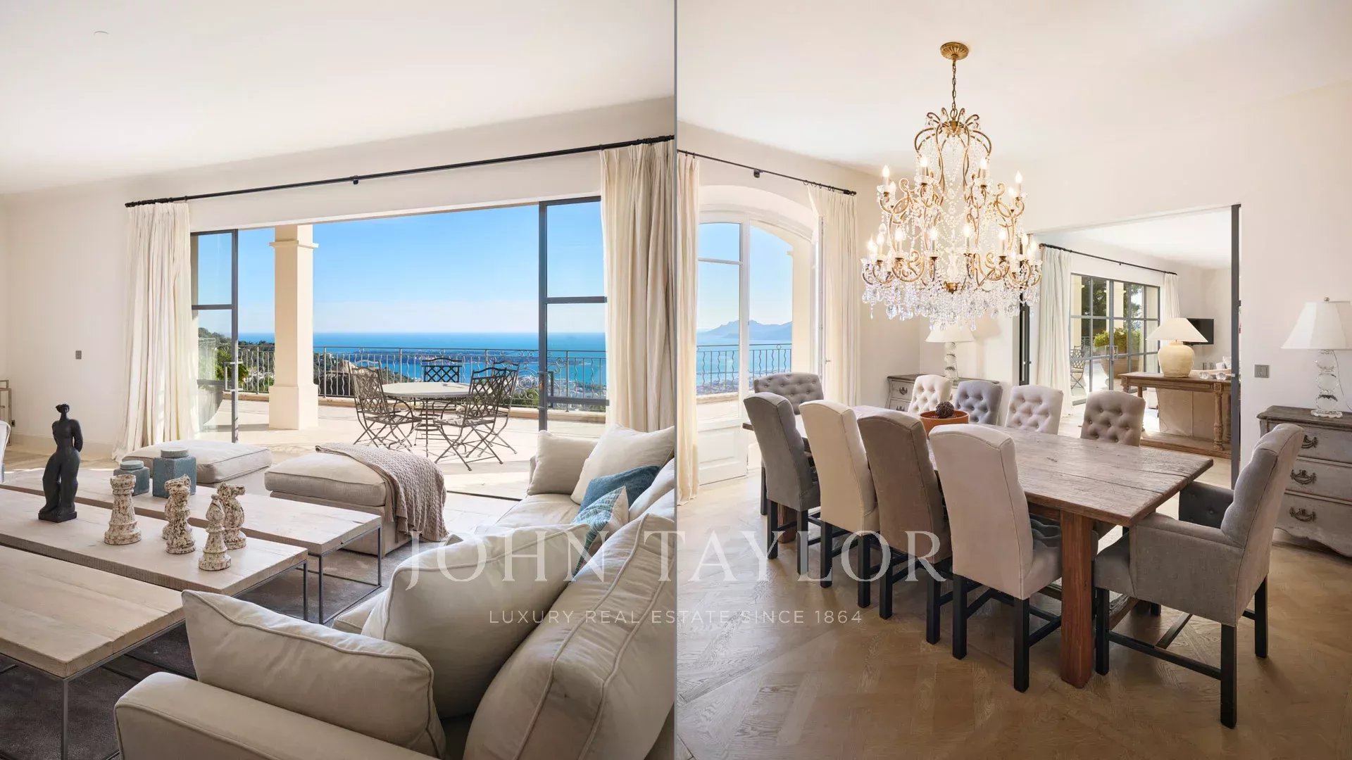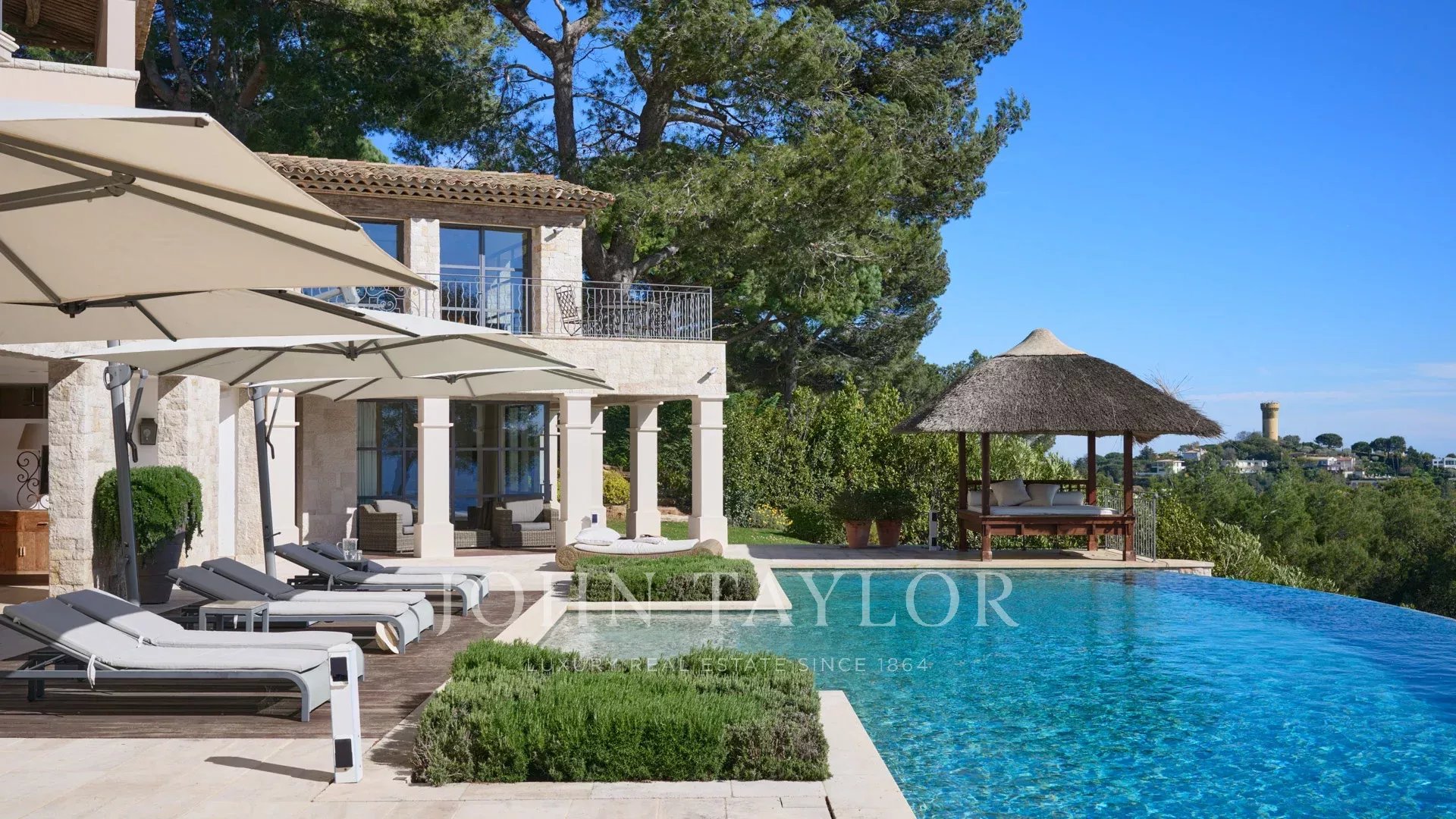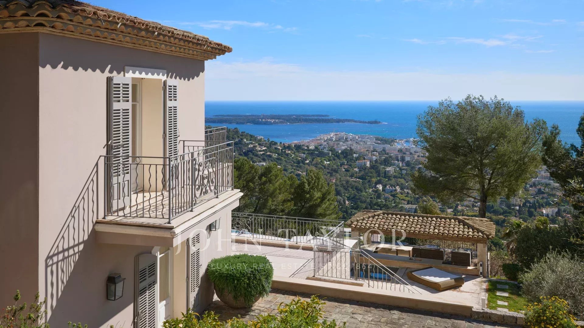 Auf den Anhöhen von Cannes, mit einem Panorama-Meerblick über die gesamte Bucht von Cannes, liegt diese wunderschöne Villa, die komplett in einem zeitgenössischen Stil renoviert wurde, inmitten eines Parks von ca. 7.700 m2. Die 500 m2 große, voll klimatisierte Villa besticht durch ihre großzügigen Räume, ihre hochwertigen Ausstattungen und ihre schönen Terrassen.