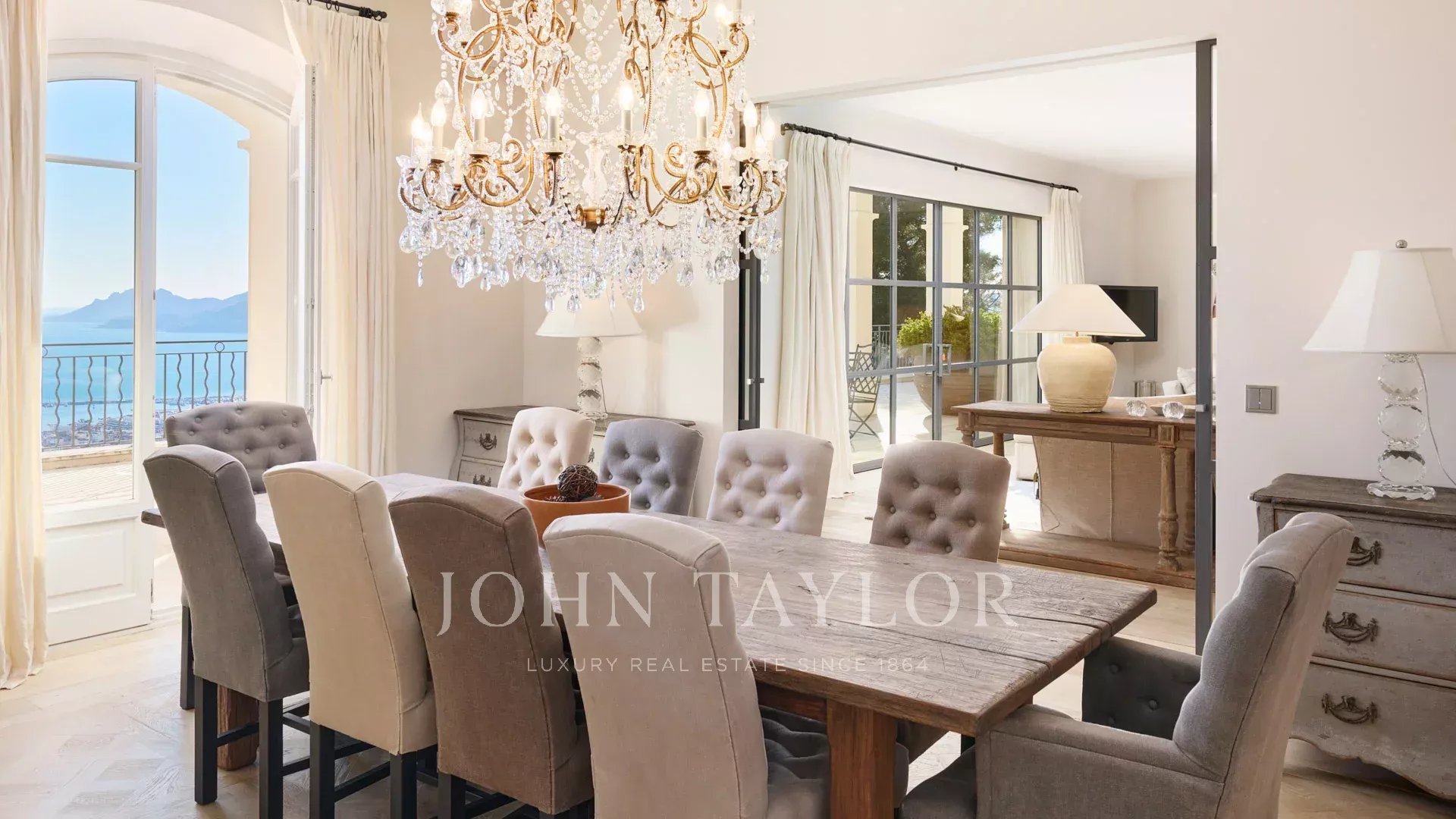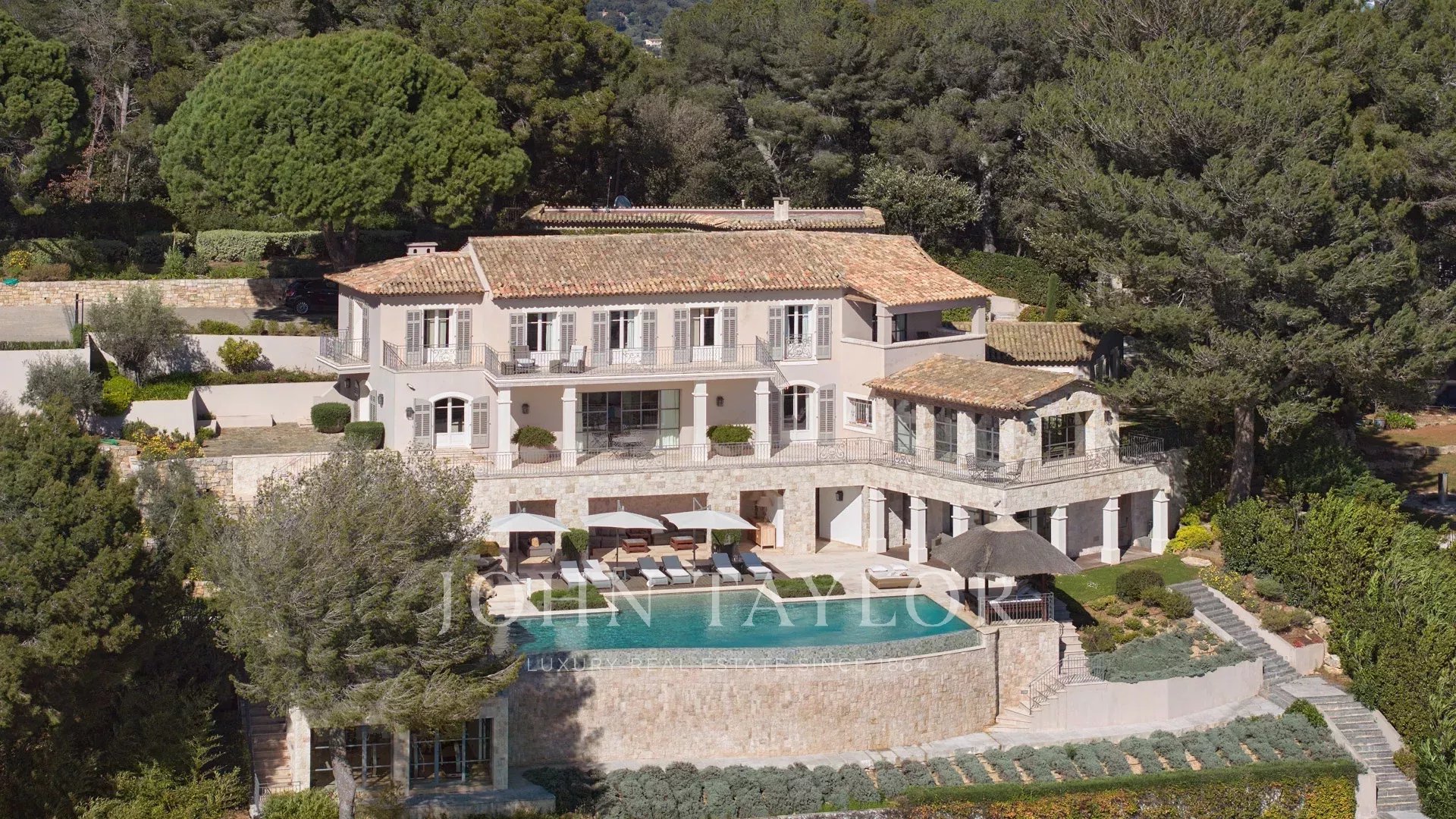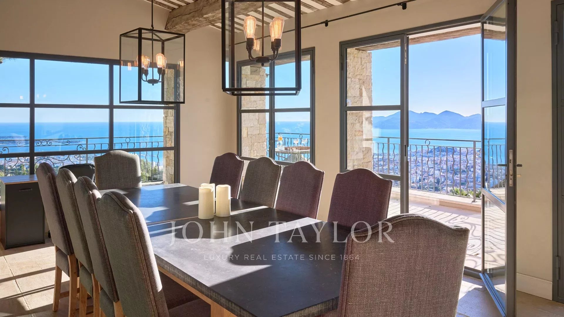 Auf den Anhöhen von Cannes, mit einem Panorama-Meerblick über die gesamte Bucht von Cannes, liegt diese wunderschöne Villa, die komplett in einem zeitgenössischen Stil renoviert wurde, inmitten eines Parks von ca. 7.700 m2. Die 500 m2 große, voll klimatisierte Villa besticht durch ihre großzügigen Räume, ihre hochwertigen Ausstattungen und ihre schönen Terrassen.