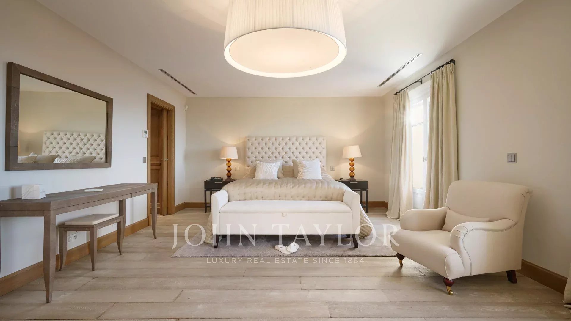 Mastersuite mit Schlafzimmer (Kingsize-Bett - TV) mit Zugang zur Terrasse, Meerblick - Ankleidezimmer - Badezimmer / Dusche / WC.