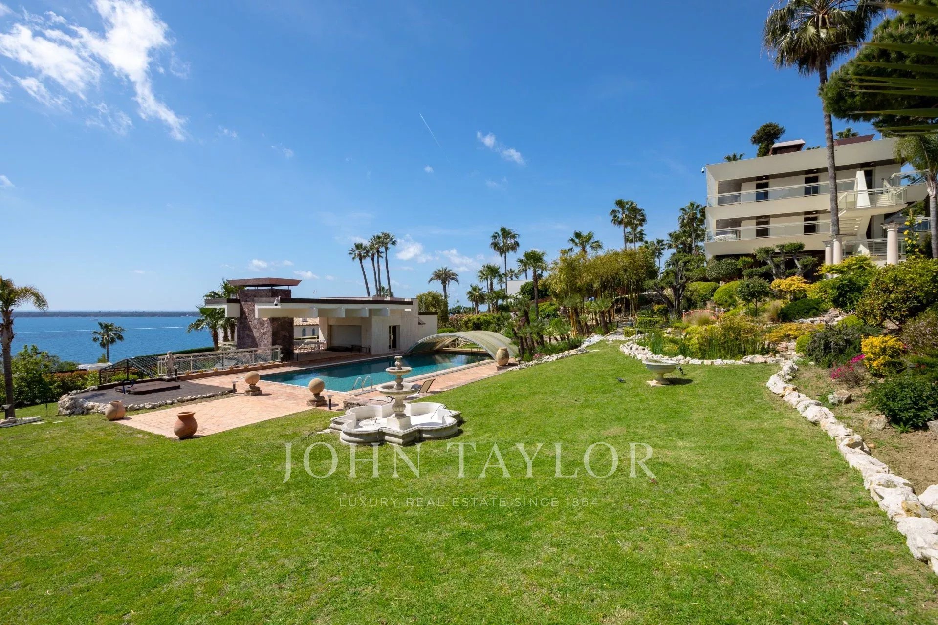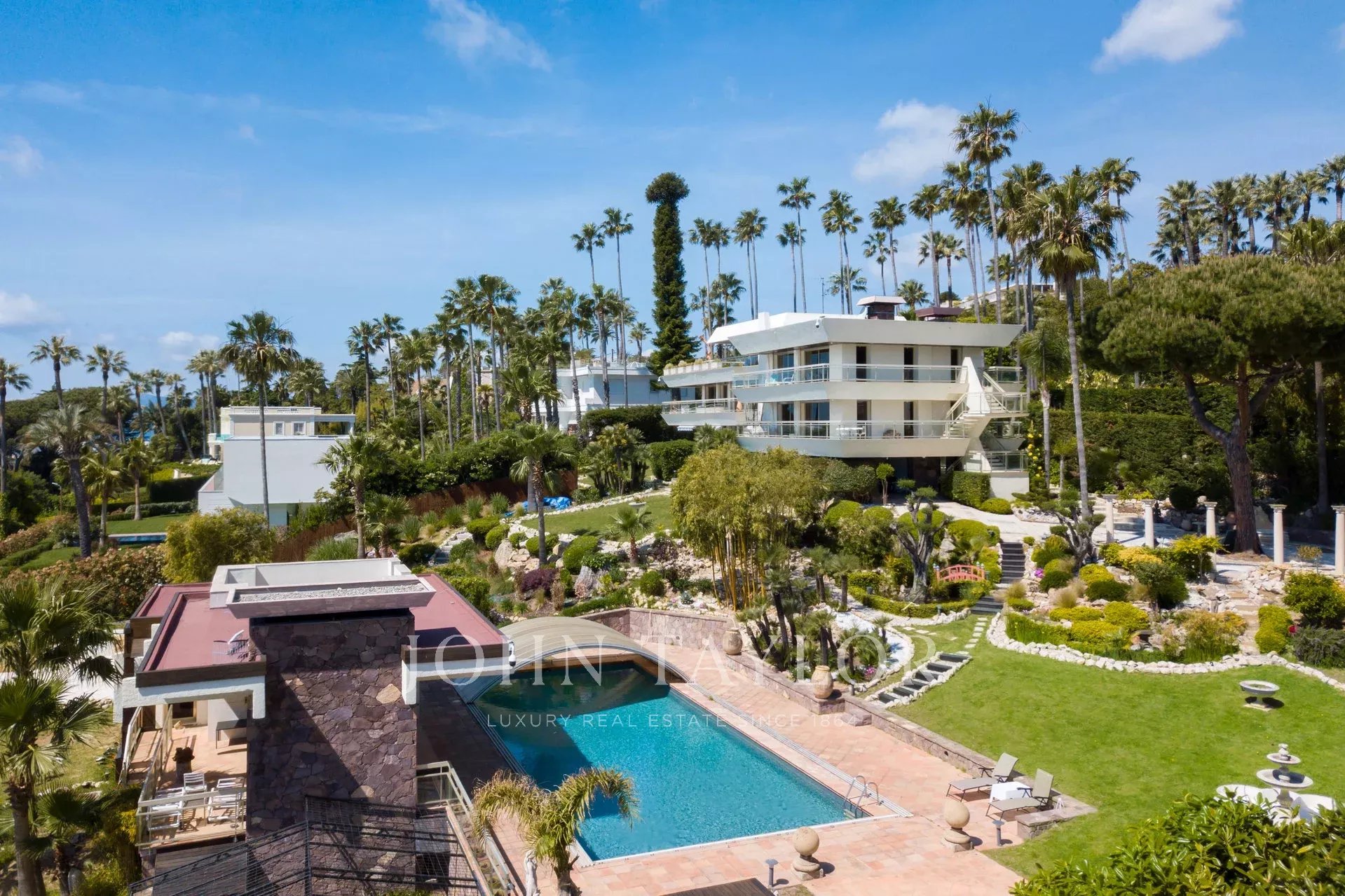 In einem gesicherten Bereich, große Villa von 700 m2 auf einem Grundstück von ca. 3000 m2 mit Panoramablick auf das Meer und die Iles de Lérins.