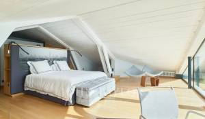 Schlafzimmer (Kingsize-Bett oder zwei Einzelbetten), herrlicher Blick auf die Bucht von Cannes und die Iles de Lérins - Duschraum / WC.