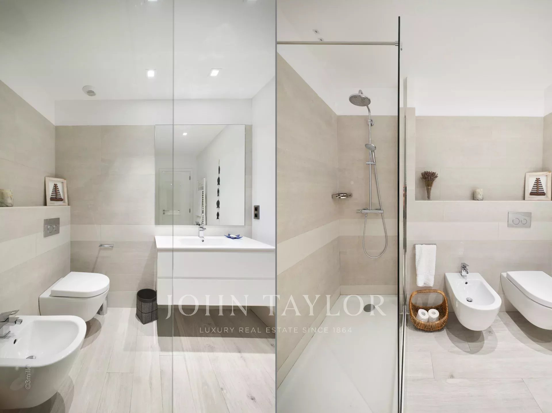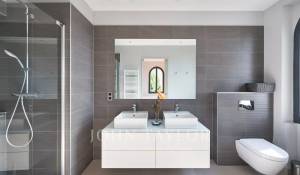 Eingangshalle, die zum Empfangsraum führt, der Wohn- und Esszimmer bietet, das Ganze öffnet sich zu einer großen, ausgestatteten Terrasse mit Sommerwohn- und Esszimmer.