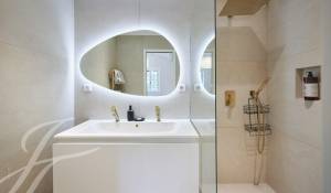 Hauptschlafzimmer (Doppelbett kann getrennt werden) mit Zugang zur privaten Terrasse mit Meerblick - Separate Dusche/WC.