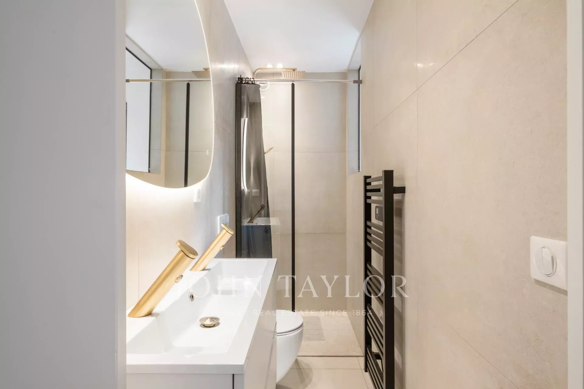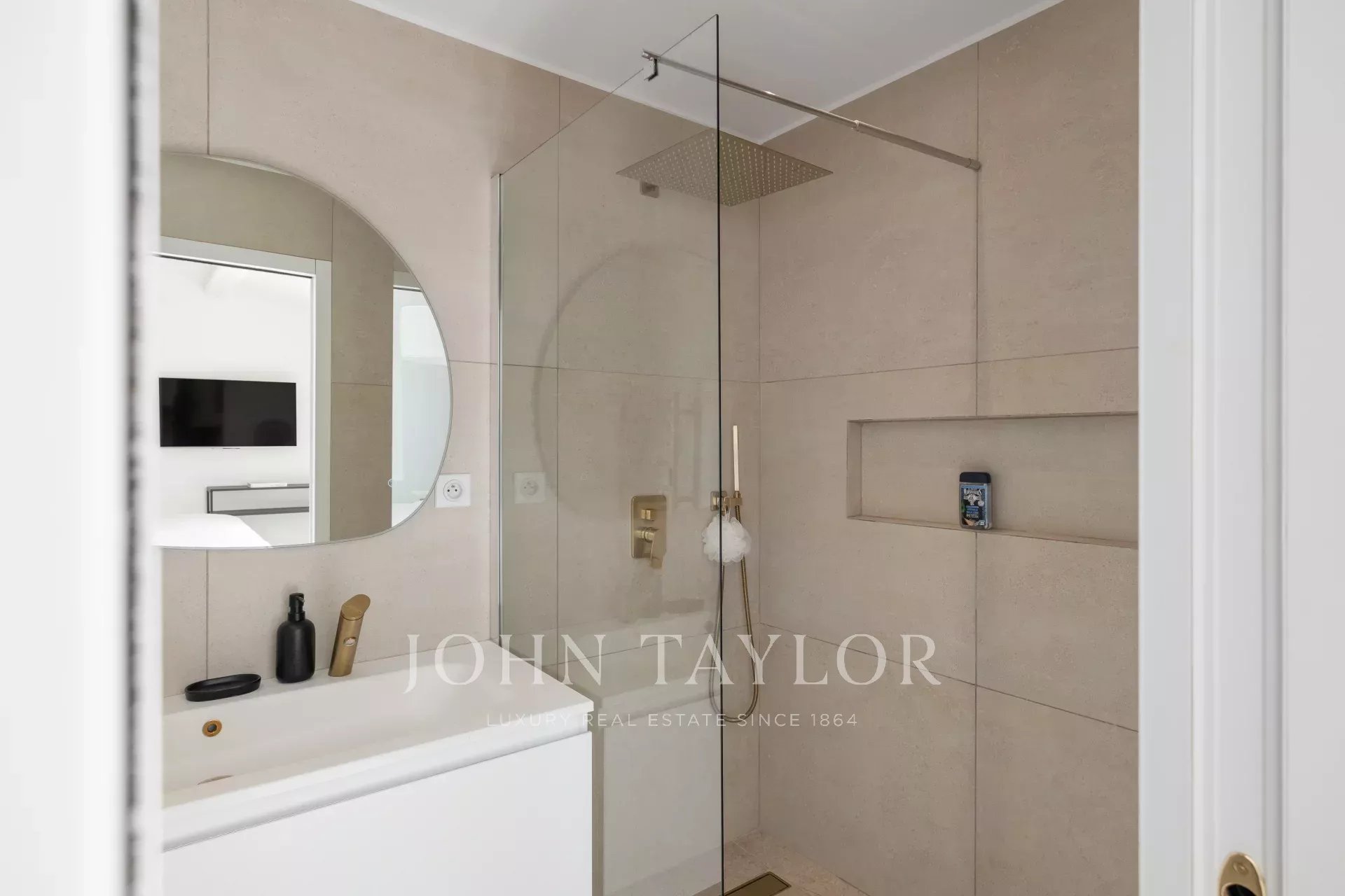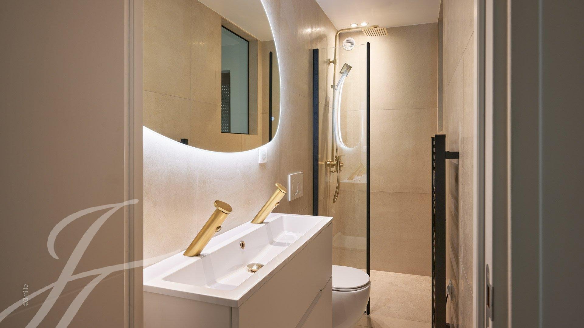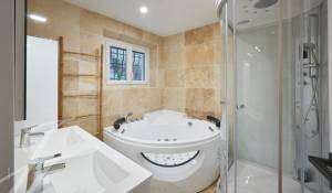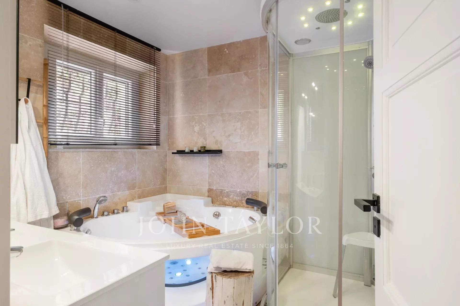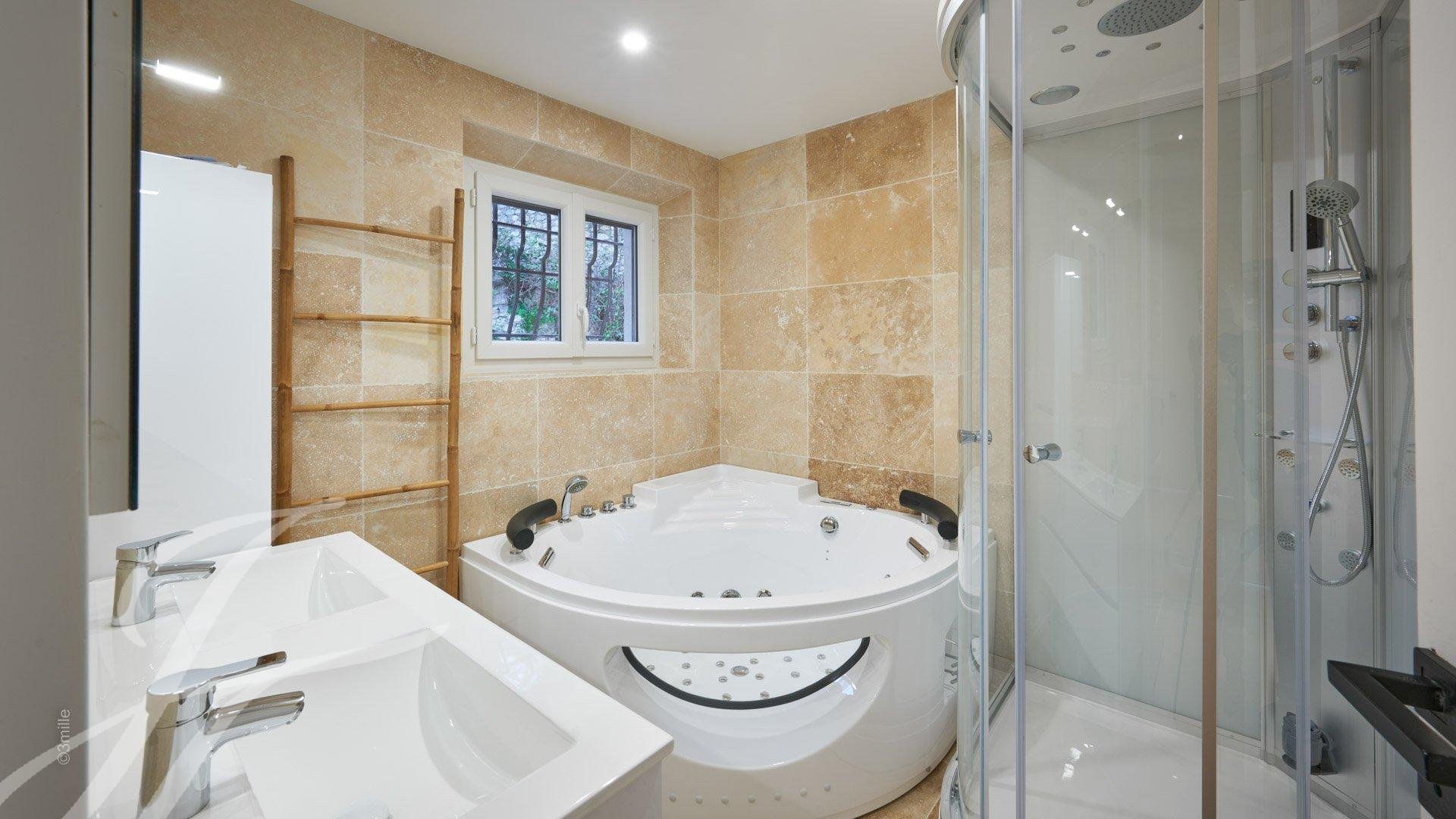 Ein Badezimmer mit Jacuzzi-Badewanne, Hammam-Duschen.