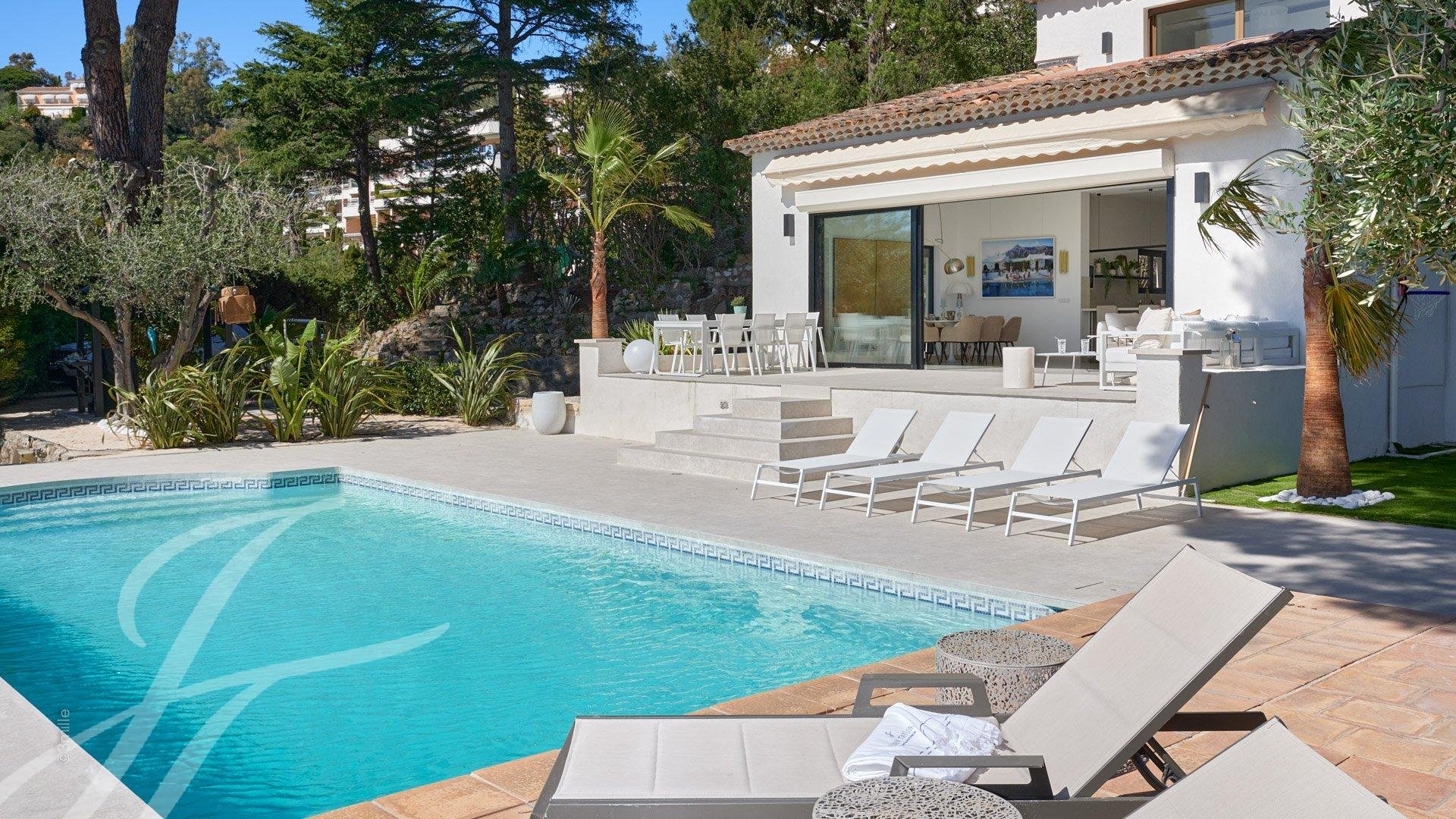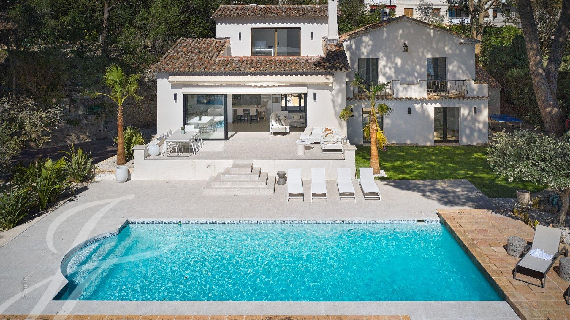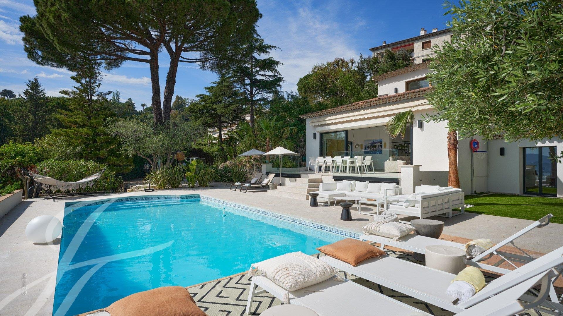 Viertel "Croix des Gardes", Südwestausrichtung, schöne neo-provenzalische Villa, komplett renoviert und klimatisiert, genießt einen herrlichen Panoramablick auf das Meer und das Esterel-Massiv.