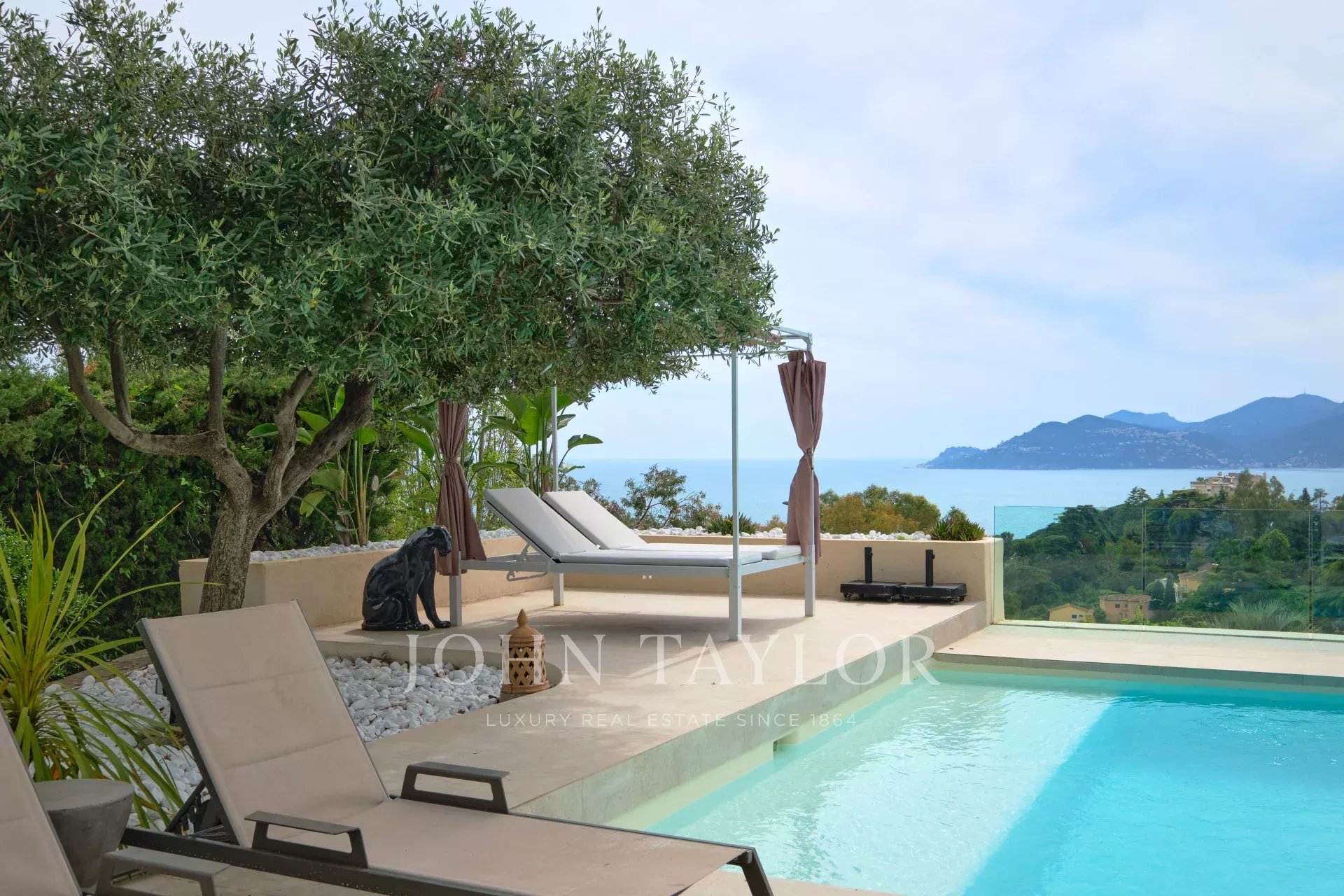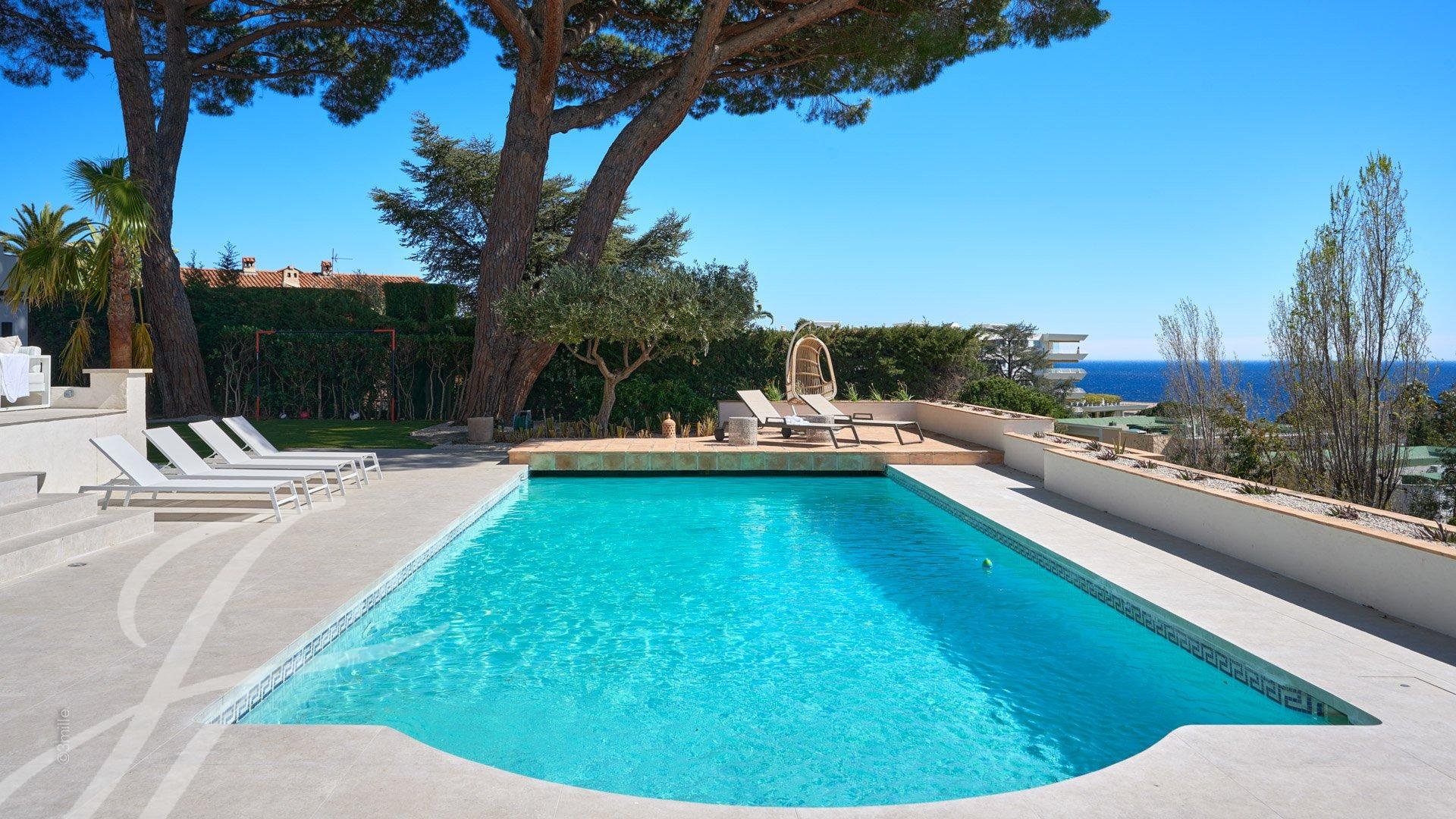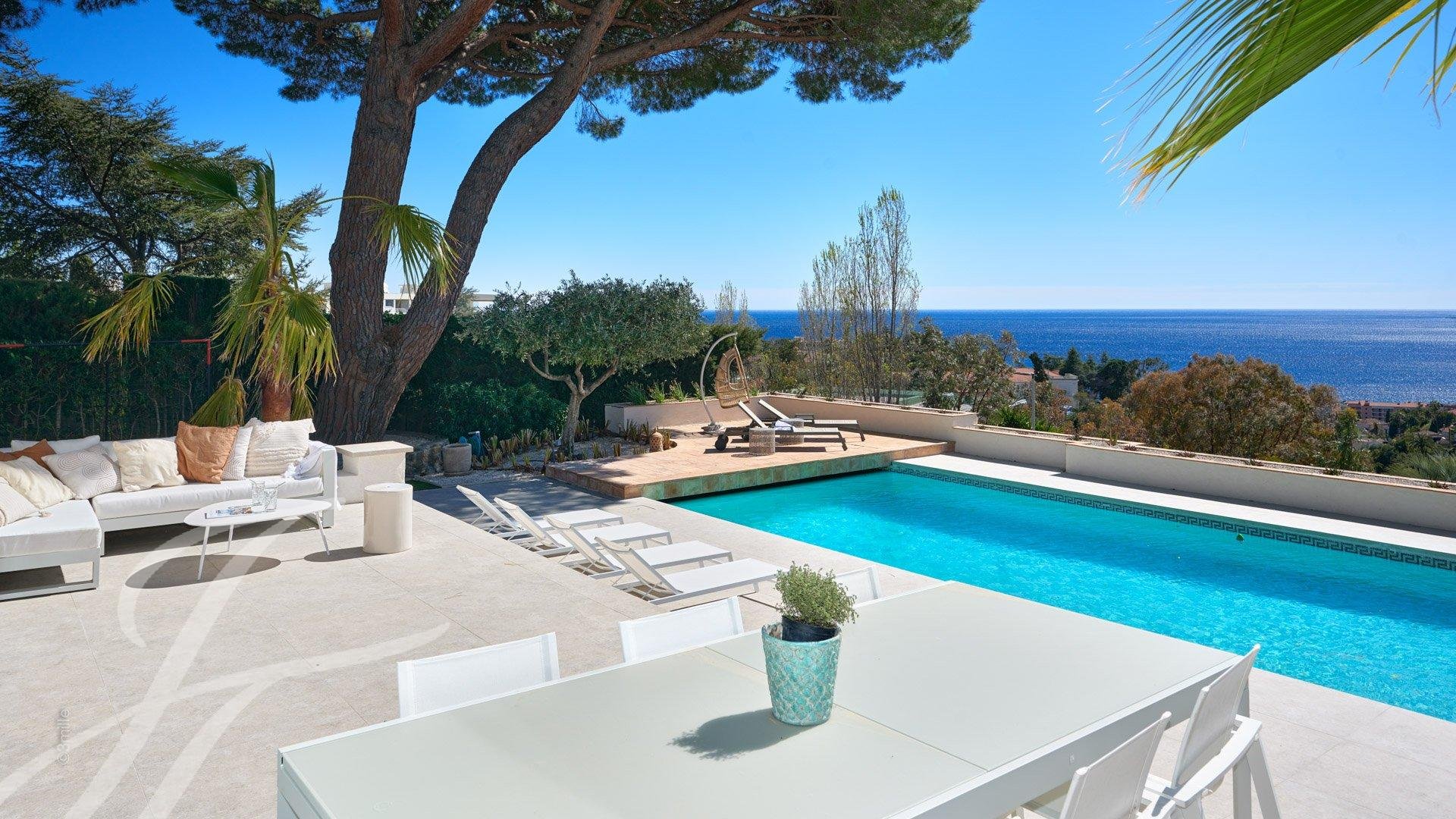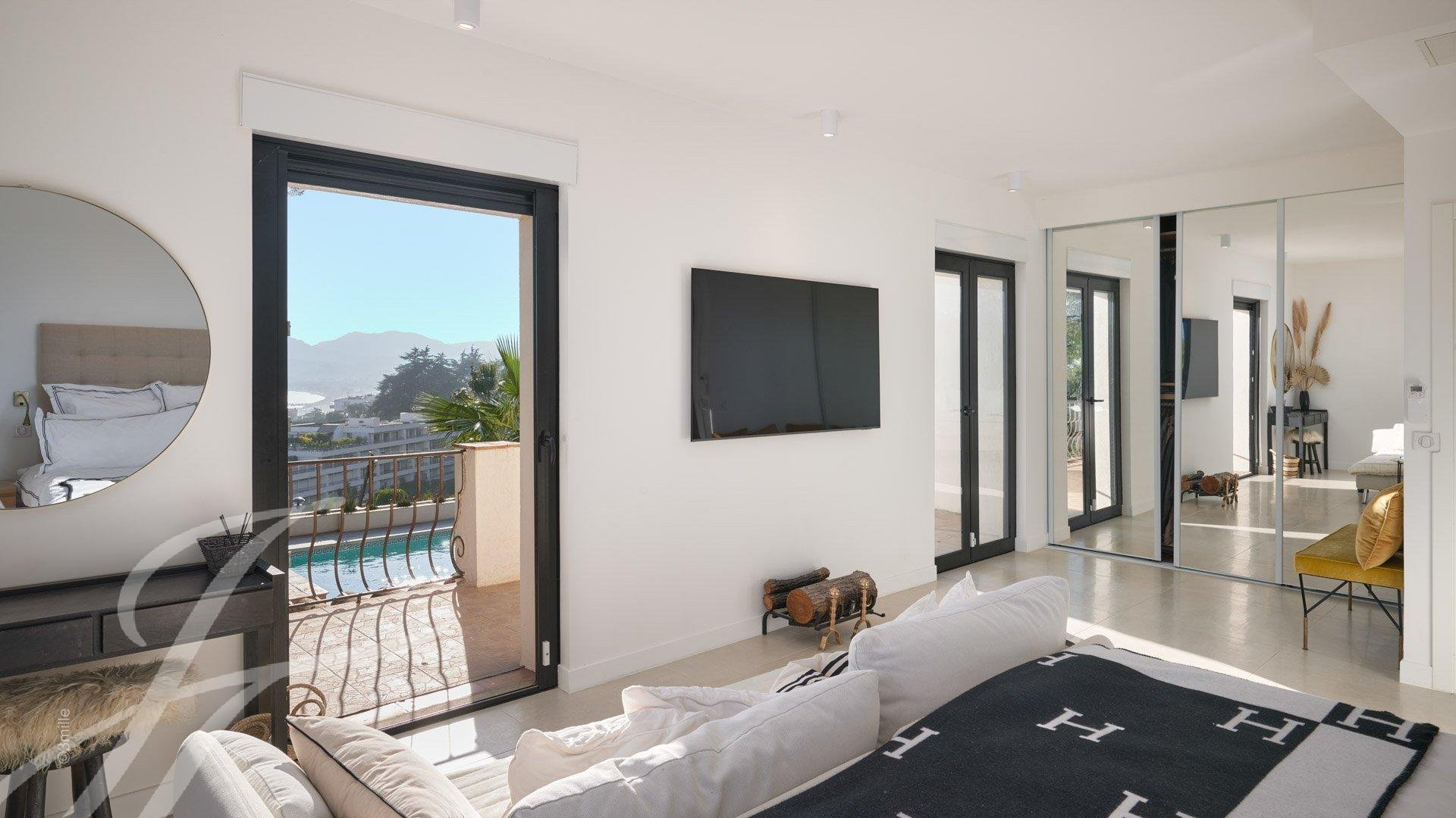 Viertel "Croix des Gardes", Südwestausrichtung, schöne neo-provenzalische Villa, komplett renoviert und klimatisiert, genießt einen herrlichen Panoramablick auf das Meer und das Esterel-Massiv.