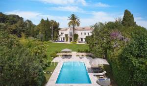 Inmitten eines ca. 2100 m2 großen Gartens liegt diese wunderschöne Villa mit 378 m2 Wohnfläche, die nach Südwesten ausgerichtet ist und einen Meerblick auf die Bucht von Cannes und das Esterel-Massiv genießt.