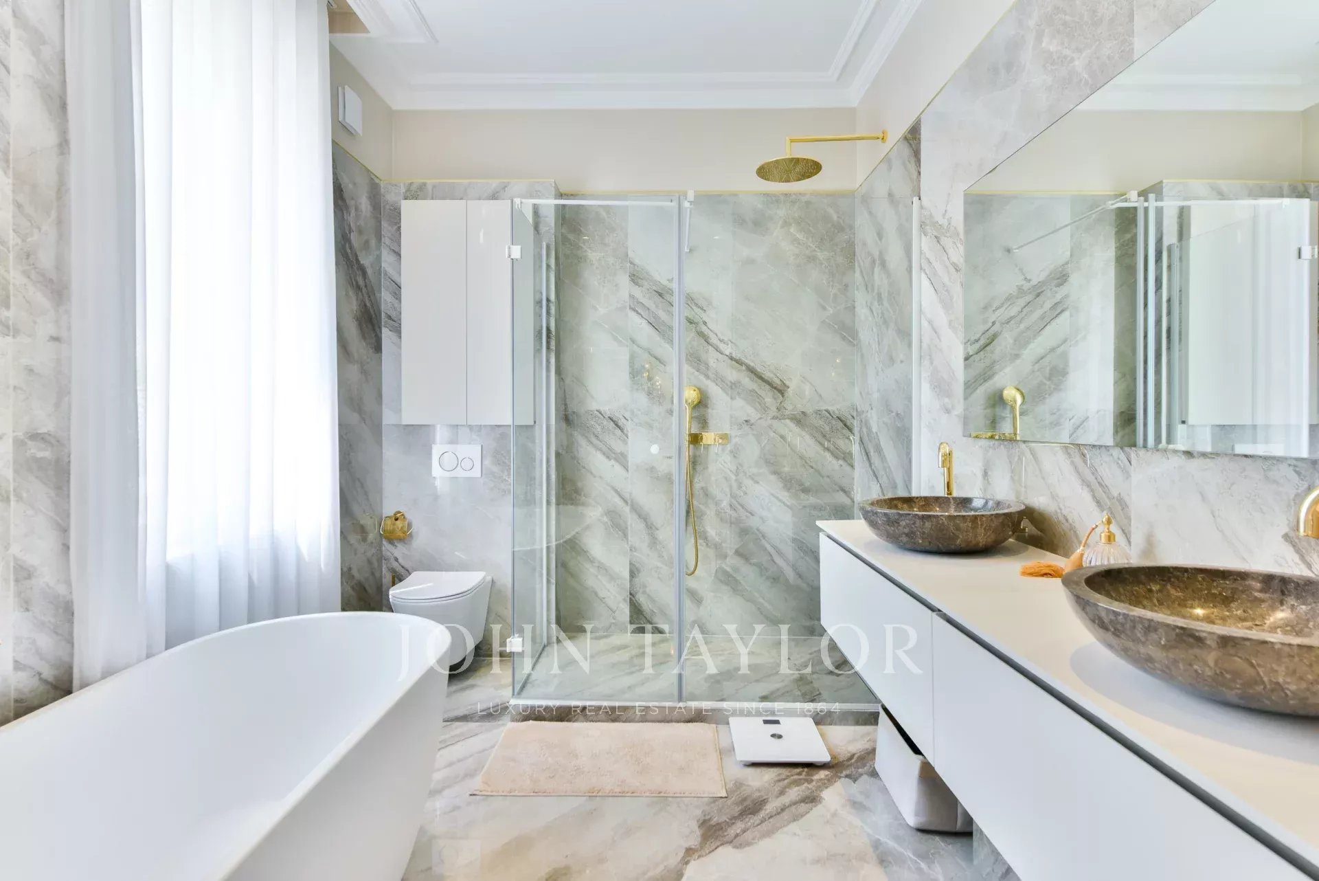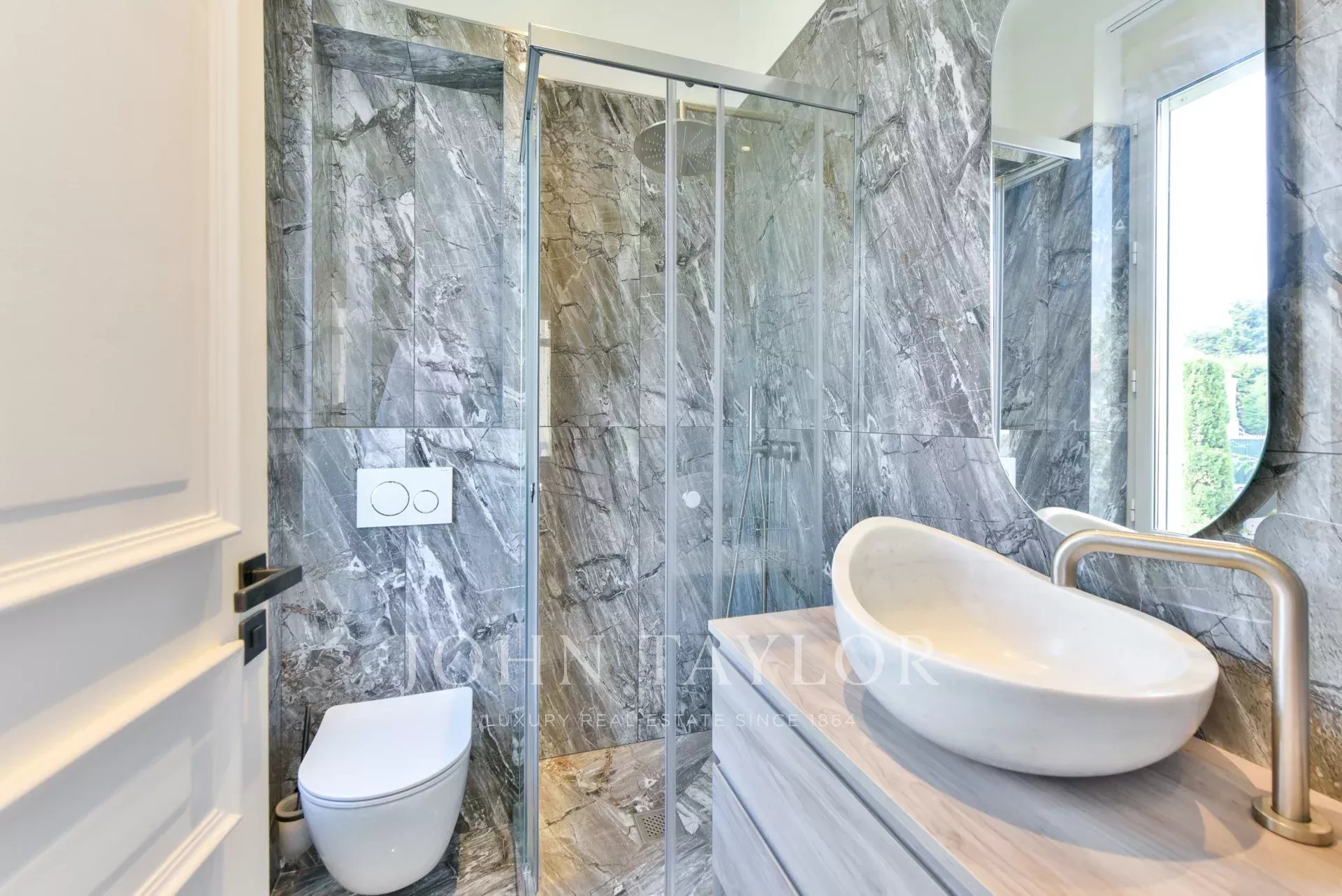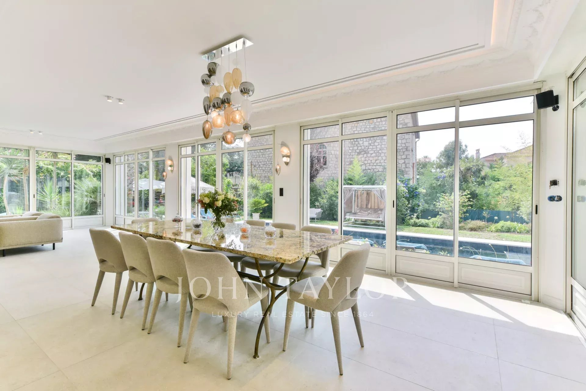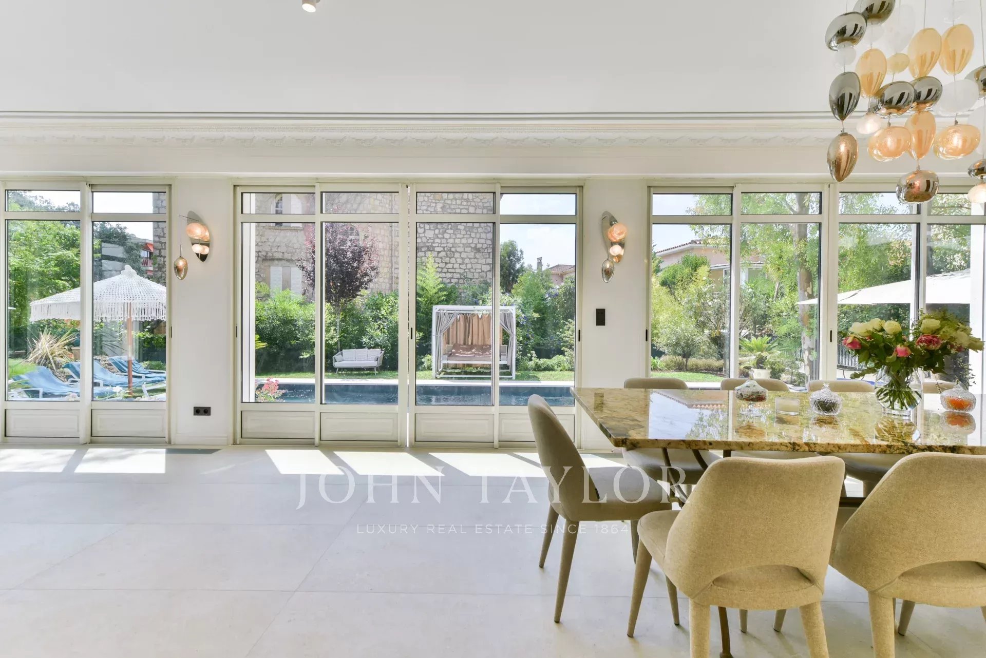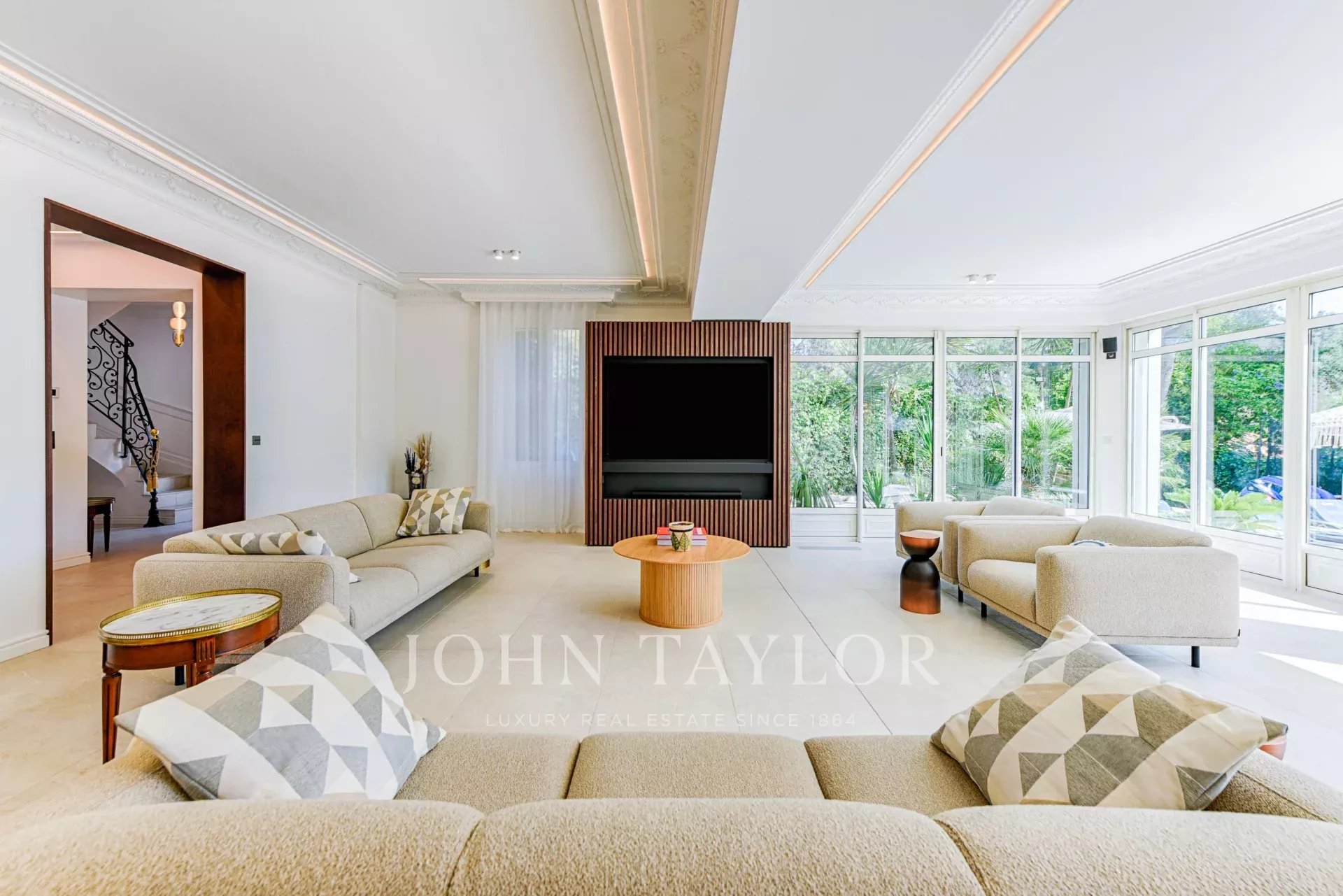 Ein paar Minuten vom Stadtzentrum von Cannes entfernt, auf zwei Ebenen, schöne, voll klimatisierte Villa mit 300 m2 Wohnfläche. Sie wurde komplett renoviert und besticht durch ihre Dekoration, die hochwertigen Leistungen und Materialien sowie die schönen und großen Terrassen.