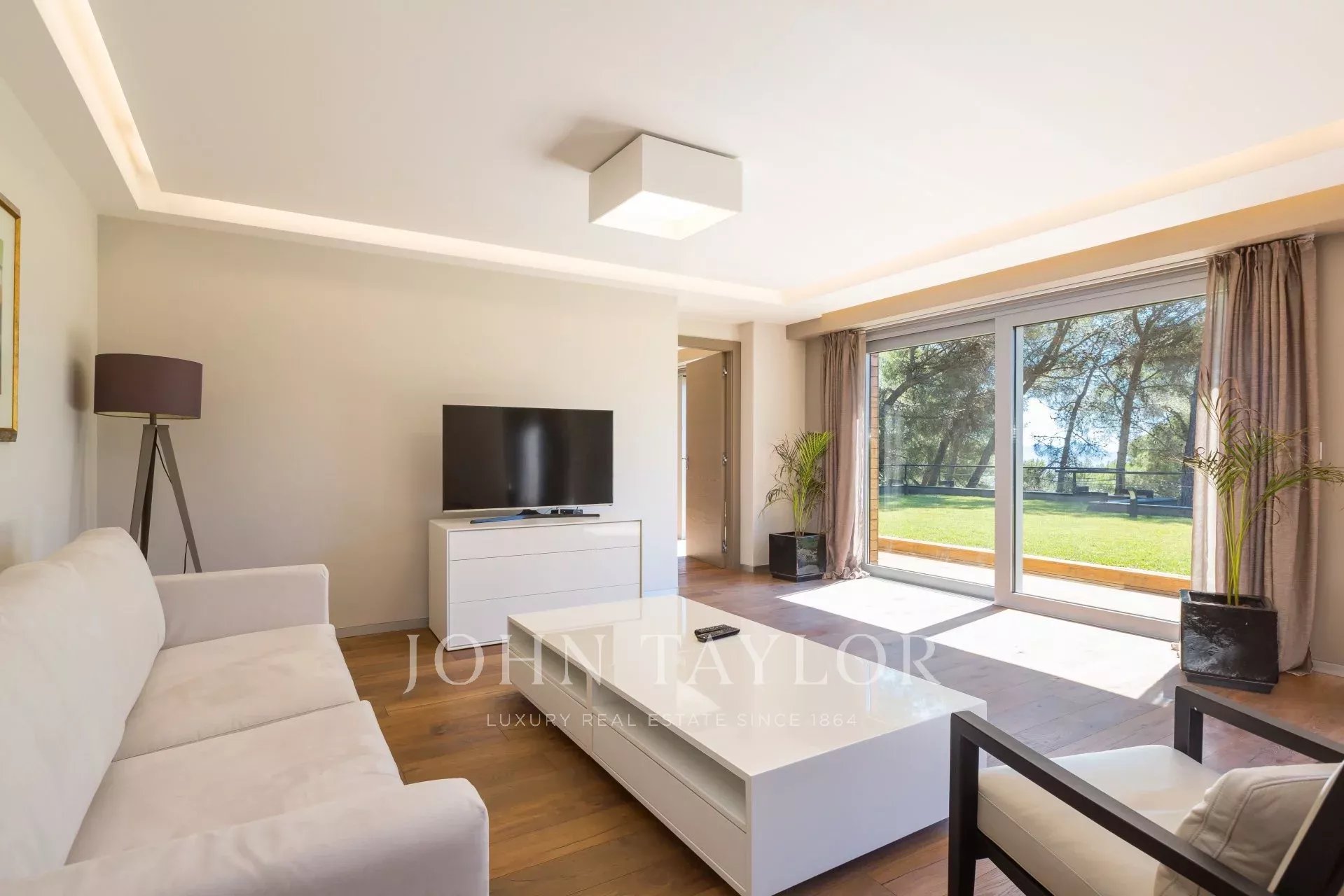 Dreifaches Wohnzimmer mit Zugang zu einer großen Terrasse mit herrlichem Meerblick und Zugang zum Garten.