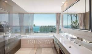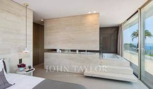 In einem geschlossenen Bereich in der Nähe des Meeres und des Stadtzentrums, herrliche neue zeitgenössische Villa mit Klimaanlage und herrlichem Meerblick auf die Bucht von Cannes.