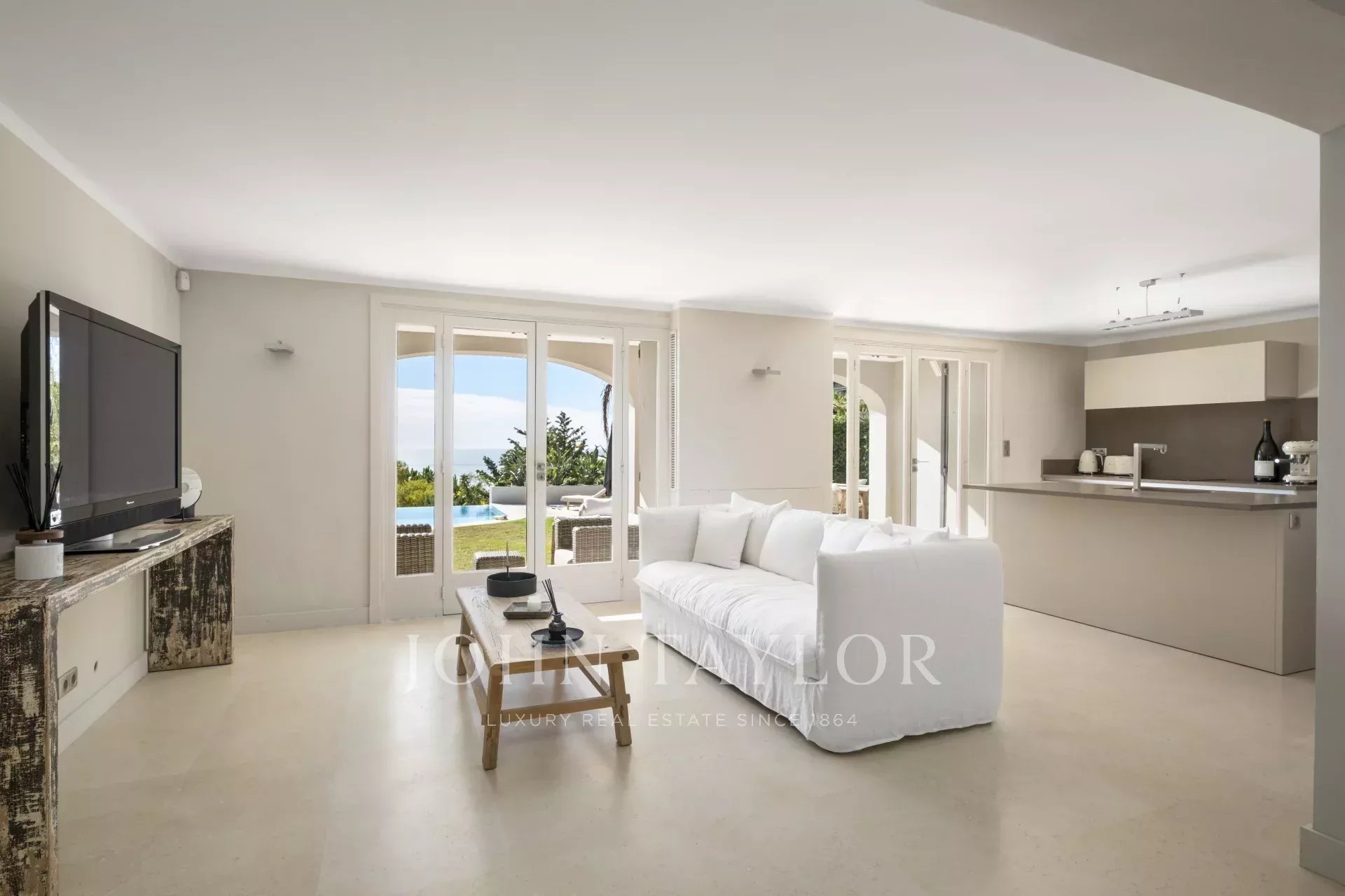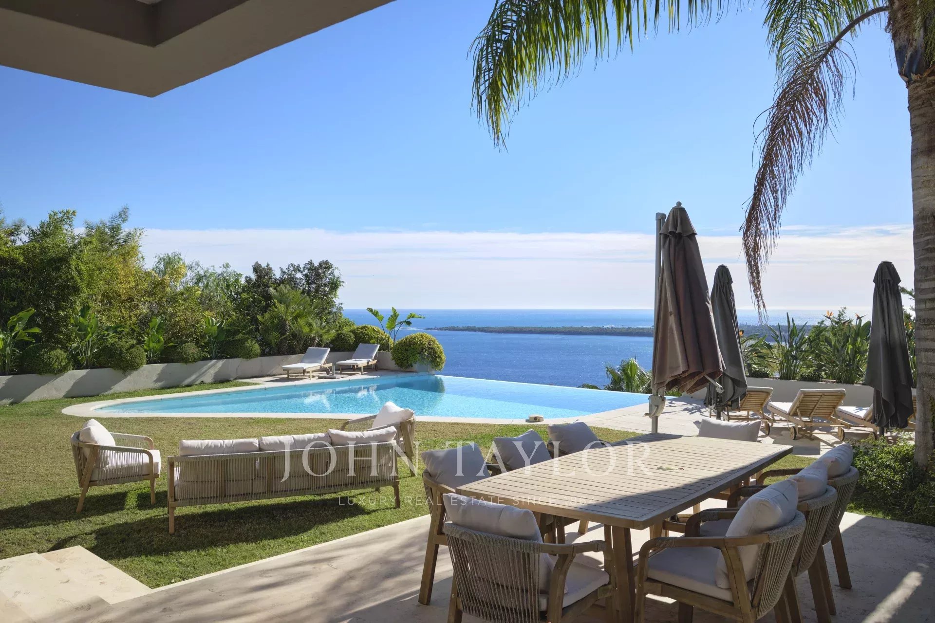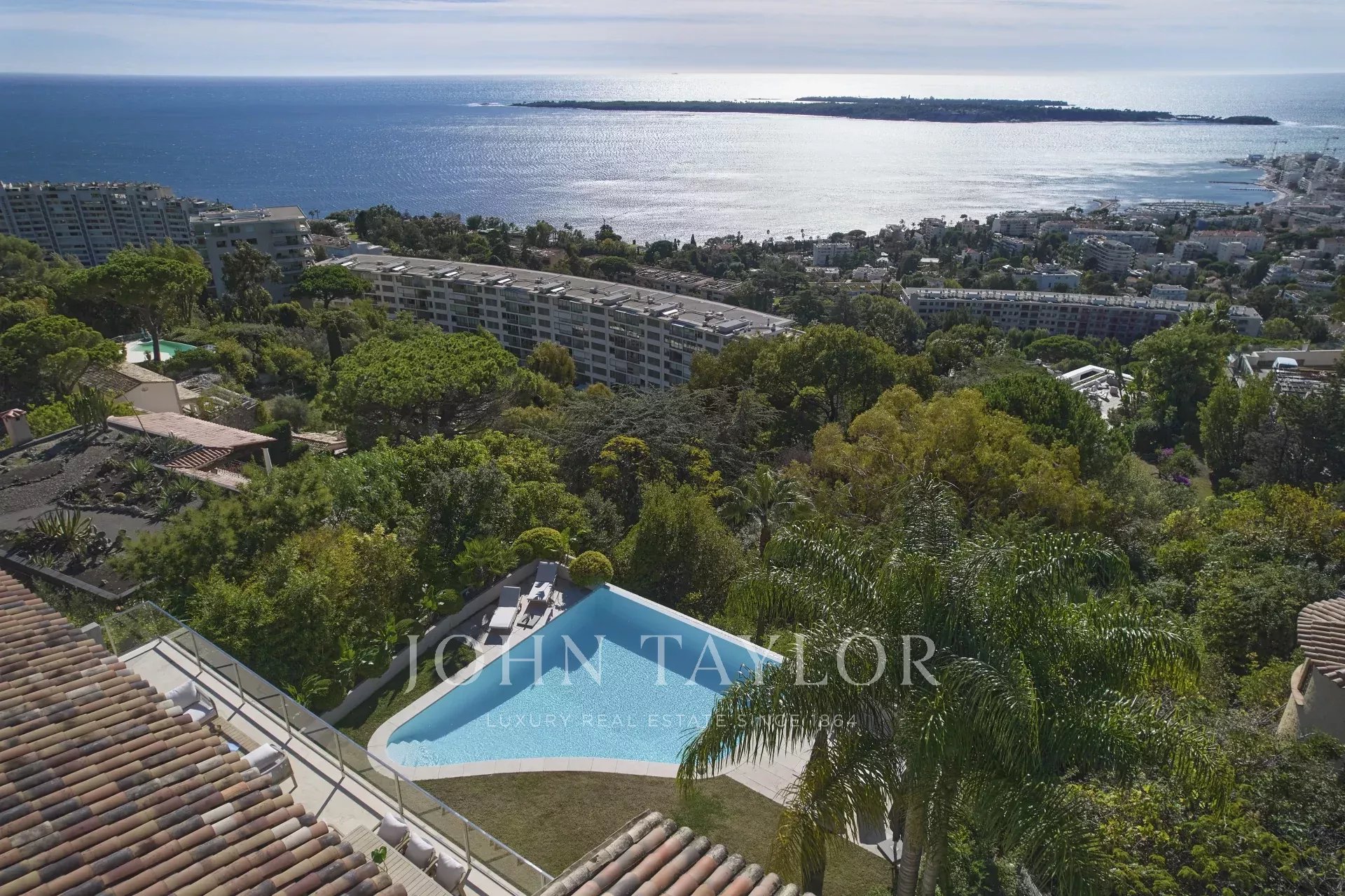 Es befindet sich im Viertel La Californie und bietet von allen Räumen des Hauses aus ein außergewöhnliches Panorama vom Cap d'Antibes bis zum Esterel.