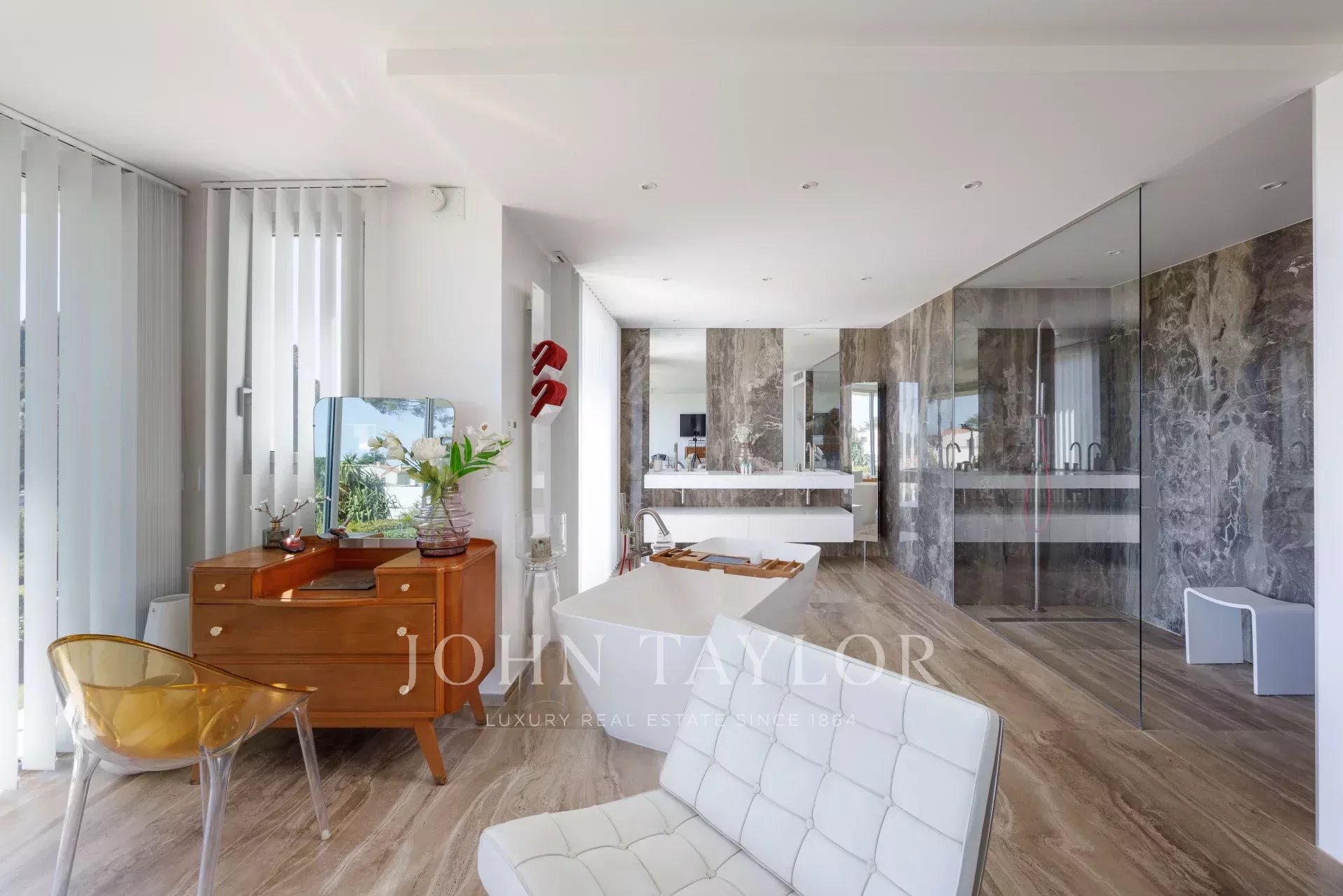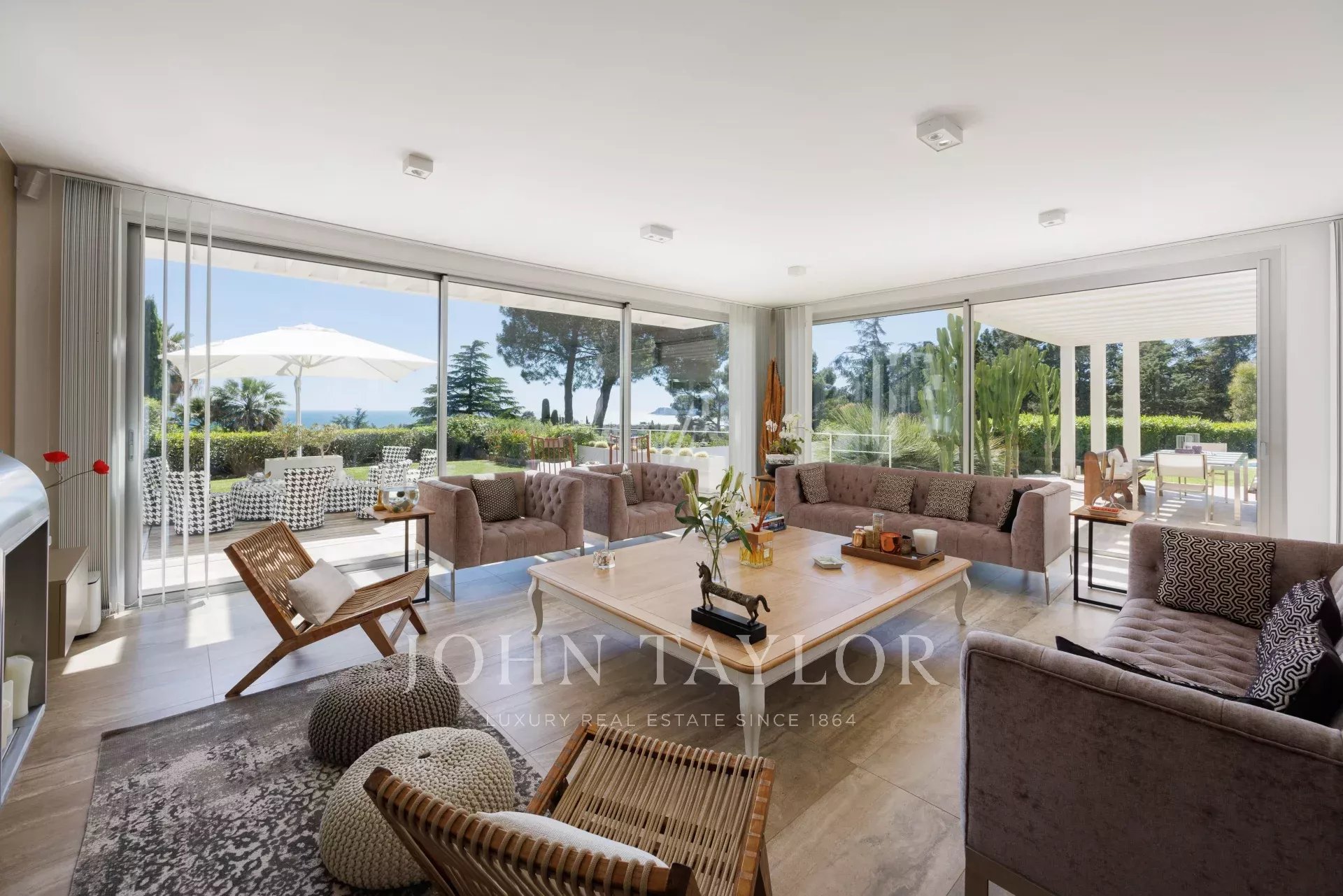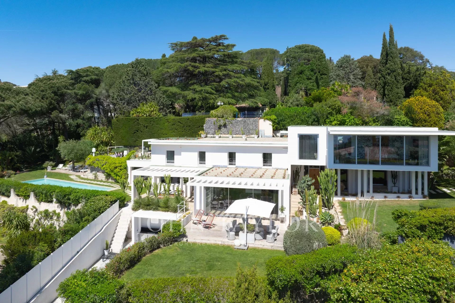 In der sehr ruhigen Wohngegend Croix des Gardes, am Ende einer Sackgasse, in absoluter Ruhe, 10 Minuten zu Fuß vom Stadtzentrum entfernt, schöne neue zeitgenössische Villa mit 500 m2 Wohnfläche, vollständig klimatisiert und renoviert mit hochwertigen Dienstleistungen, inmitten eines 3000 m2 großen Landschaftsgartens.